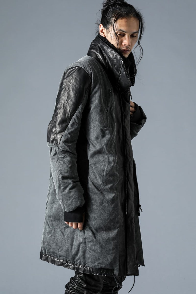Horse Leather x Rayon Twill White Goose Down Coat Charcoal