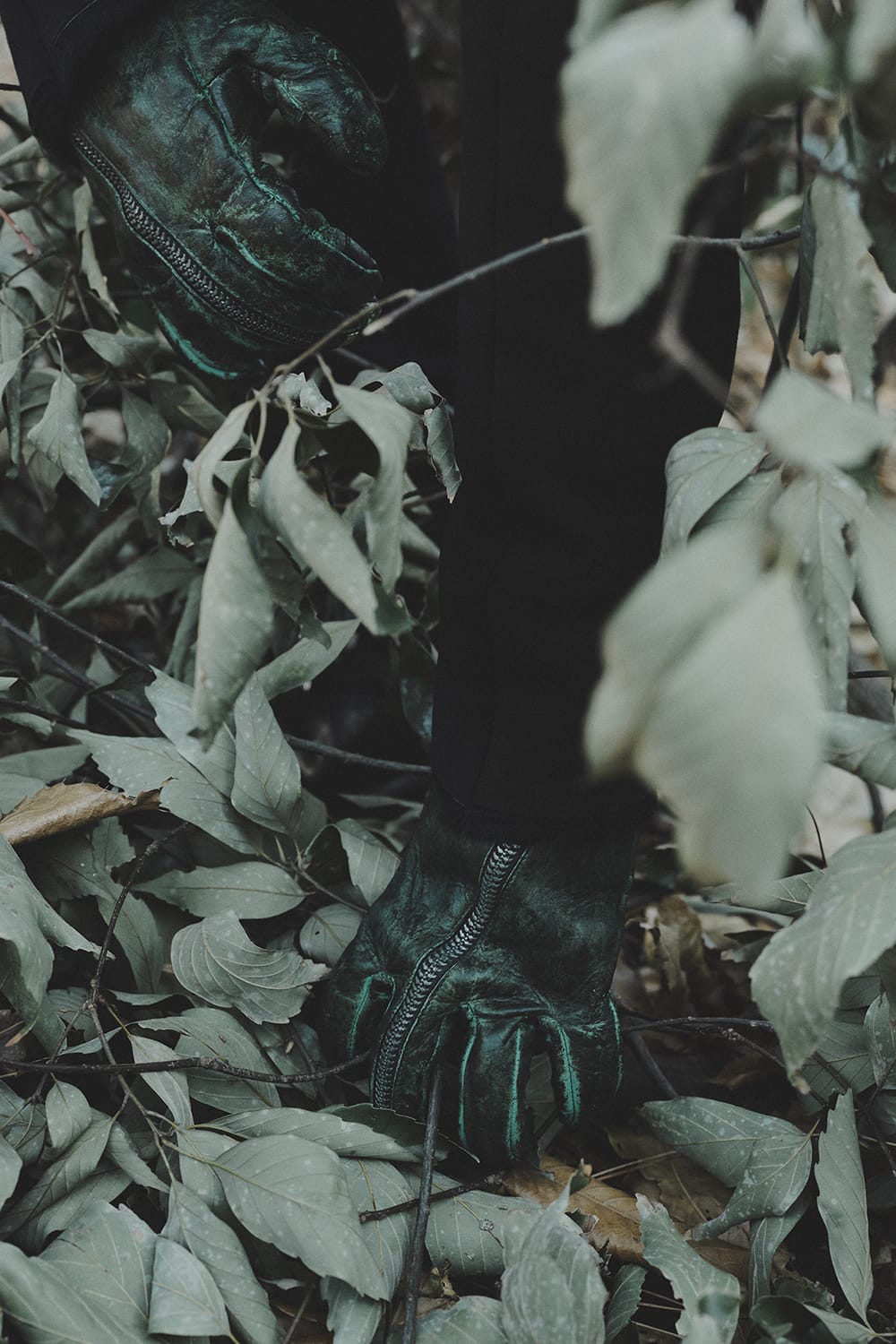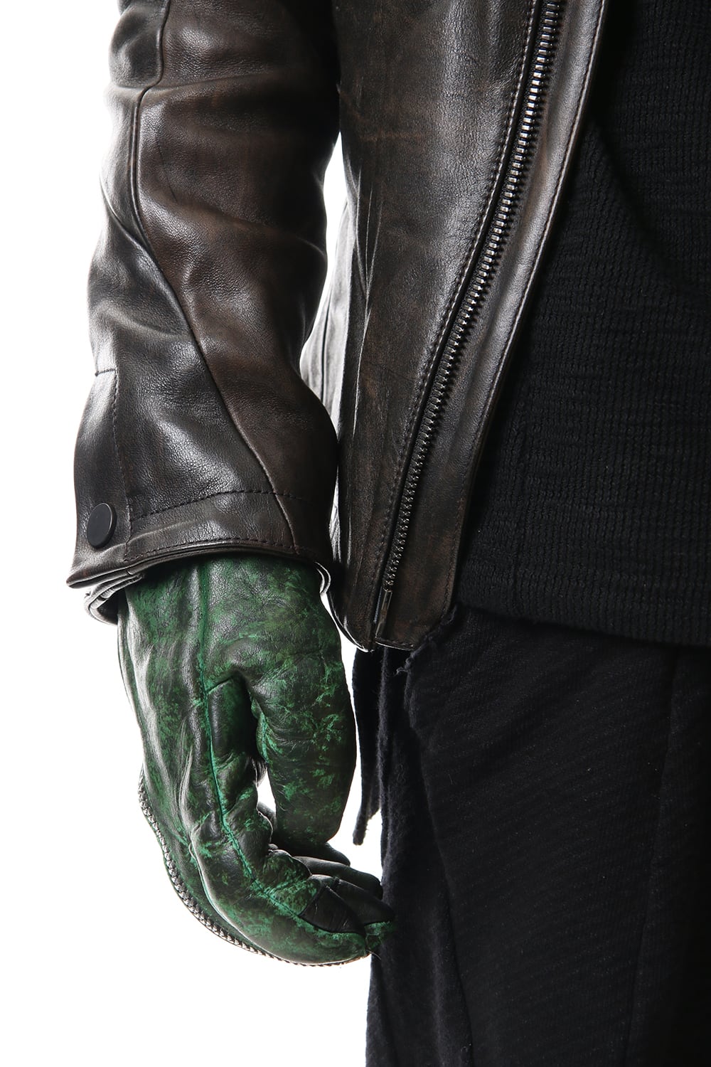 Dusty leaf Horse Leather Zip Gloves Green