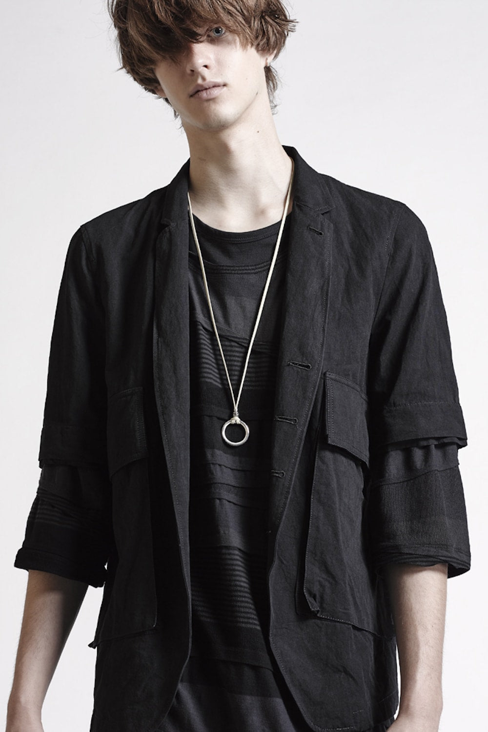 - Layered like neck, and the bottom part is a black color plain stitch.