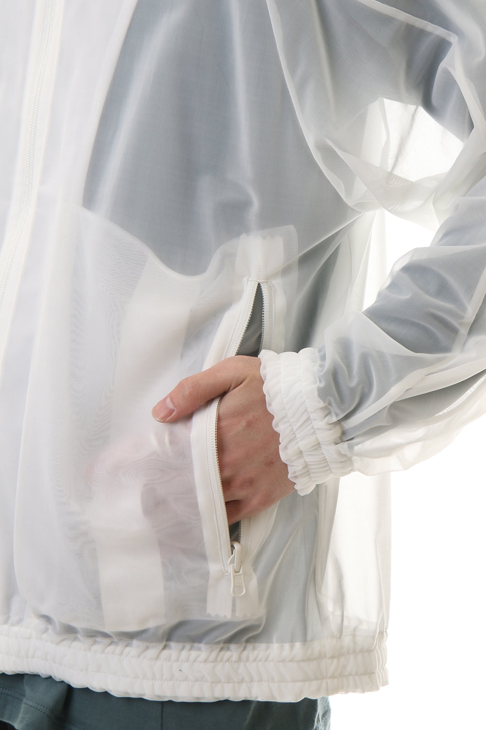 See throug Back print Hooded blouson White