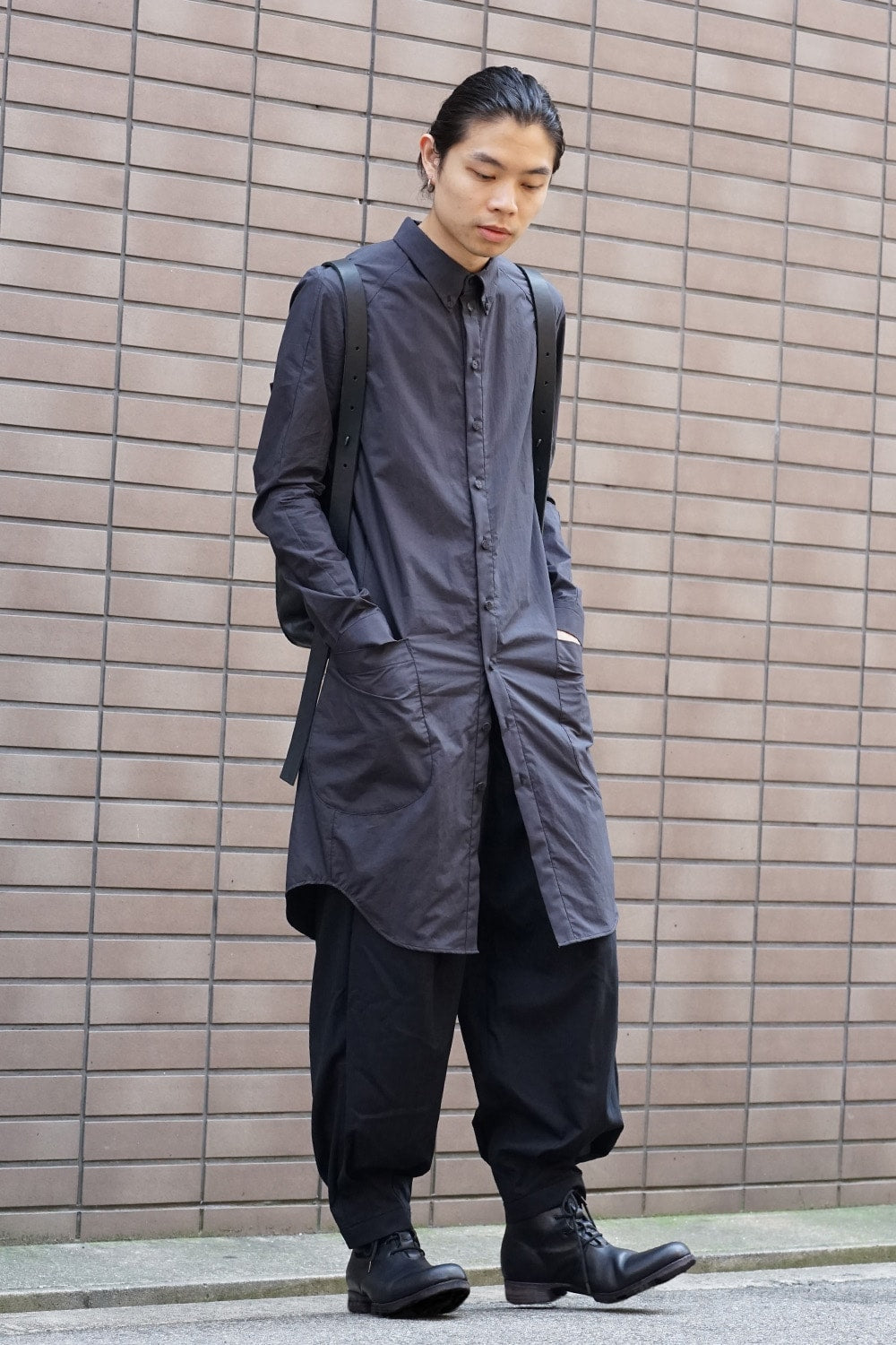 The fabric is processed by two-thread processing of ultra fine yarn of 140 wool with strong twisting of the yarn. The finished is of a natural stretch cloth. The surface fabric of the YOGA pants textures are easy to see and express with this silhouette as it has a slim silhouette towards the ankle, making the ankle part thin.