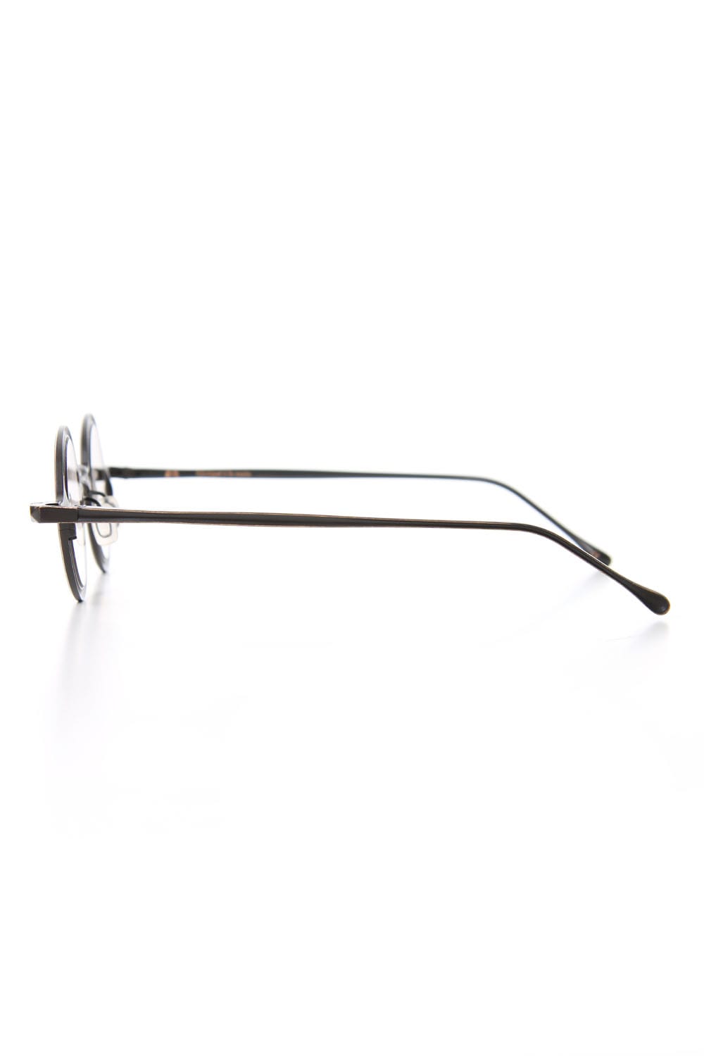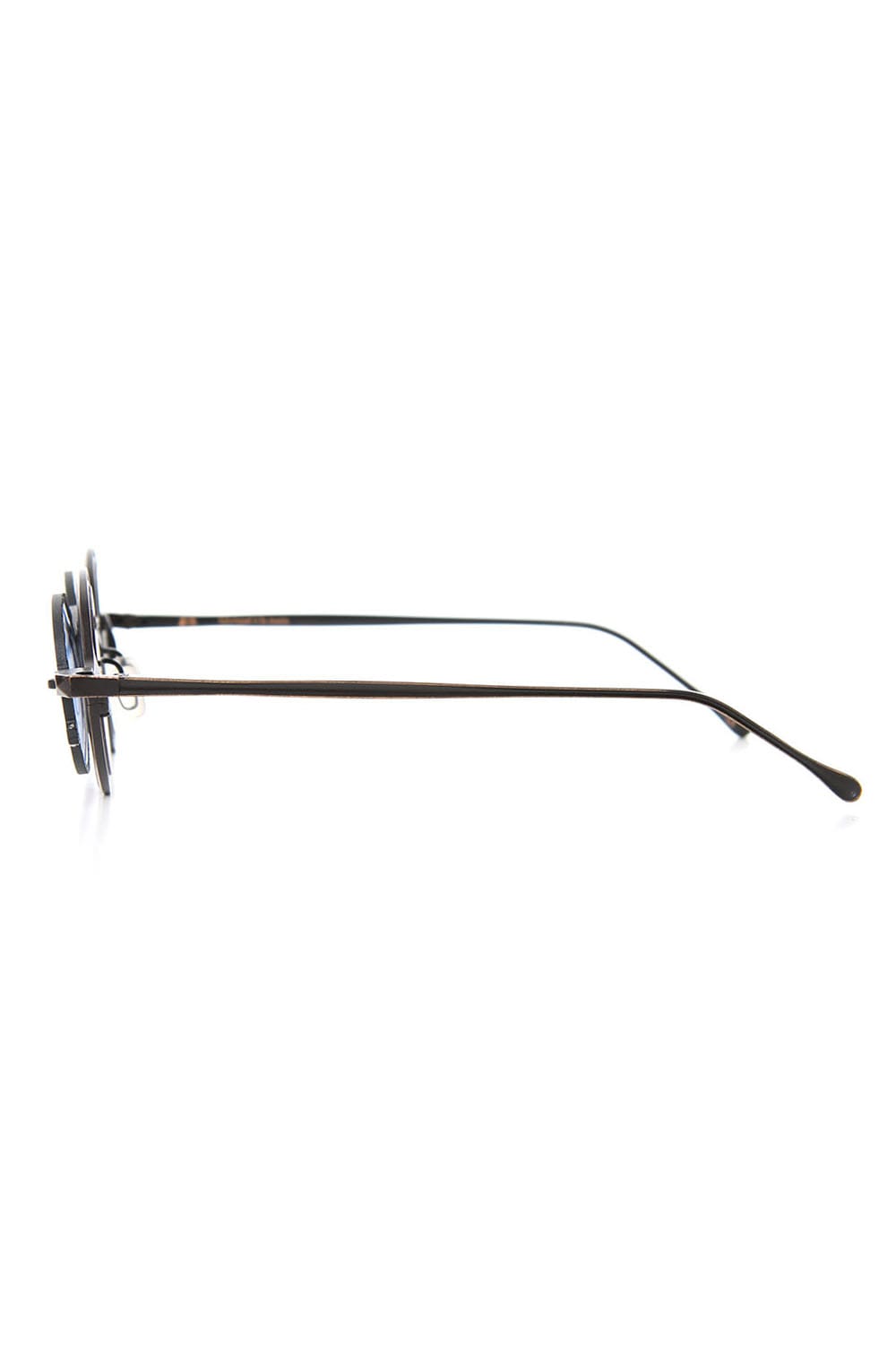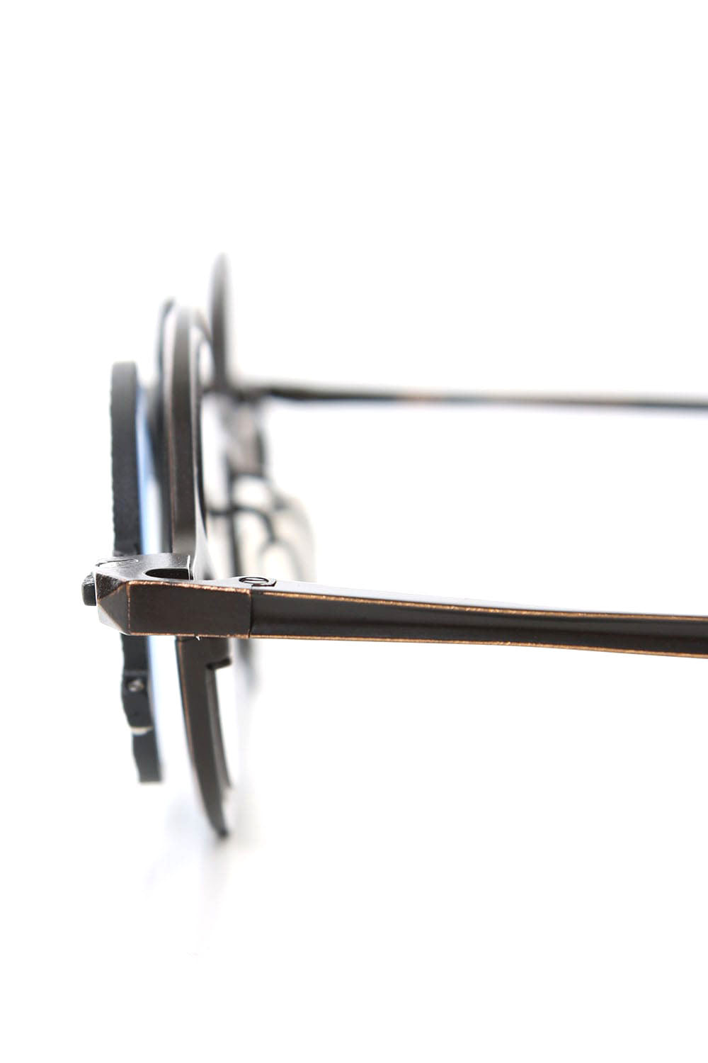 Collaboration eye wear with high-end brand RIGARDS, whose typical design is the shaved frame of buffalo horn. The frame is made of metal and the front clip is detachable with a magnet. It is possible to attach the chain developed as a separate item to the frame. Last season, it was a gold frame made by brass, but this season it is made of copper, you can enjoy the deep colour unique to copper.