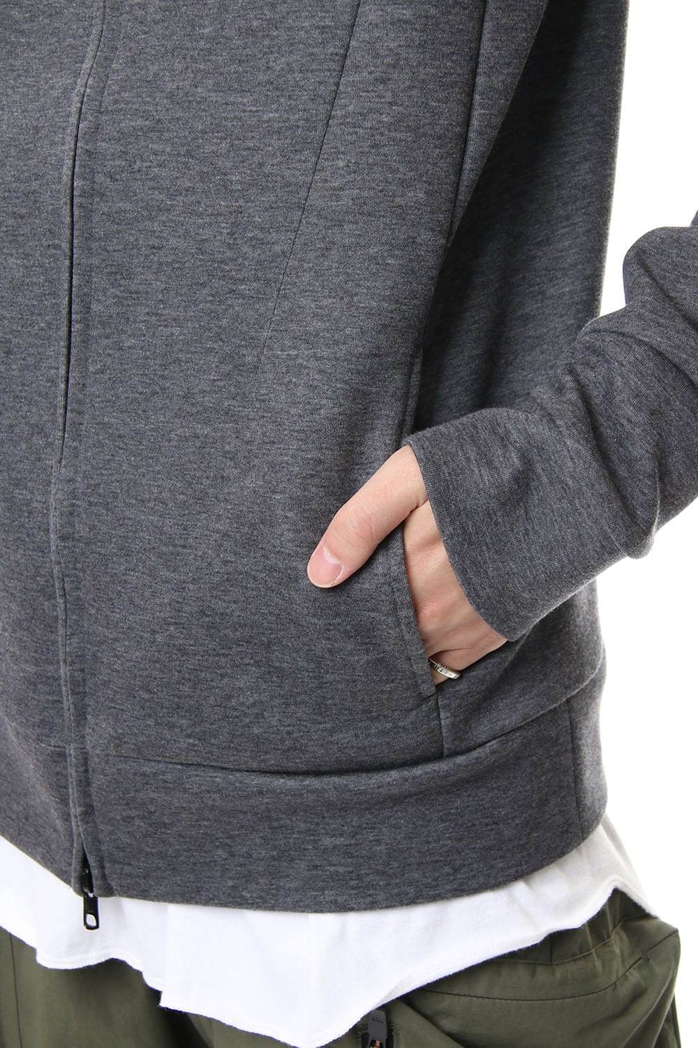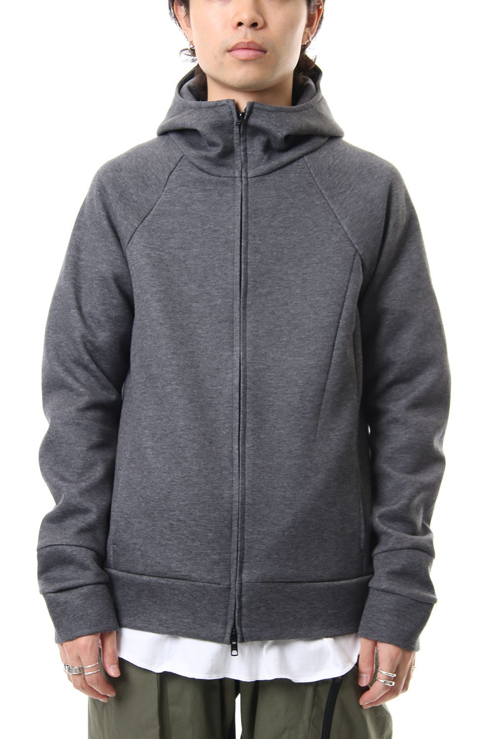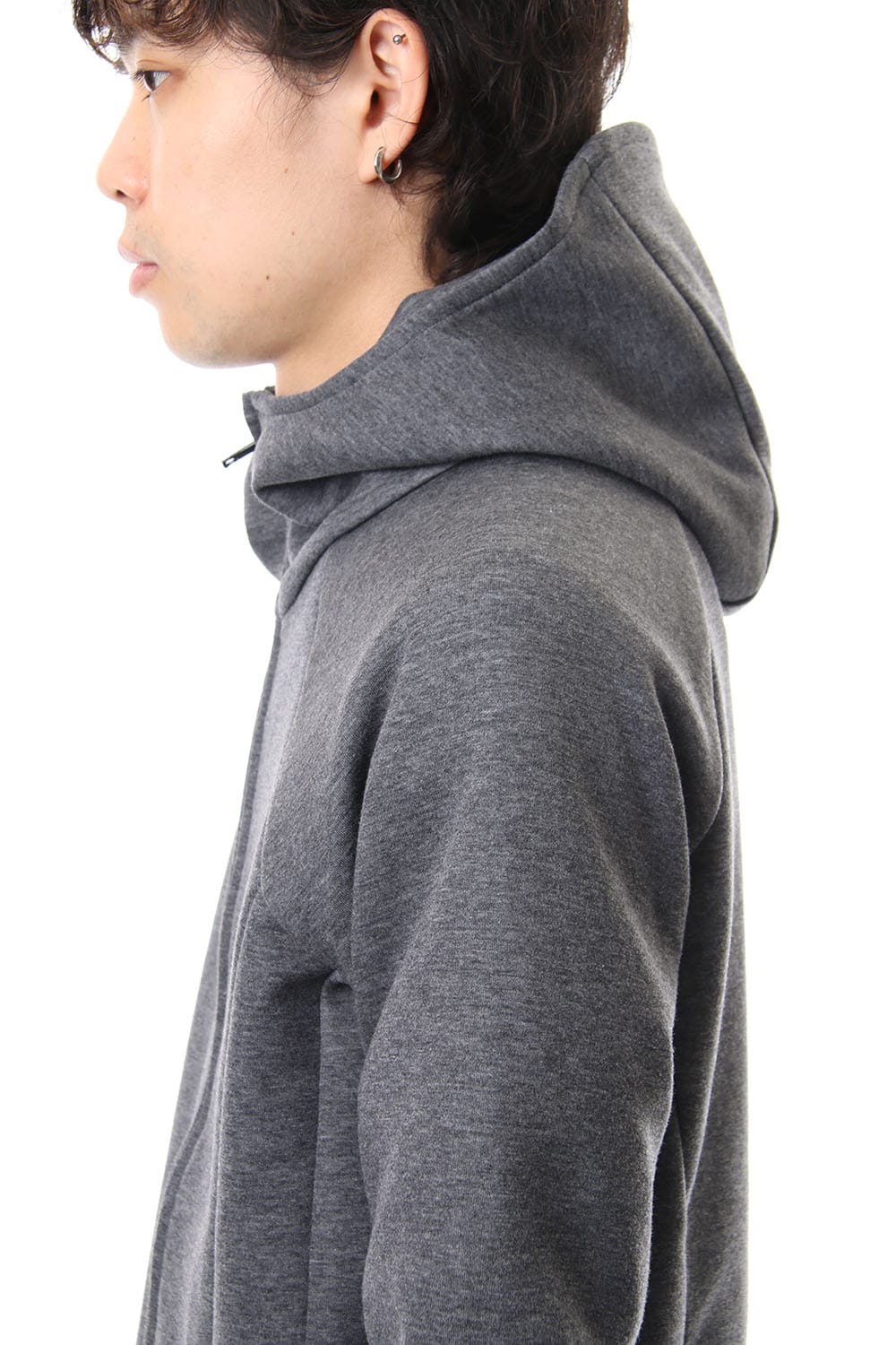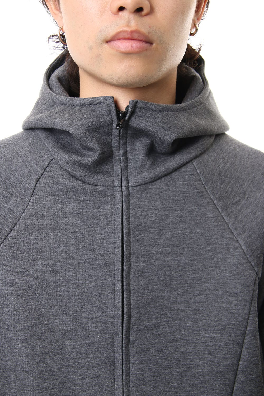 The material adopted a double knit with space between the fabric surface and the back. The space of the fabric is breathable but still keeps the wearer warm. It has elasticity, is lightweight and finished in a more sophisticated atmosphere. We adopted a simple separable fastener for the front zipper. Simple separation fastener is the world's first fastener that YKK's high technical ability made; it is possible to open without lowering the slider in case of emergency or when it is necessary to move fast, giving this piece a remarkably high functionality.