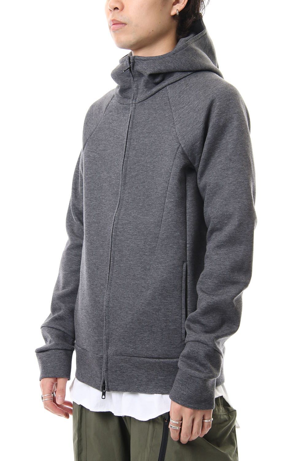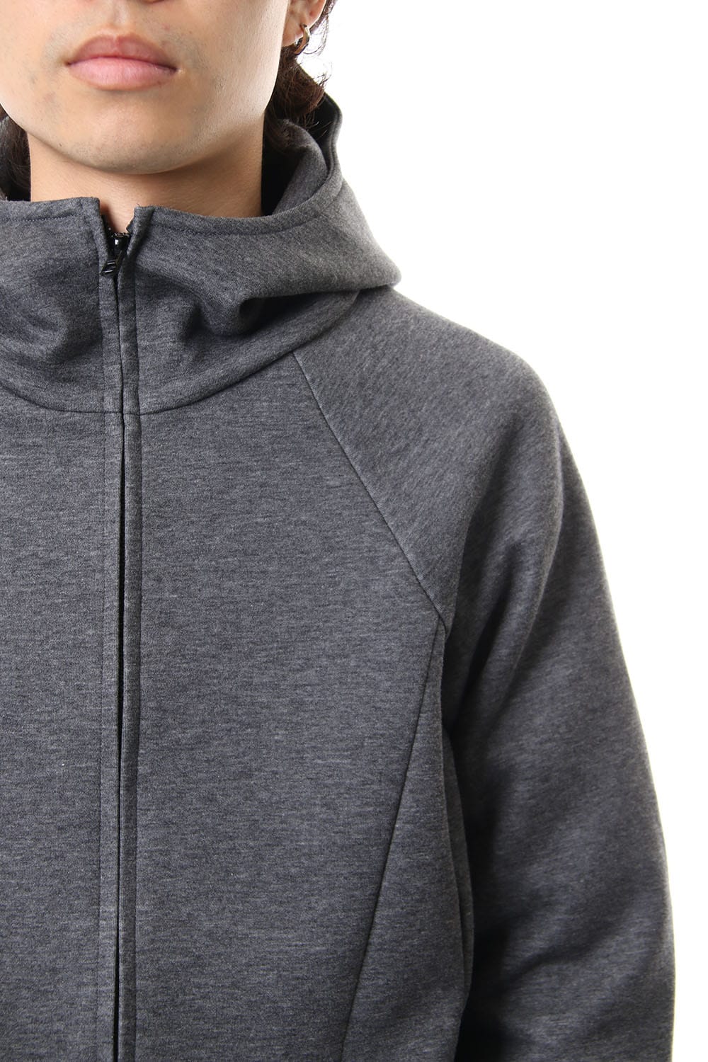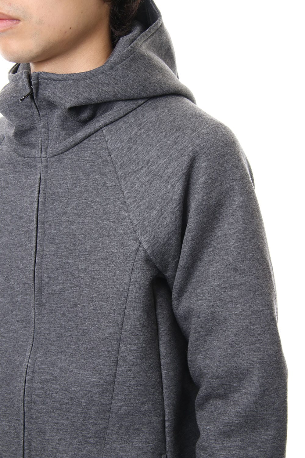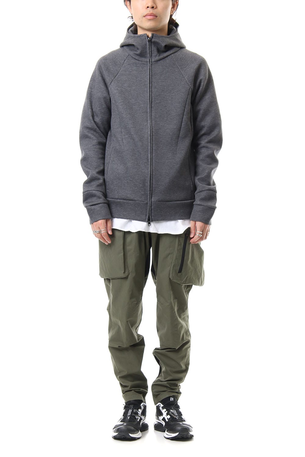 The material adopted a double knit with space between the fabric surface and the back. The space of the fabric is breathable but still keeps the wearer warm. It has elasticity, is lightweight and finished in a more sophisticated atmosphere. We adopted a simple separable fastener for the front zipper. Simple separation fastener is the world's first fastener that YKK's high technical ability made; it is possible to open without lowering the slider in case of emergency or when it is necessary to move fast, giving this piece a remarkably high functionality.