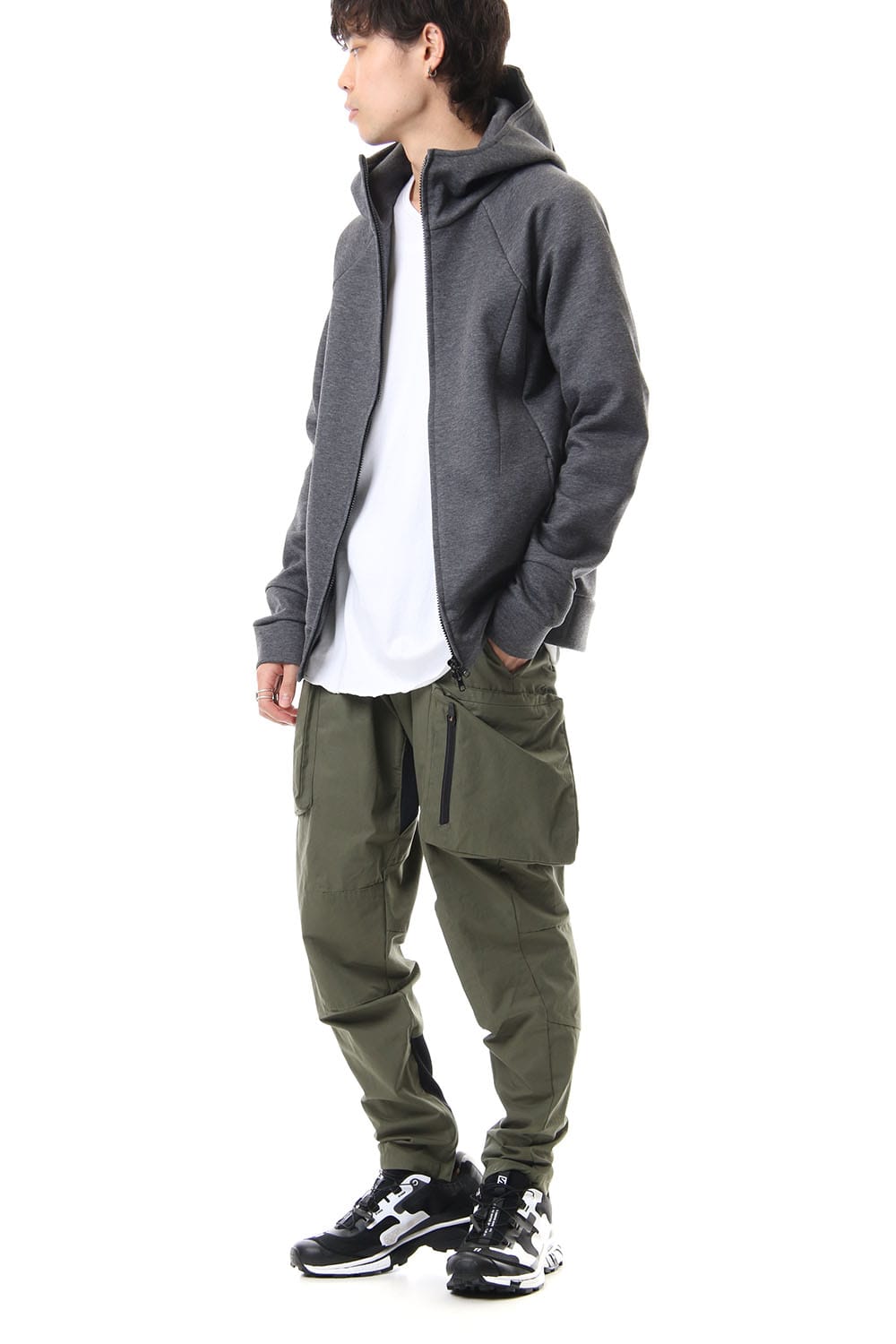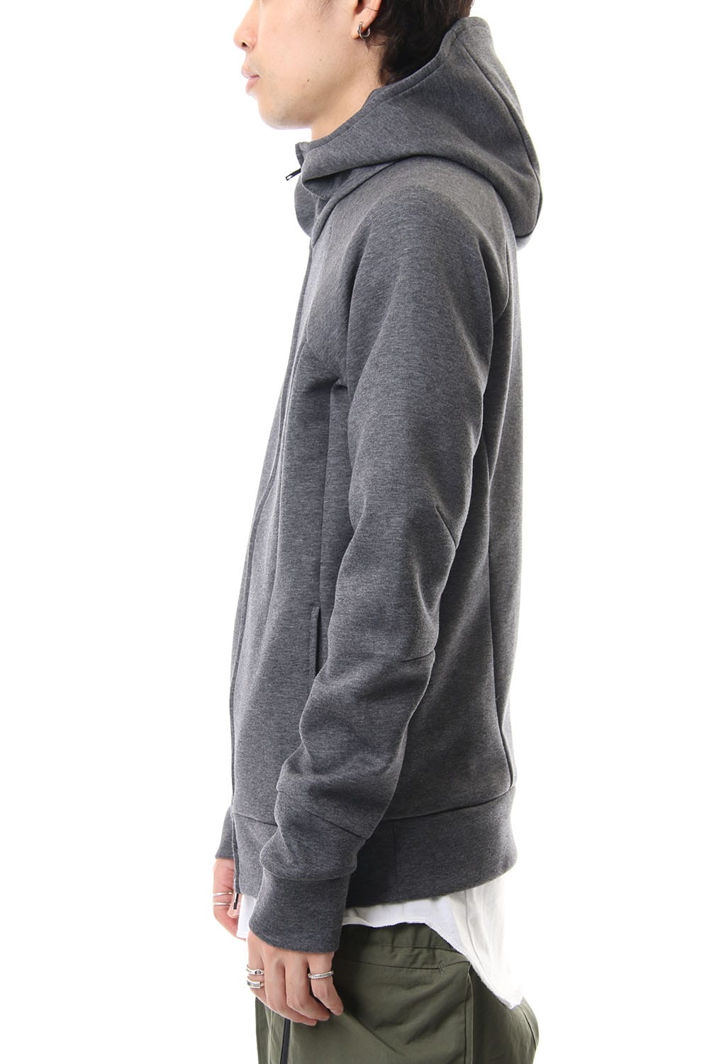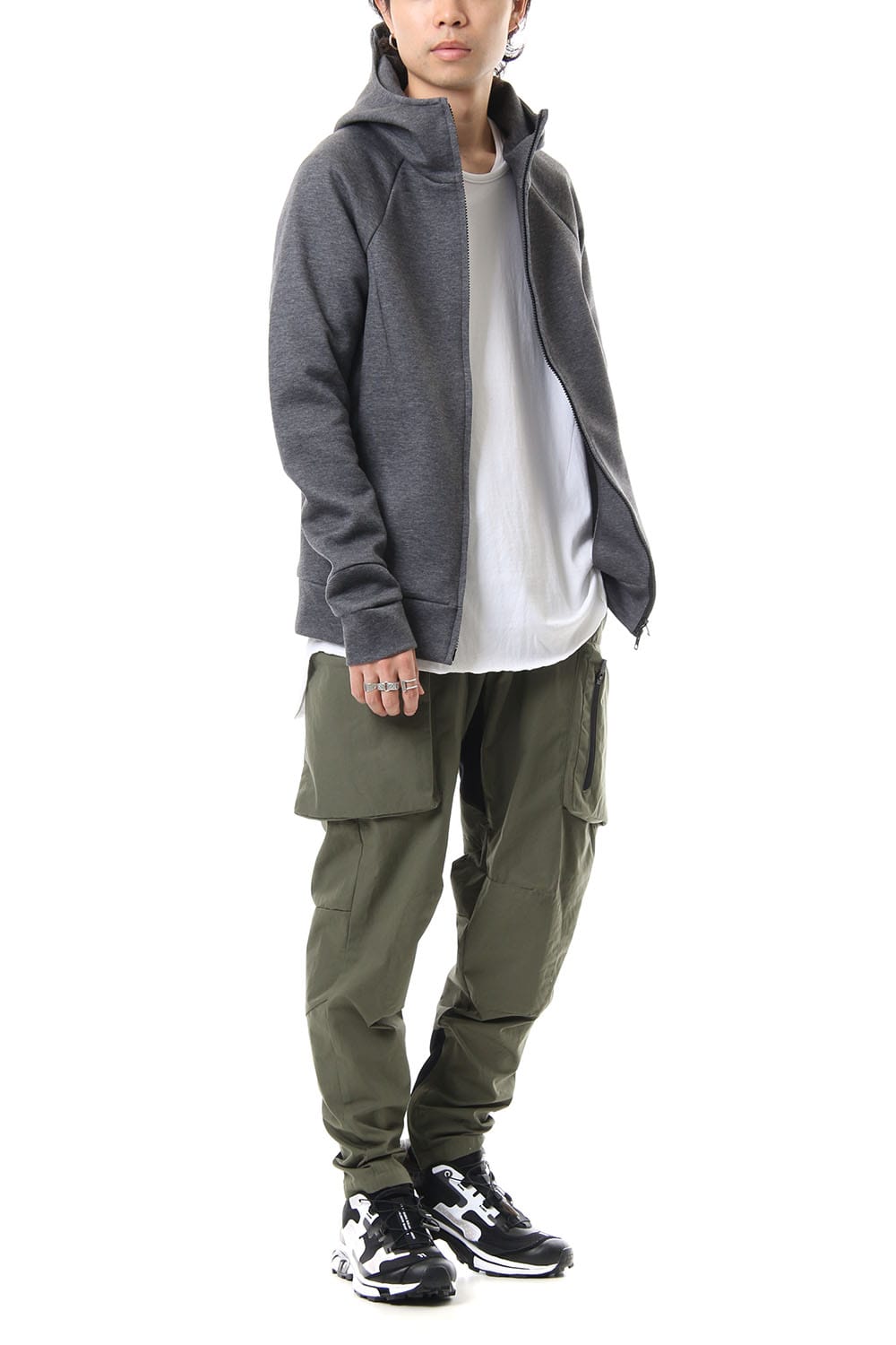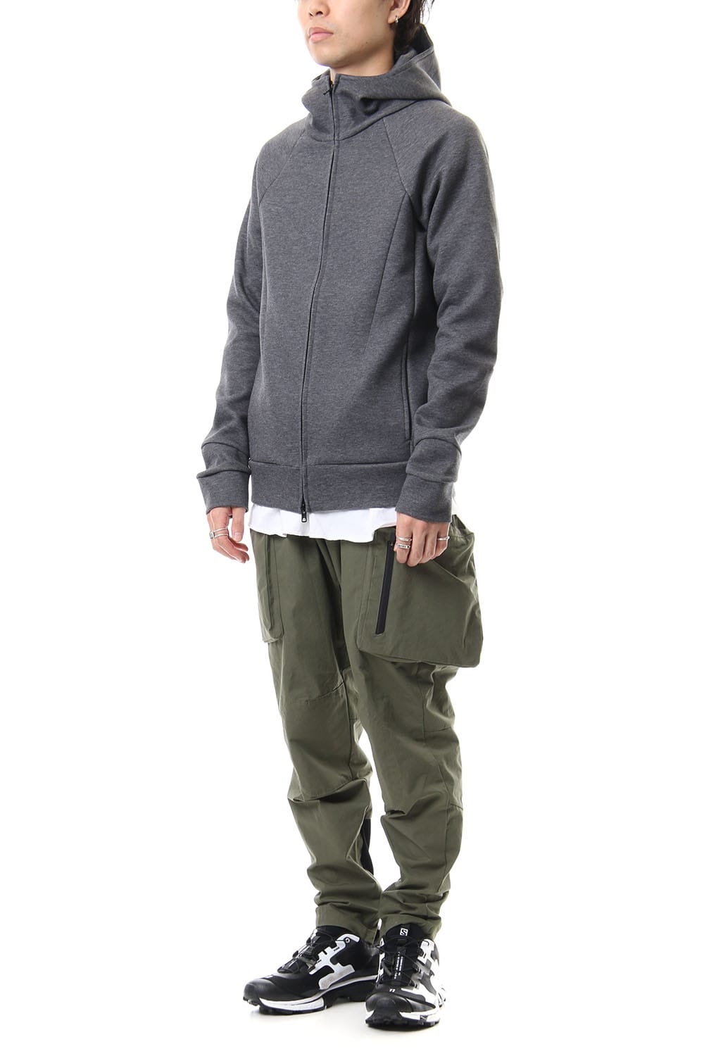 The material adopted a double knit with space between the fabric surface and the back. The space of the fabric is breathable but still keeps the wearer warm. It has elasticity, is lightweight and finished in a more sophisticated atmosphere. We adopted a simple separable fastener for the front zipper. Simple separation fastener is the world's first fastener that YKK's high technical ability made; it is possible to open without lowering the slider in case of emergency or when it is necessary to move fast, giving this piece a remarkably high functionality.