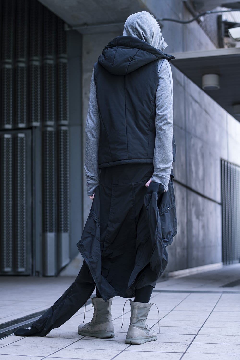 A lightweight and warm fleece jersey that has been released continuously in the AW season. Part of the hood to rib was changed to fit around the neck like a stand collar, it is windproof and has excellent warmth. VACUUM NECK PARKA combines the convenience and functions of the stand collar and the hood.