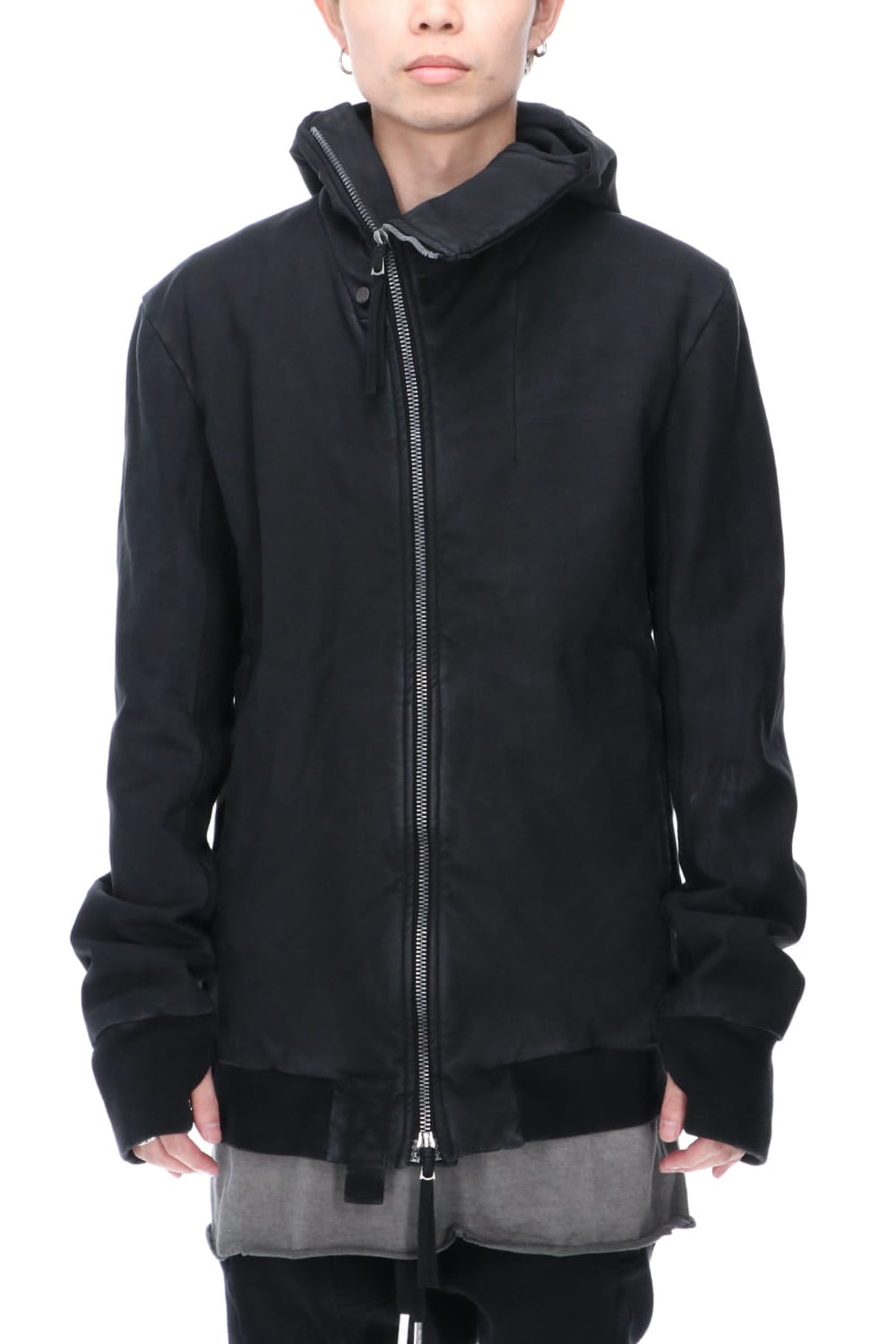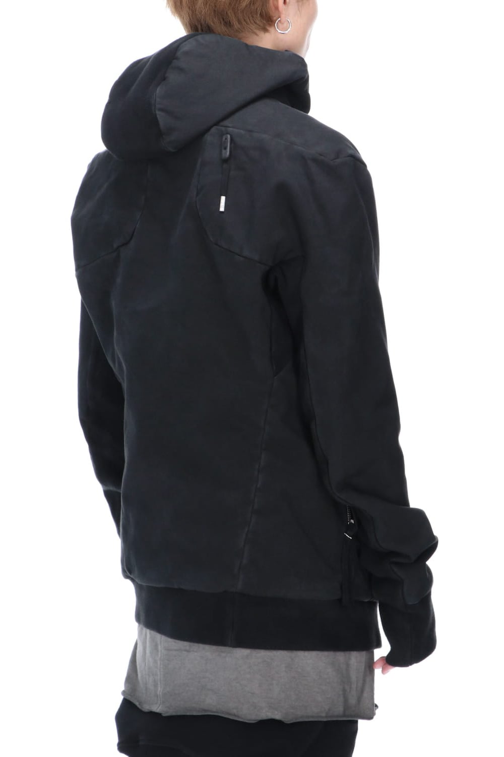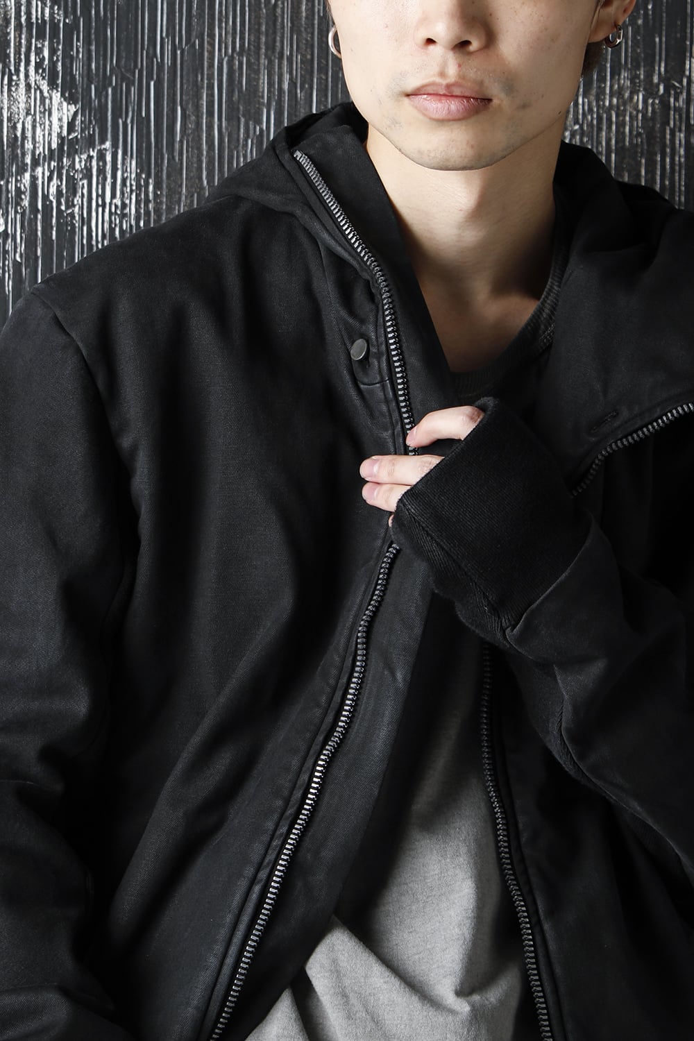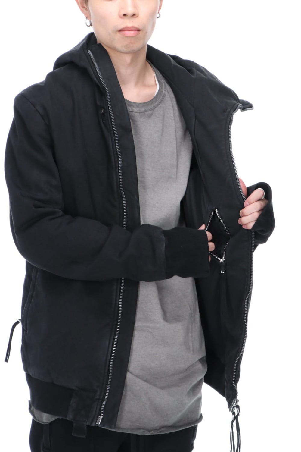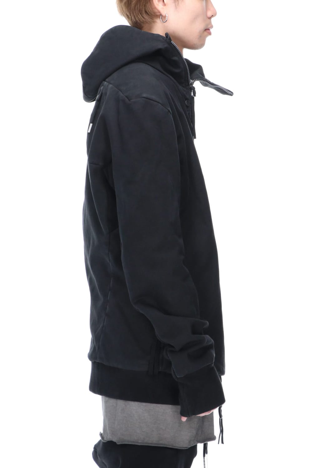 This is a batting type zip-up hoodie developed as a heavy outer wear based on the long-selling ZIPPER2 from the same brand. Compared to ZIPPER 2, which is developed as a middle inner, this item is made with a loose silhouette and has a size that can be worn as an inner with a bit of thickness. The fabric is a slightly stretchy cotton polyurethane fabric with a vinyl coating, giving it a rugged and heavy look that is characteristic of the same brand.