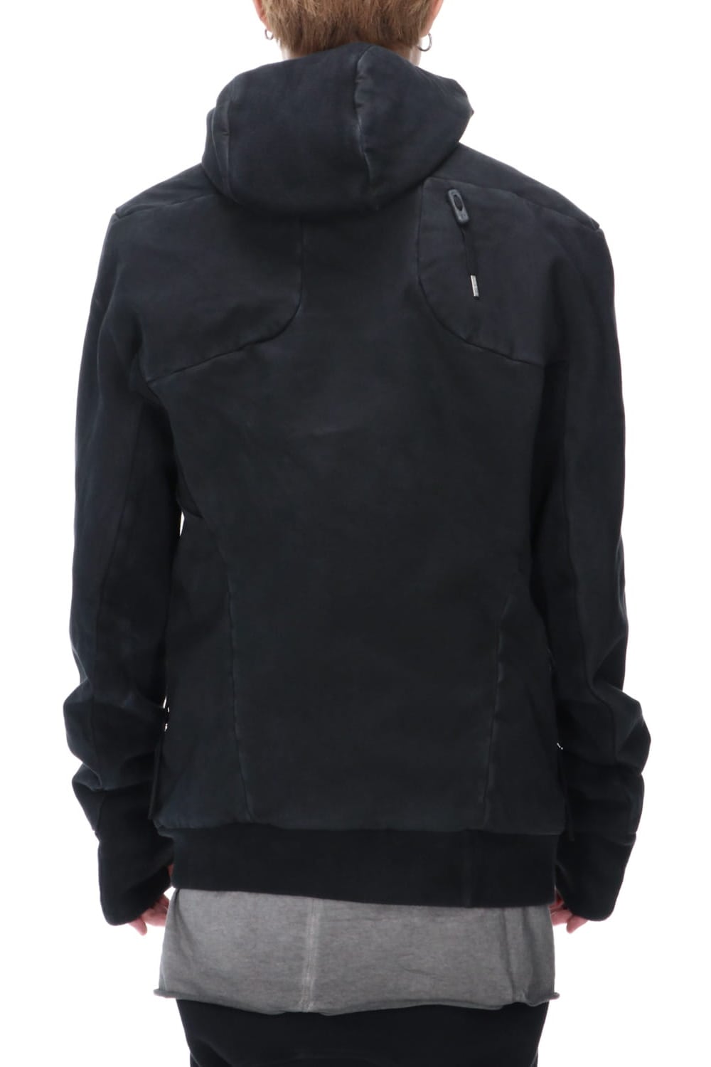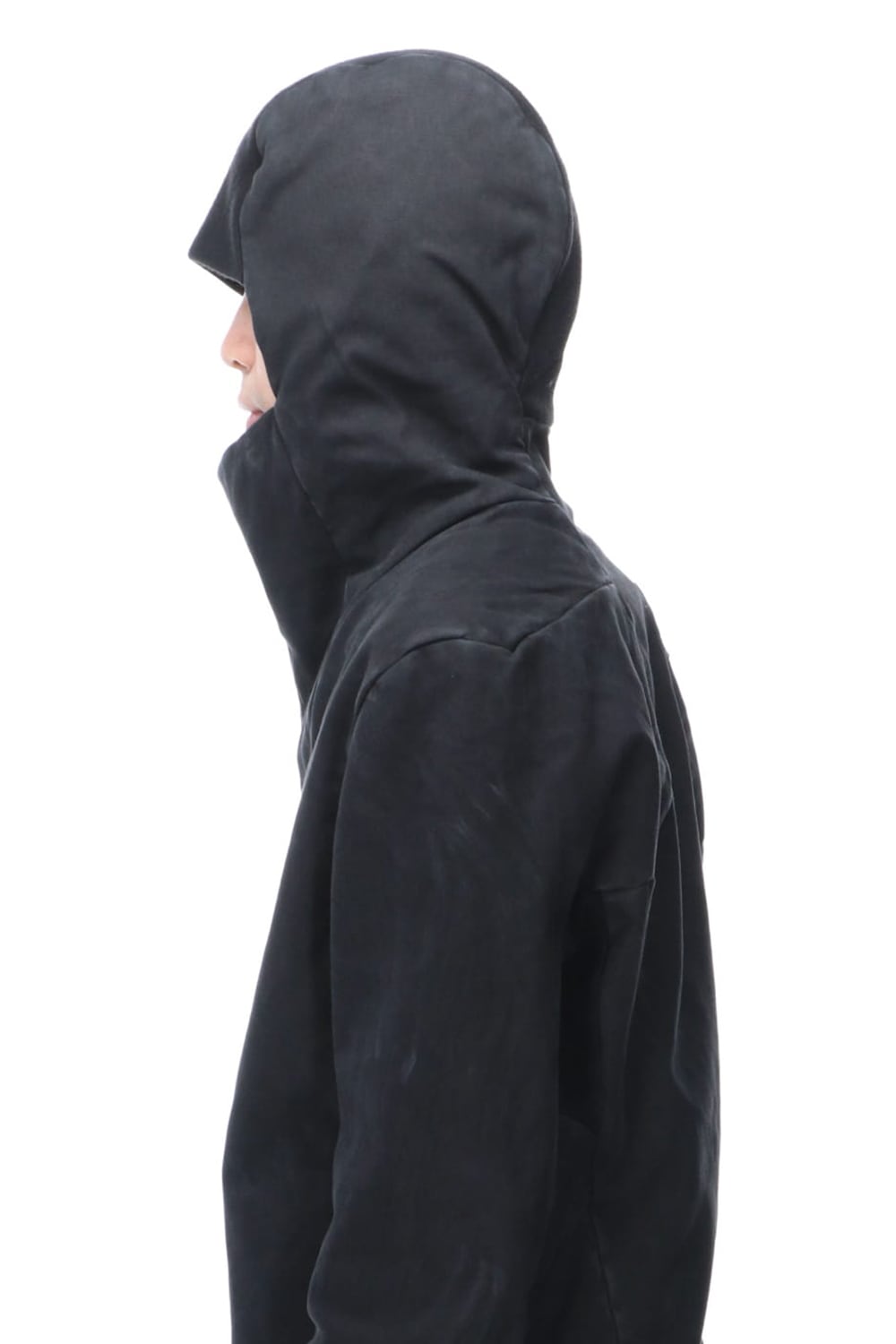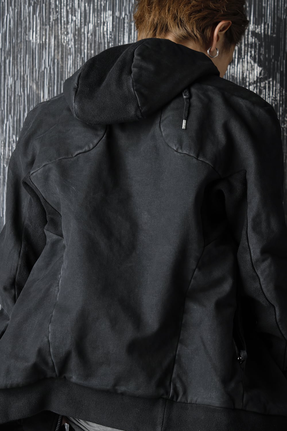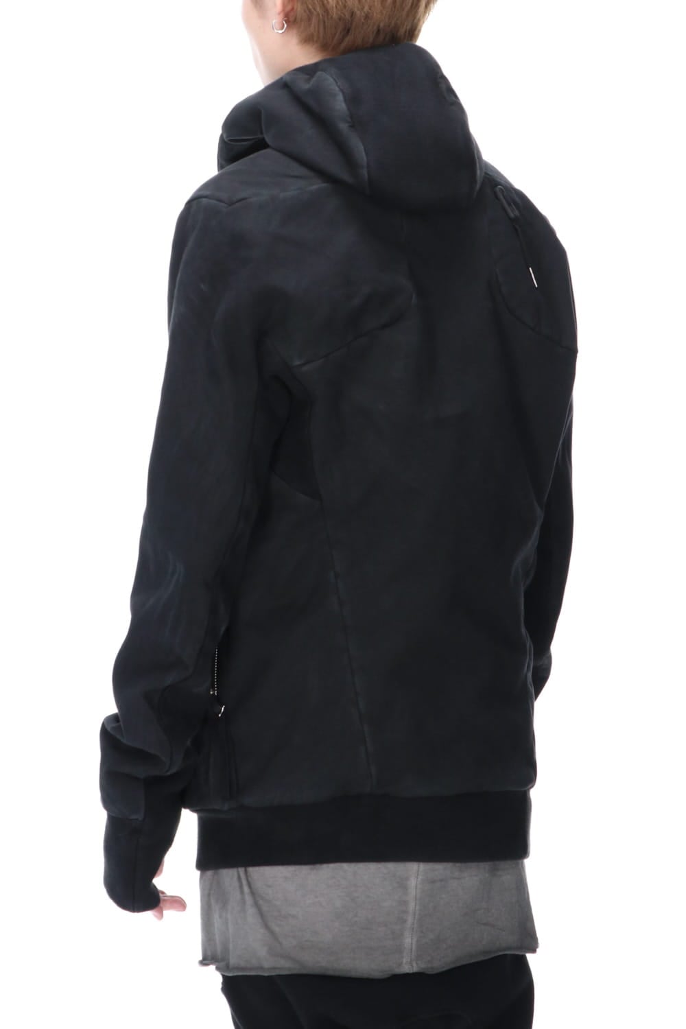 This is a batting type zip-up hoodie developed as a heavy outer wear based on the long-selling ZIPPER2 from the same brand. Compared to ZIPPER 2, which is developed as a middle inner, this item is made with a loose silhouette and has a size that can be worn as an inner with a bit of thickness. The fabric is a slightly stretchy cotton polyurethane fabric with a vinyl coating, giving it a rugged and heavy look that is characteristic of the same brand.