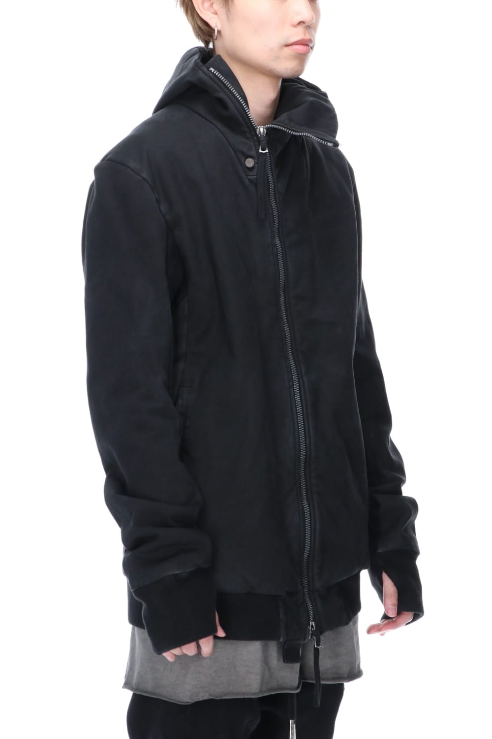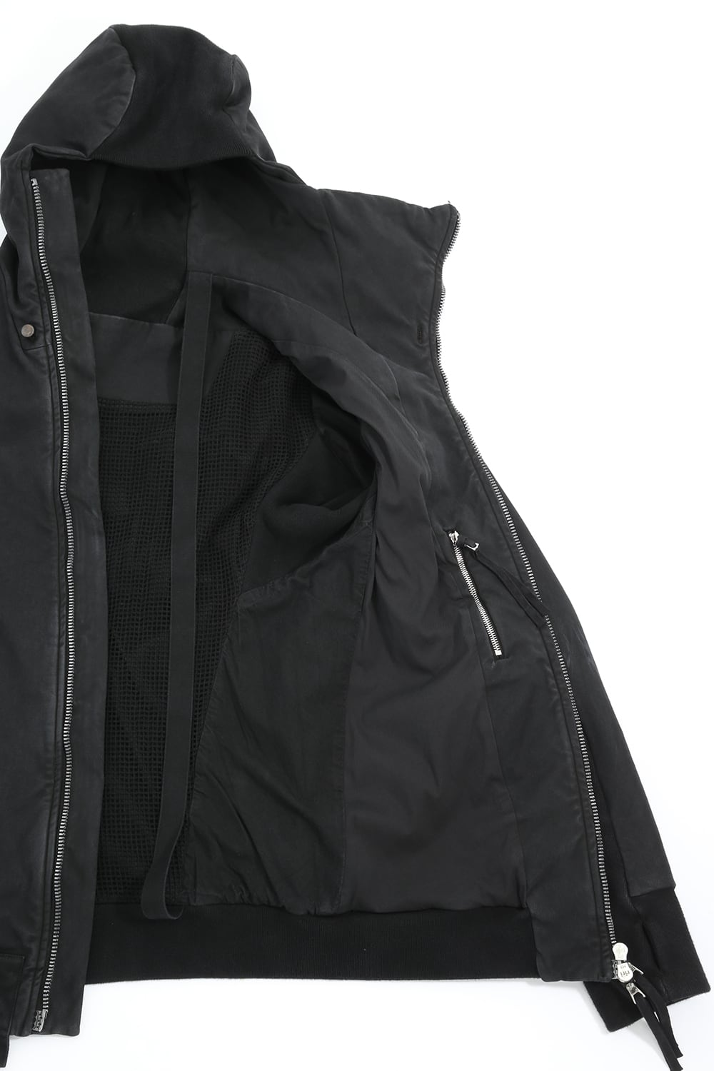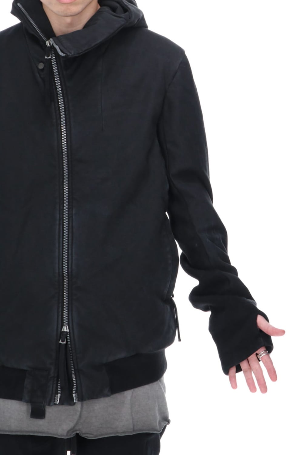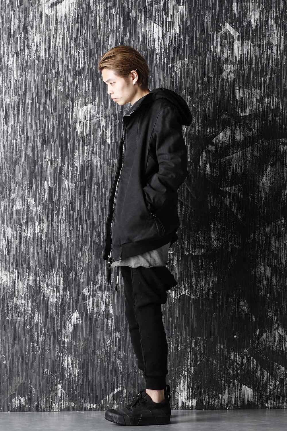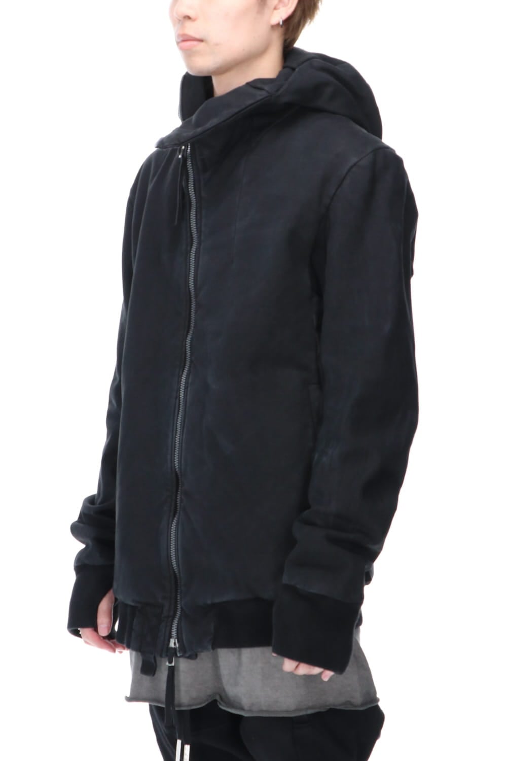 This is a batting type zip-up hoodie developed as a heavy outer wear based on the long-selling ZIPPER2 from the same brand. Compared to ZIPPER 2, which is developed as a middle inner, this item is made with a loose silhouette and has a size that can be worn as an inner with a bit of thickness. The fabric is a slightly stretchy cotton polyurethane fabric with a vinyl coating, giving it a rugged and heavy look that is characteristic of the same brand.
