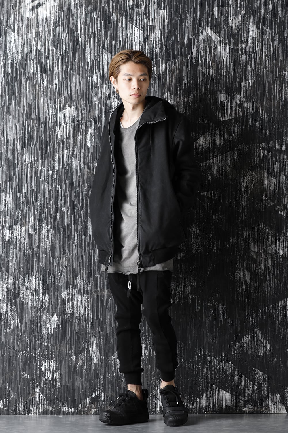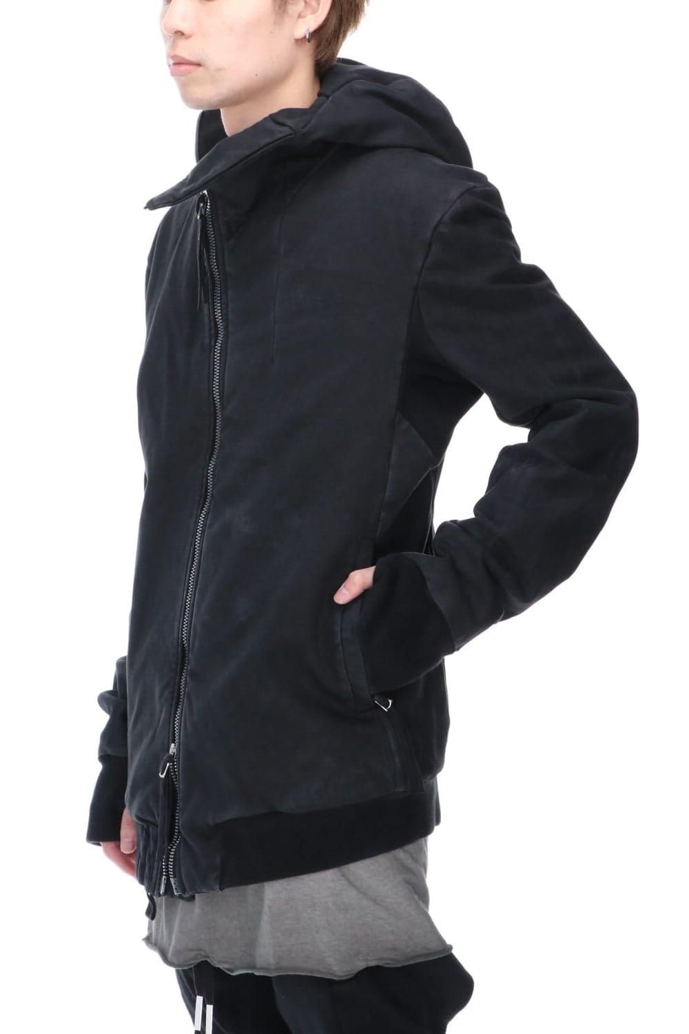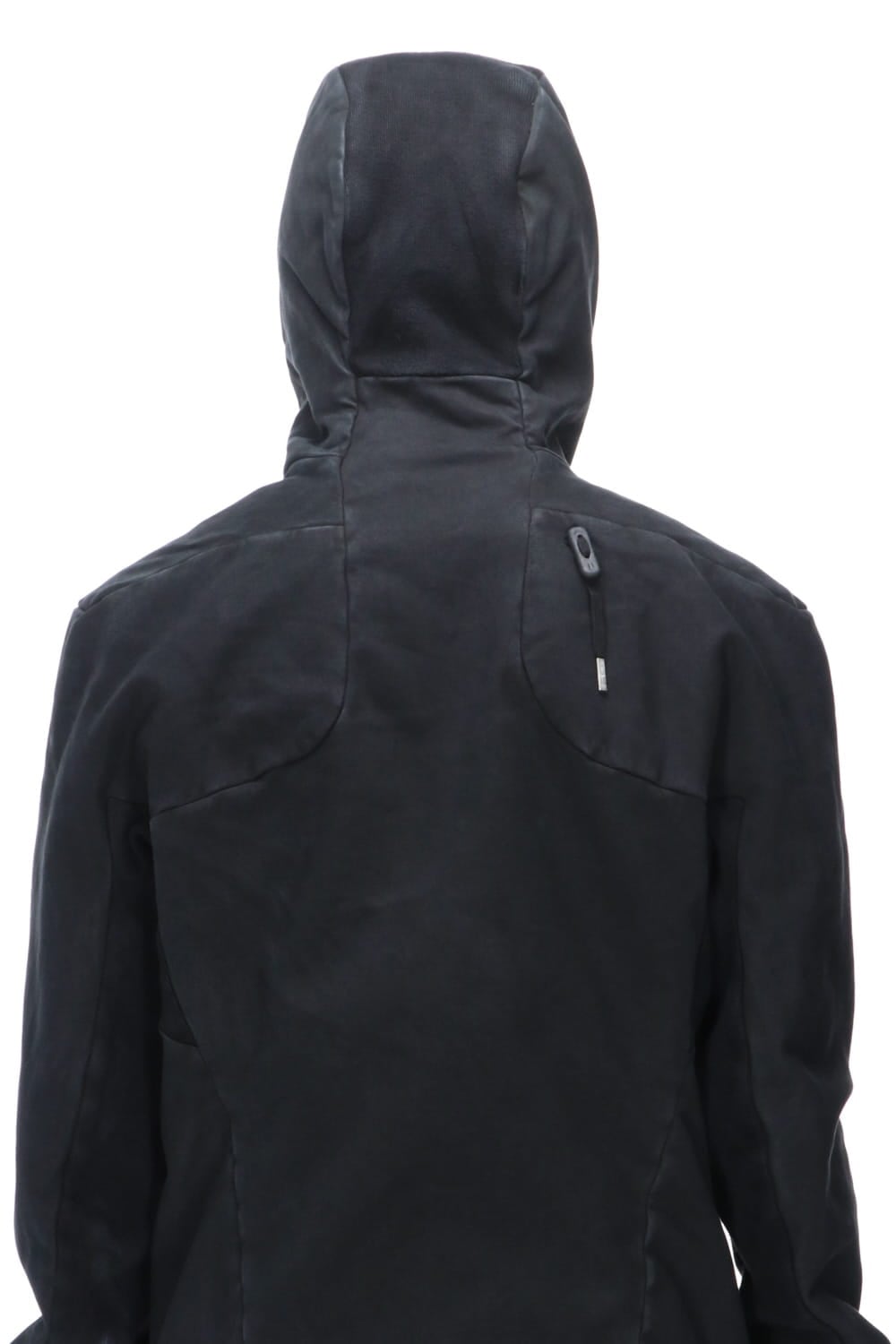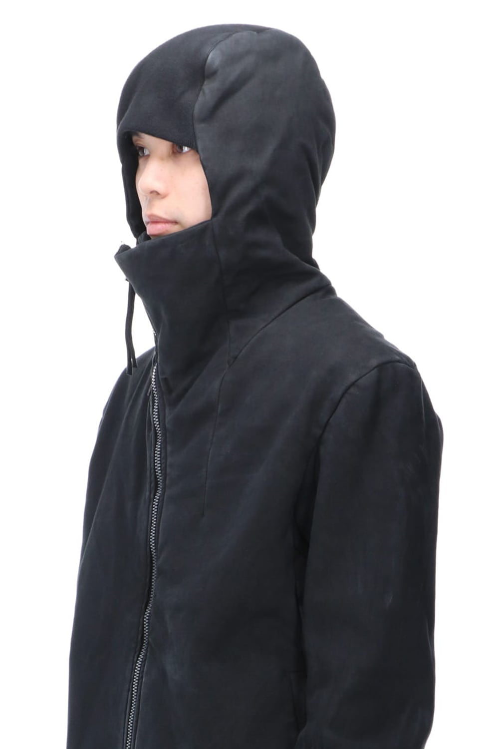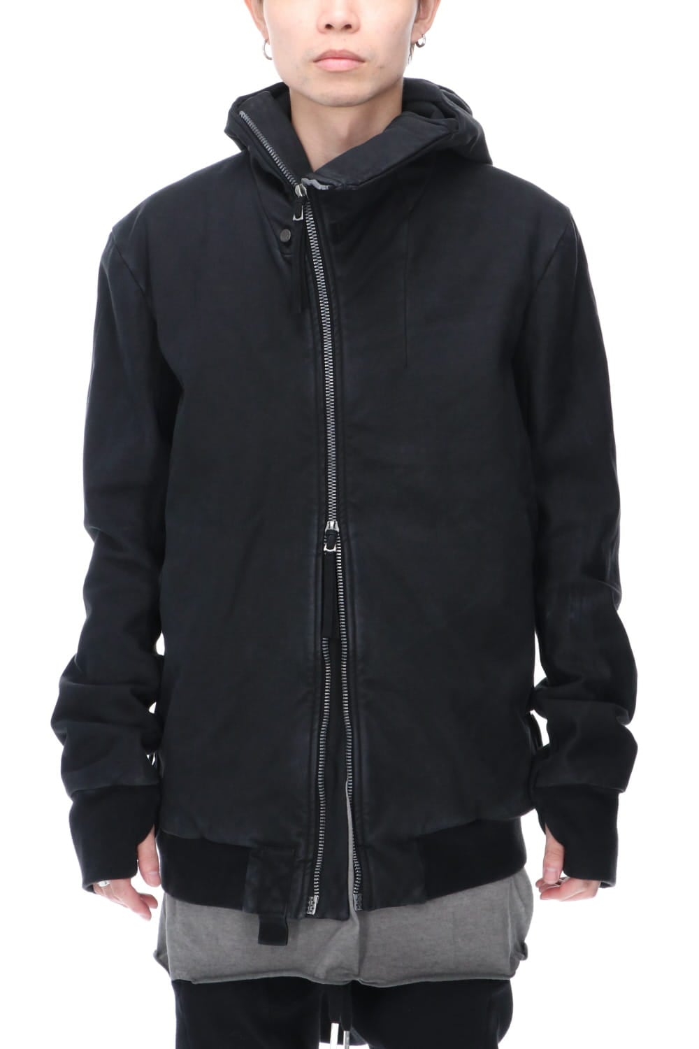 This is a batting type zip-up hoodie developed as a heavy outer wear based on the long-selling ZIPPER2 from the same brand. Compared to ZIPPER 2, which is developed as a middle inner, this item is made with a loose silhouette and has a size that can be worn as an inner with a bit of thickness. The fabric is a slightly stretchy cotton polyurethane fabric with a vinyl coating, giving it a rugged and heavy look that is characteristic of the same brand.