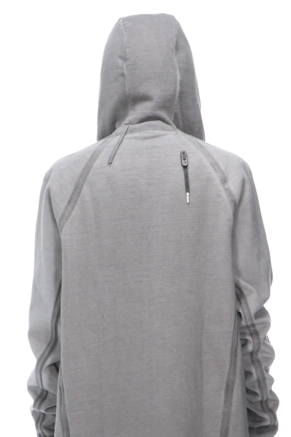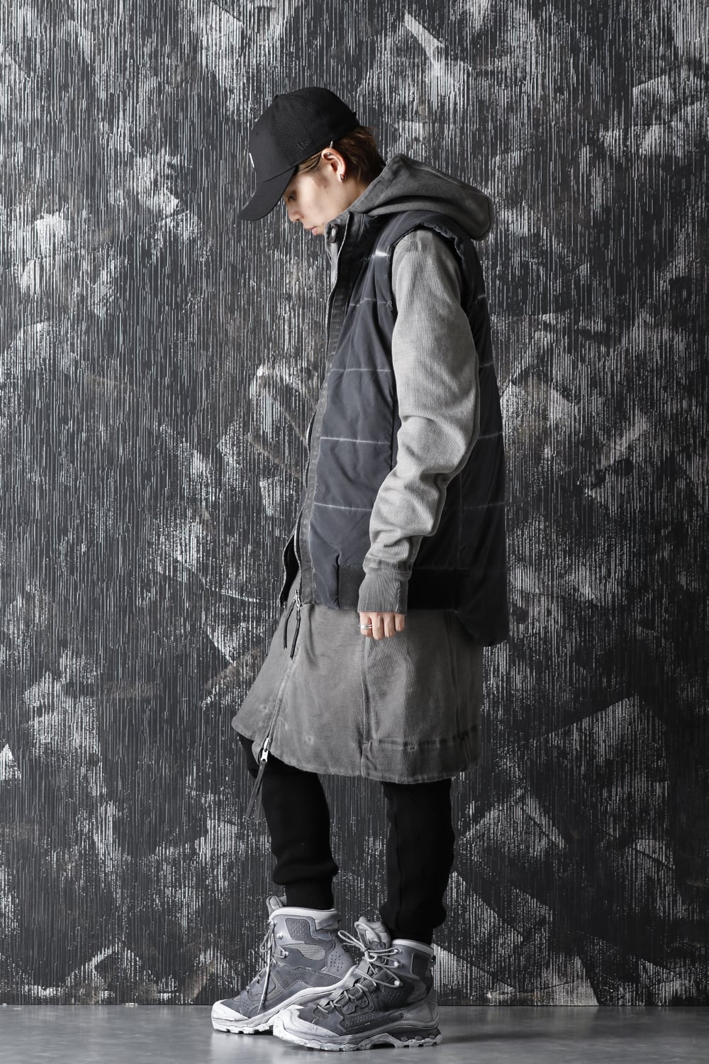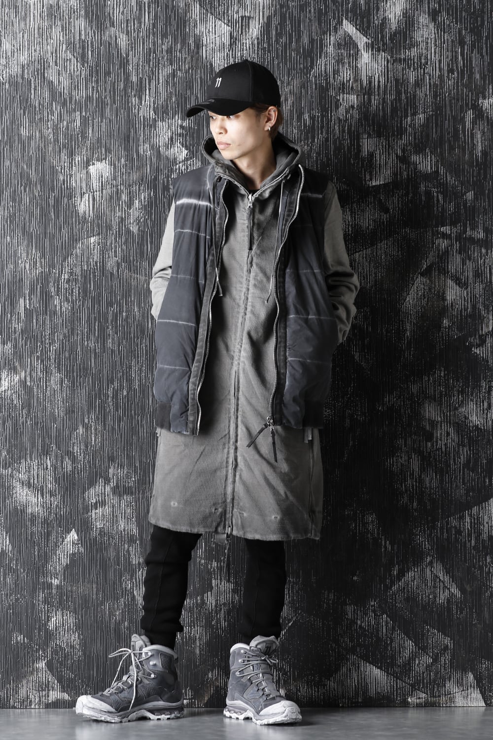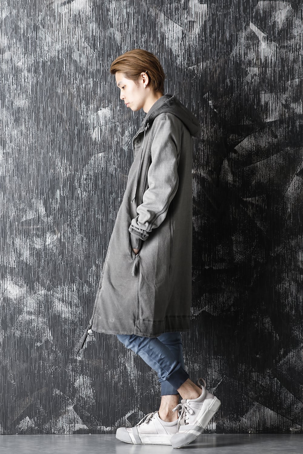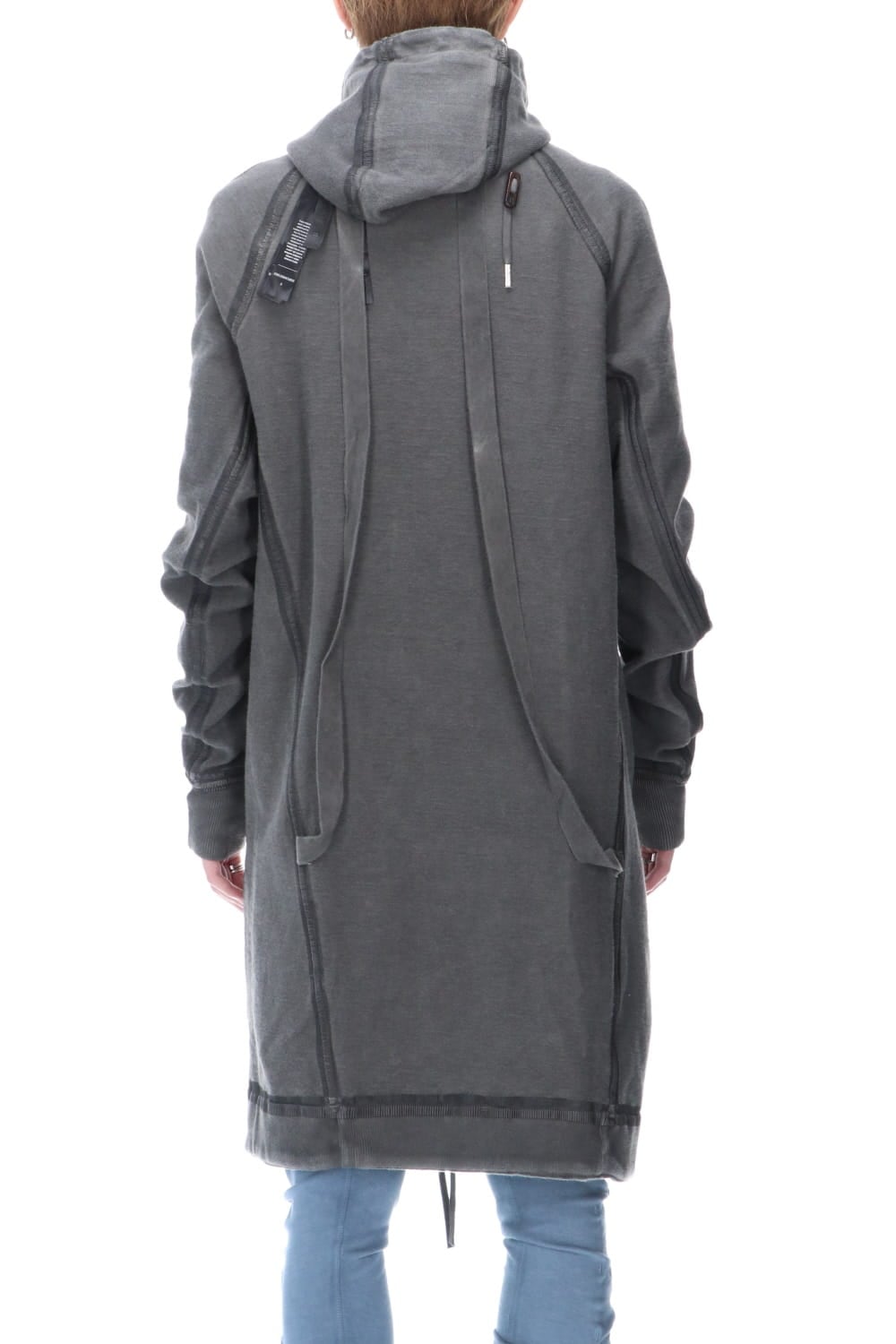 This is a long zip-up hoodie made of cotton jersey fabric that was introduced as ZIPPER series. This item is made of thick and heavy jersey fabric and is reversible. The seam on the back is treated with seam tape and the rough texture of the garment-dyed fabric creates a decadent and dignified look that is characteristic of this brand. Taking advantage of the characteristics of the cold dye, this item has a reversible design with different colour density and uneven feel on the front and back. The zipper is reversible, so you can open and close it from both sides.