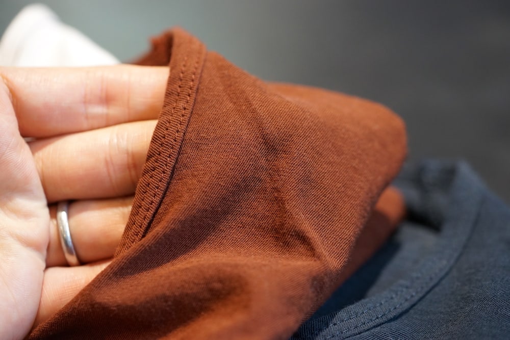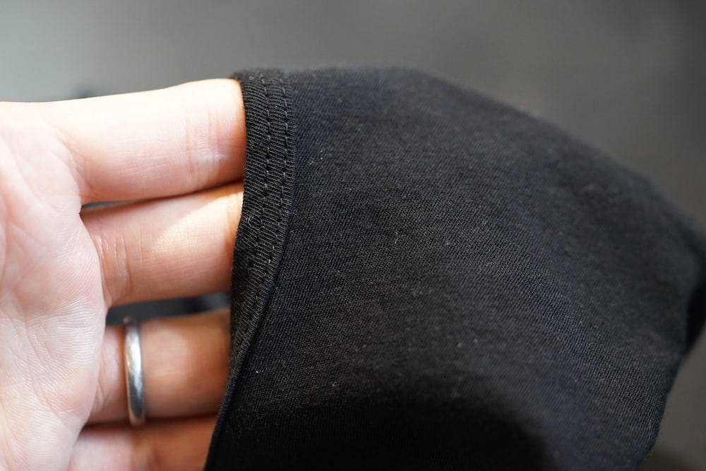外気温が高い時期でもドライで清涼感のある生地なので、定番的なカットソー生地と比べるとかなり涼しいです。