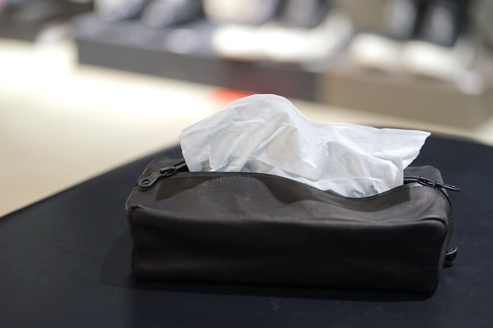 今回、RIPVANWINKLEからリリースとなったのは高級感のあるレザークッション、そしてティッシュケースになります。