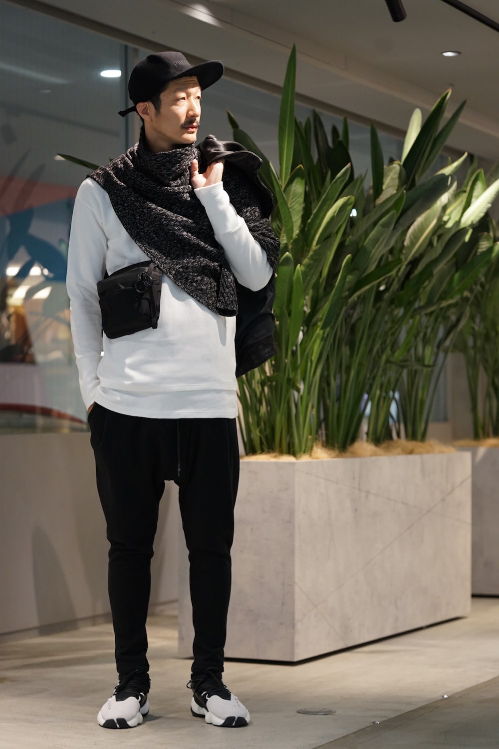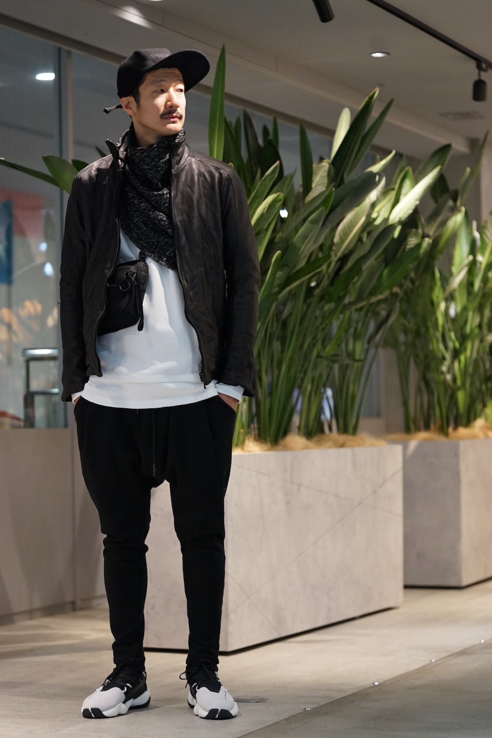 足元のY-3のシューズに関しましては、私のような足が大きい方にも穿いていただけるような大きいサイズも在庫ございますのでご興味などございましたら是非合わせてみて下さい。