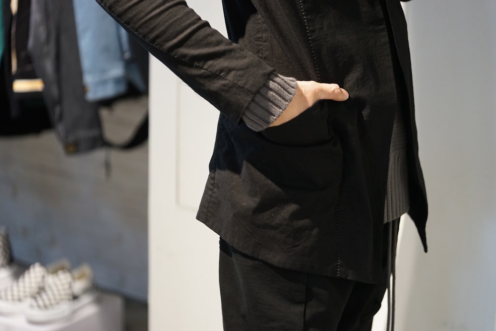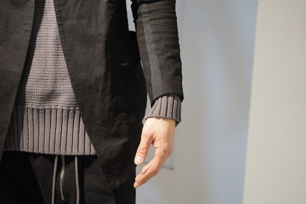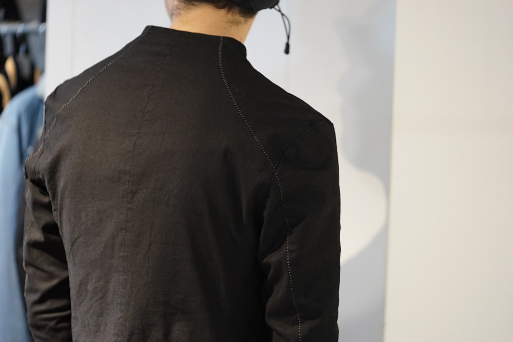 ゆとりをもたせたポケットは細身のバックスタイルやフロント襟回りとのギャップを感じるテイストで、袖内側にはジャージのトリプルスムースをコンビネーションし、着用感を向上させています。