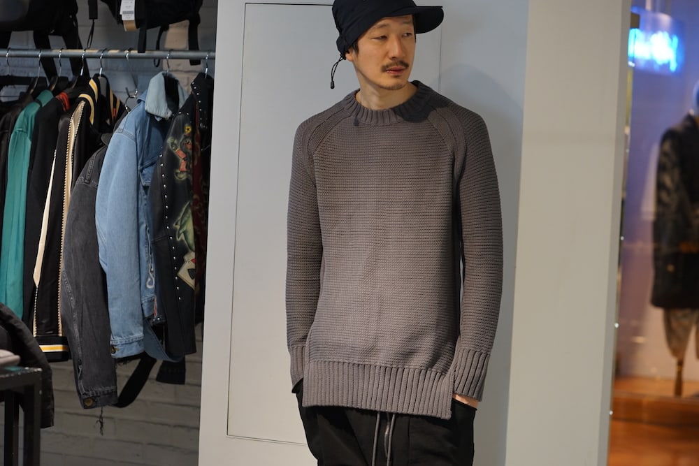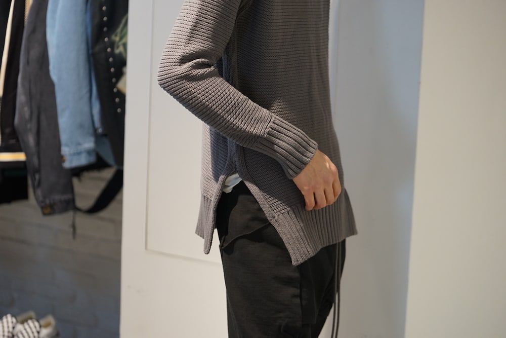 RIPVANWINKLEといえばカットソーというイメージも強いブランドですが、今までなら裾にファスナーのあったデザインがまた新しく感じるような深めのスリットに様変わりしたプルオーバーニットがリリースされています。