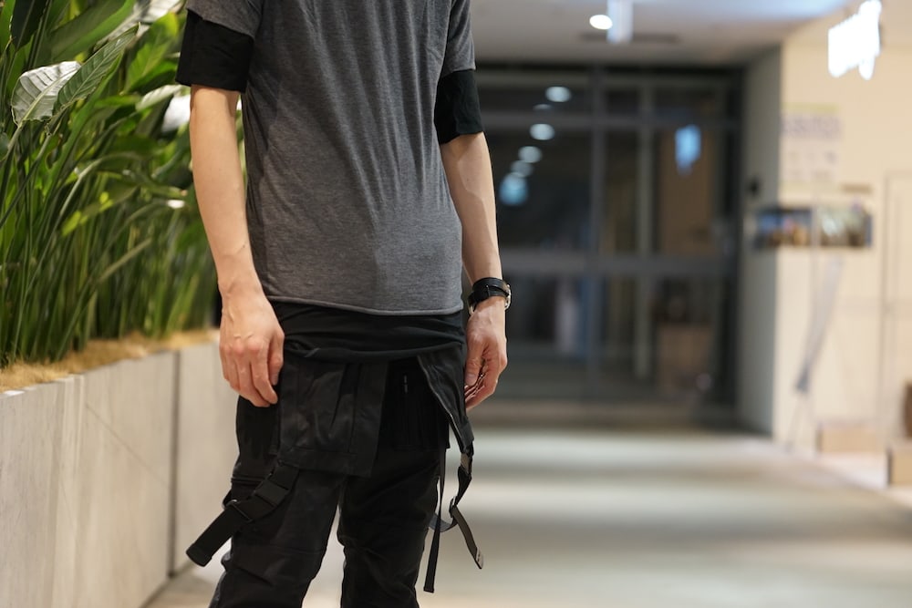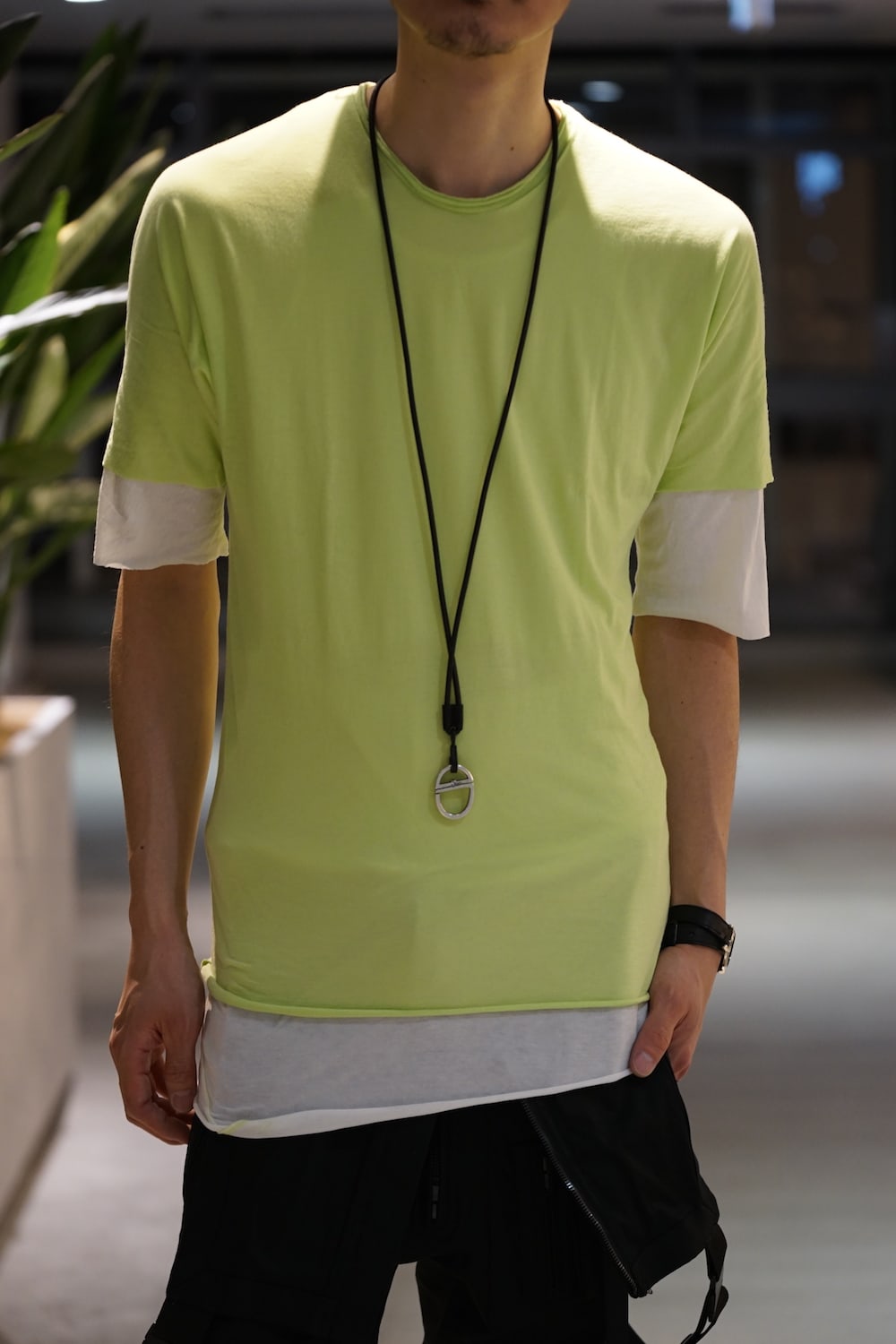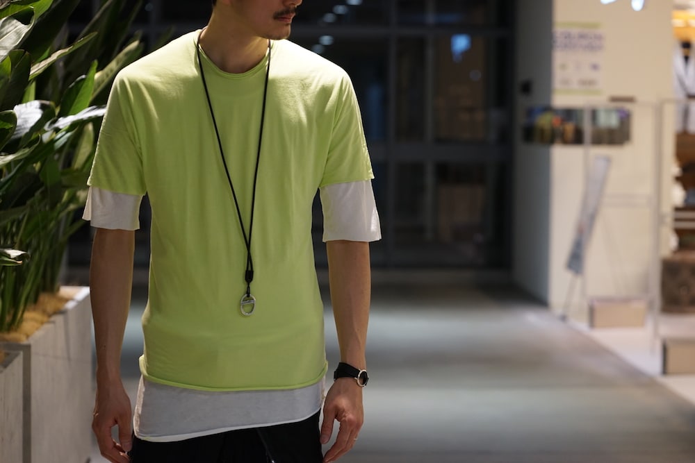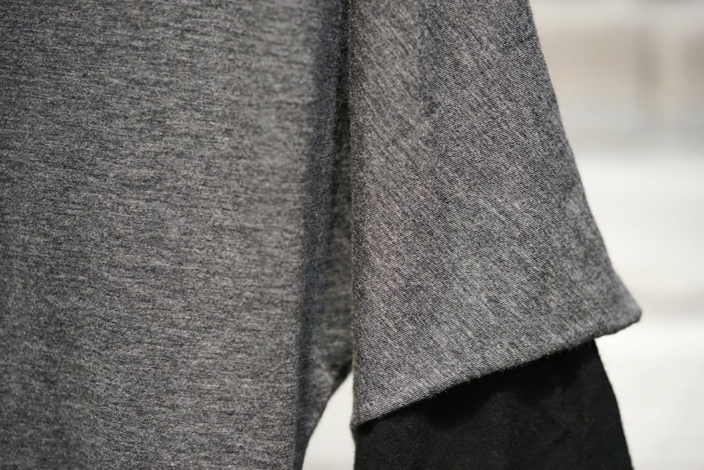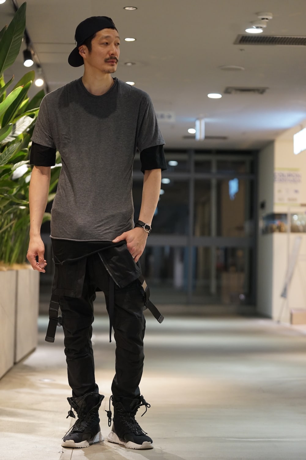 しかしながら内側の生地はスラントカットになっておりアシンメトリーな見え方が楽しめるブランドならではのカットソーです。