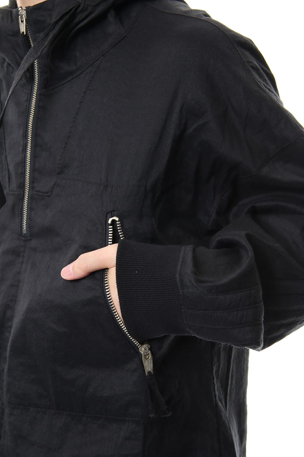 The design is accented with pockets and zips on the neck to the chest. The changeover from one end of each sleeve to the other is also an accent.