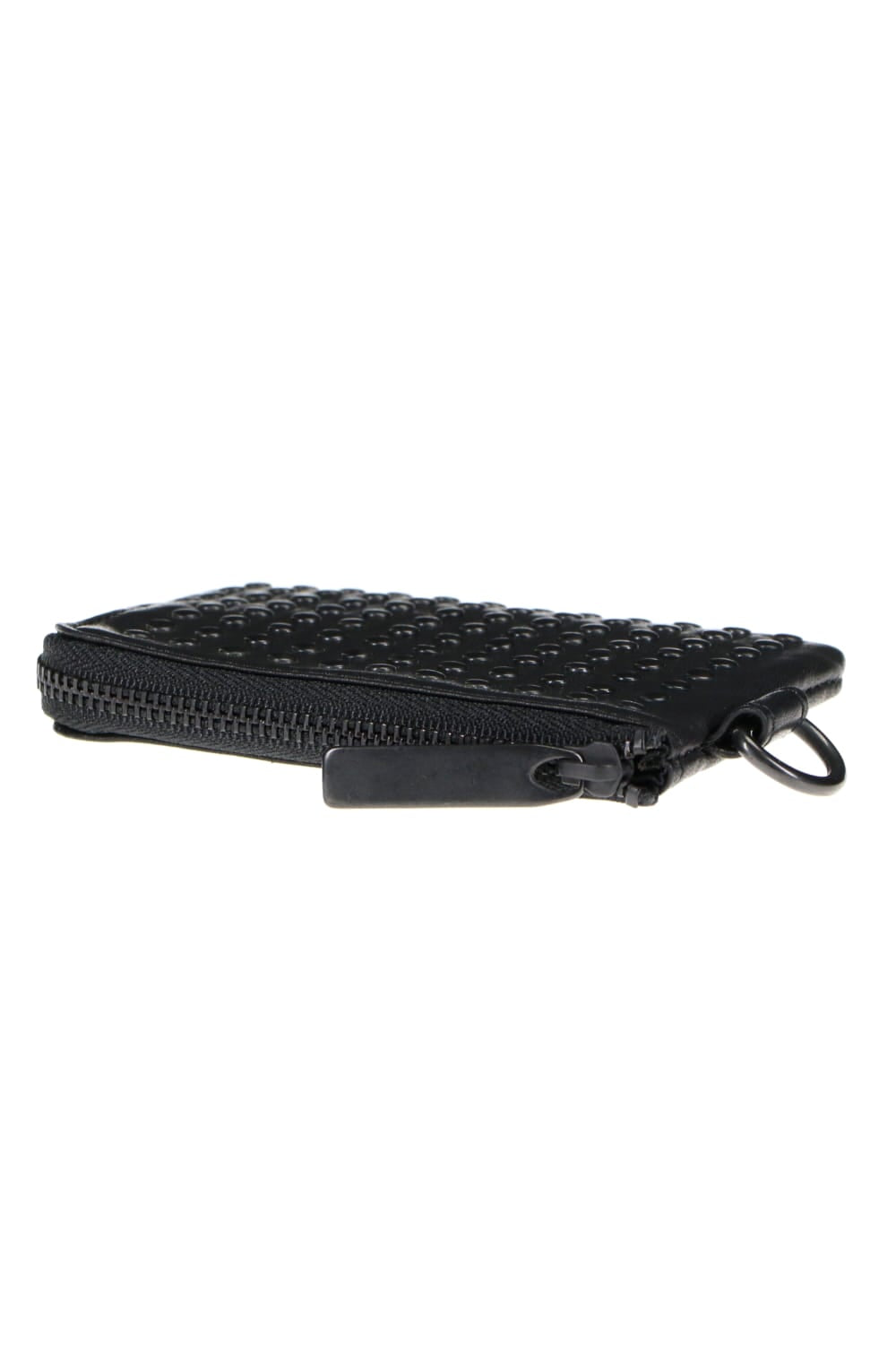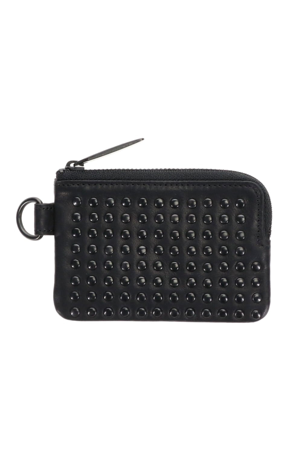 A coin case with all studs design. The eye-catching studs are designed one by one by hand. It is the size of the capacity that can hold cards. There is a divider inside and the L-shaped fastener makes it easy to check the contents and take them out. Available in silver and dal (Matt Black). The brass color of the dal will come out as you use it. You can also enjoy the metal aging.