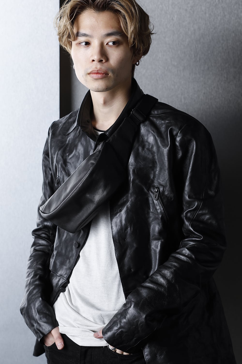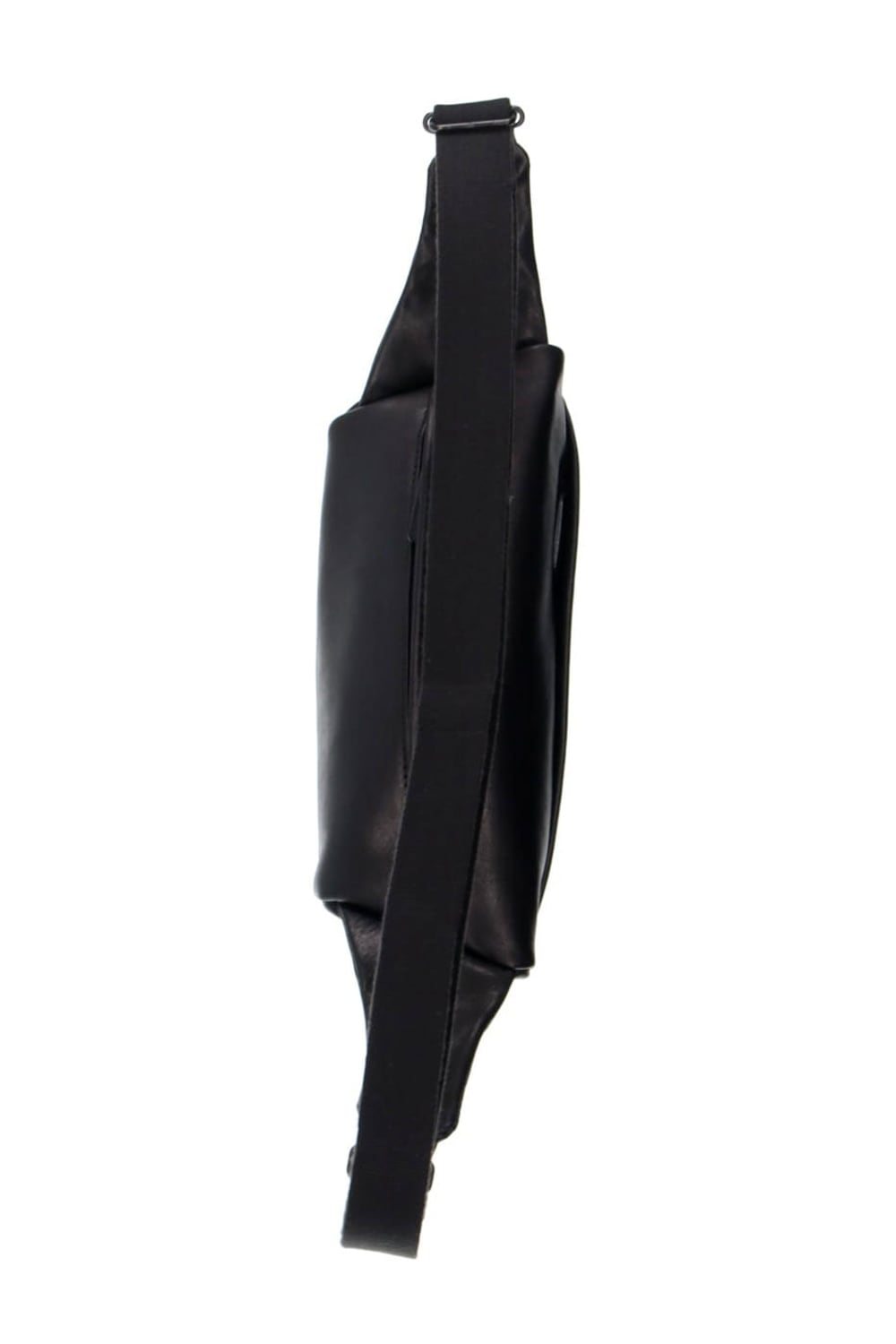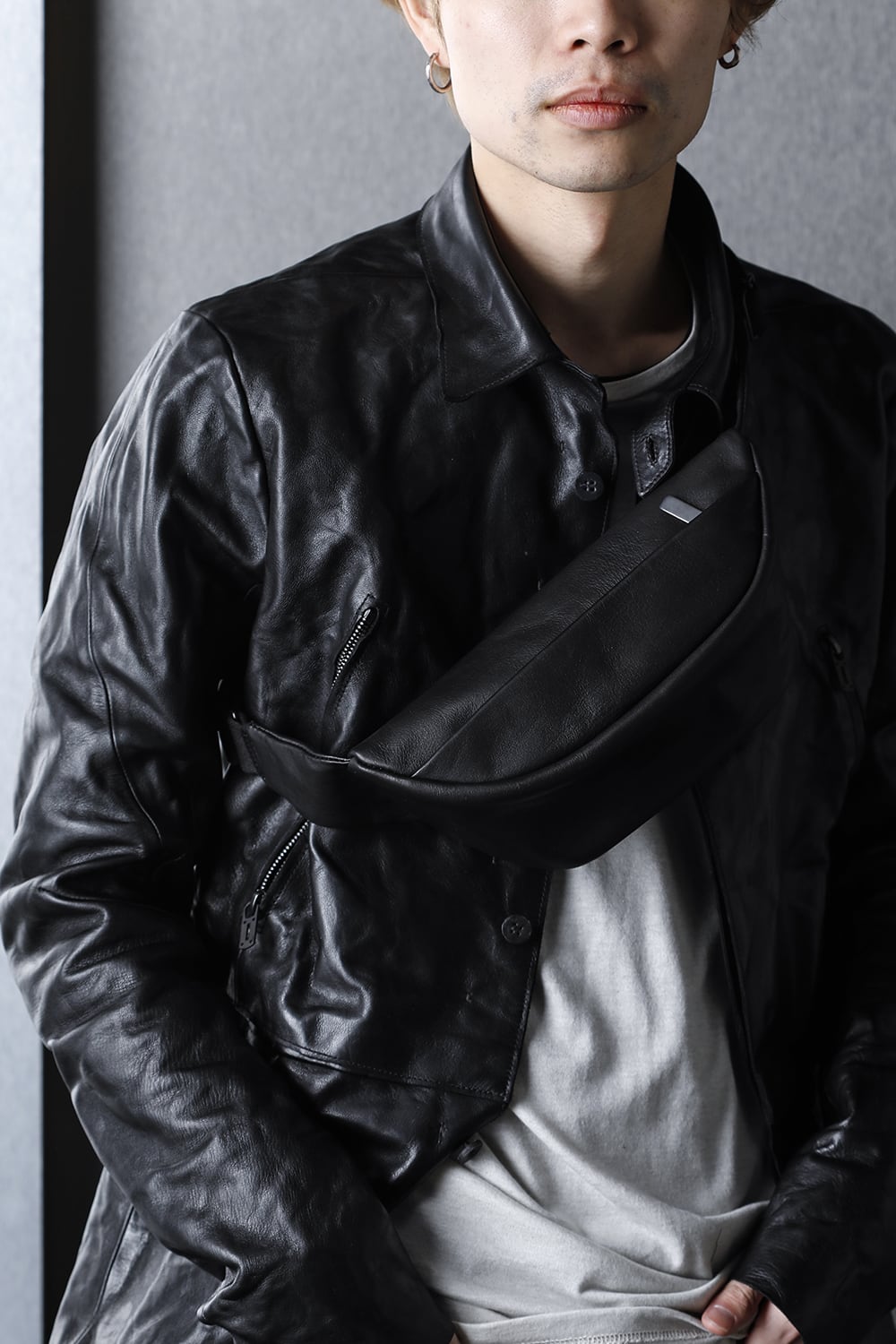 This is a smooth leather compact waist bag with a matte texture. This item has a semicircular three-dimensional form and is designed to minimize the visibility of the metal fittings. There are 2 zippered pockets on the top and back of the bag, and the sub-pocket on the back is a pocket to the bottom, which takes up a lot of space. The cotton nylon tape shoulders create a casual look. The size can hold short or compact wallets, and can also be used as a body bag. The leather is an original cowhide that combines both sturdiness and lightness. It is made with a hybrid leather that is tanned once with chrome, then partially de-chromed and tanned again with tannin. This item is characterized by its lightness even though it is thick. It has a soft and light texture while retaining the thick texture and unique texture of leather.