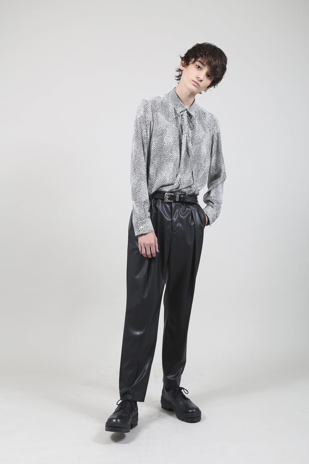 Decin Leopard Print Regular Shirt With Ribbon Off White x Black