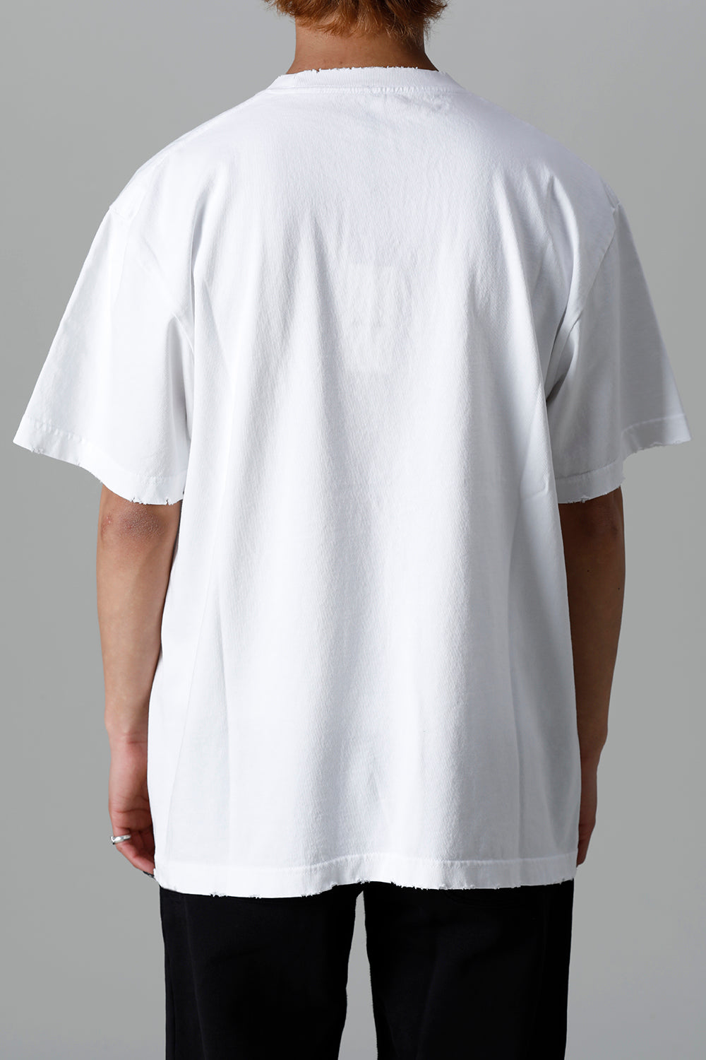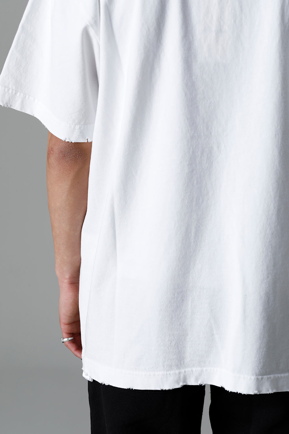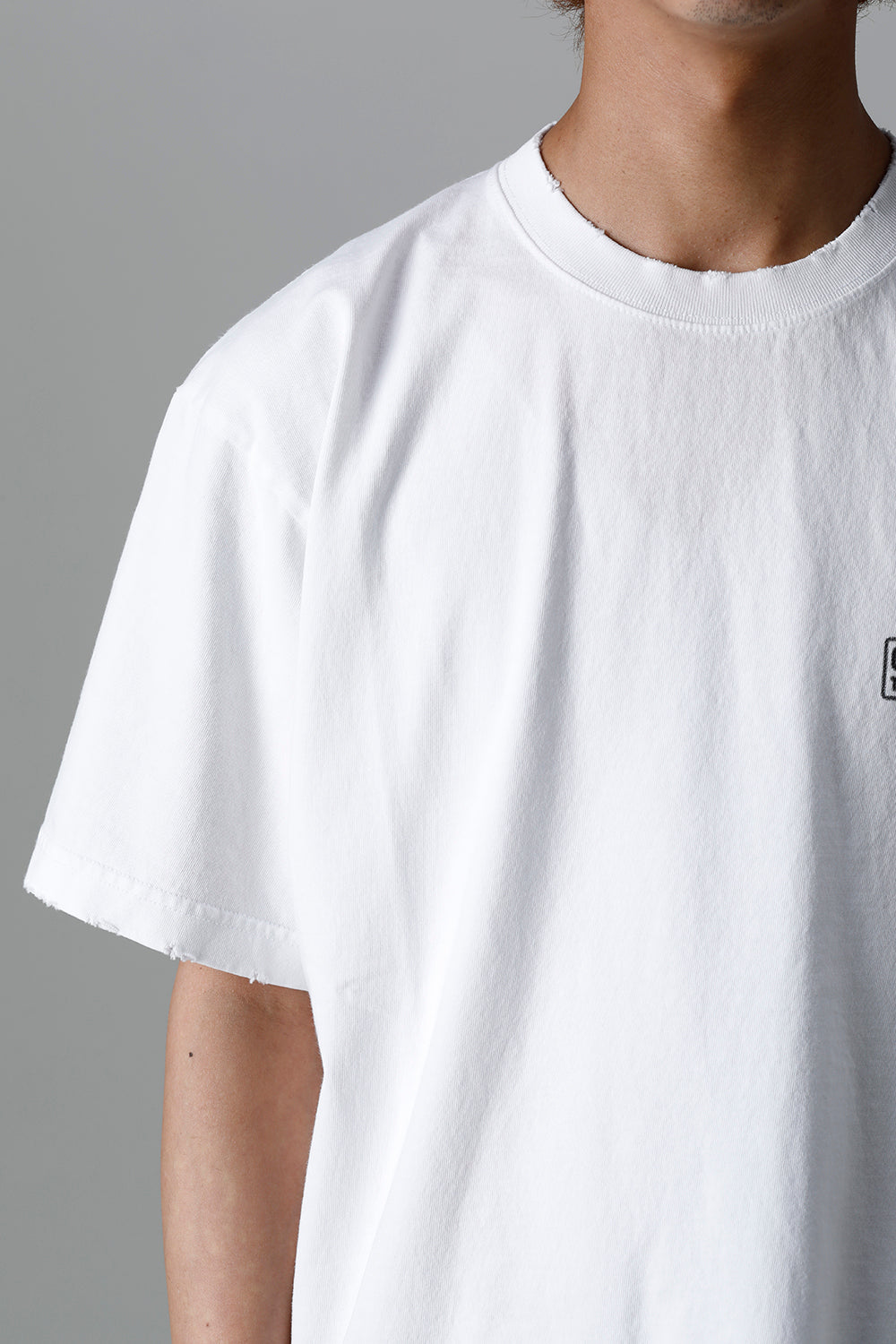 This item is made of semi-combed yarn with a soft texture and is extremely comfortable to wear. The end of the thick sheeting fabric has been damaged and crushed, and has been given a vintage finish with bio-processing.