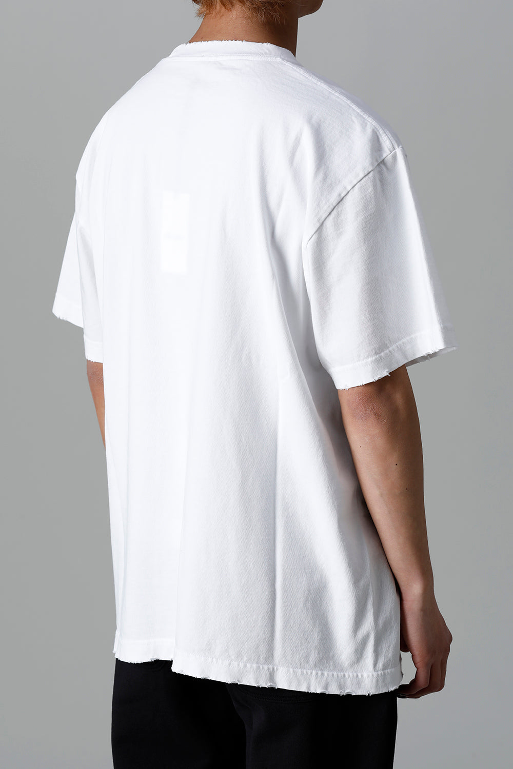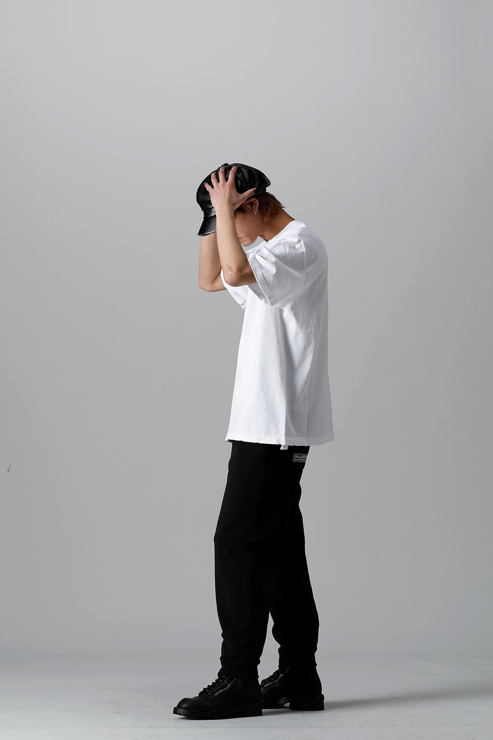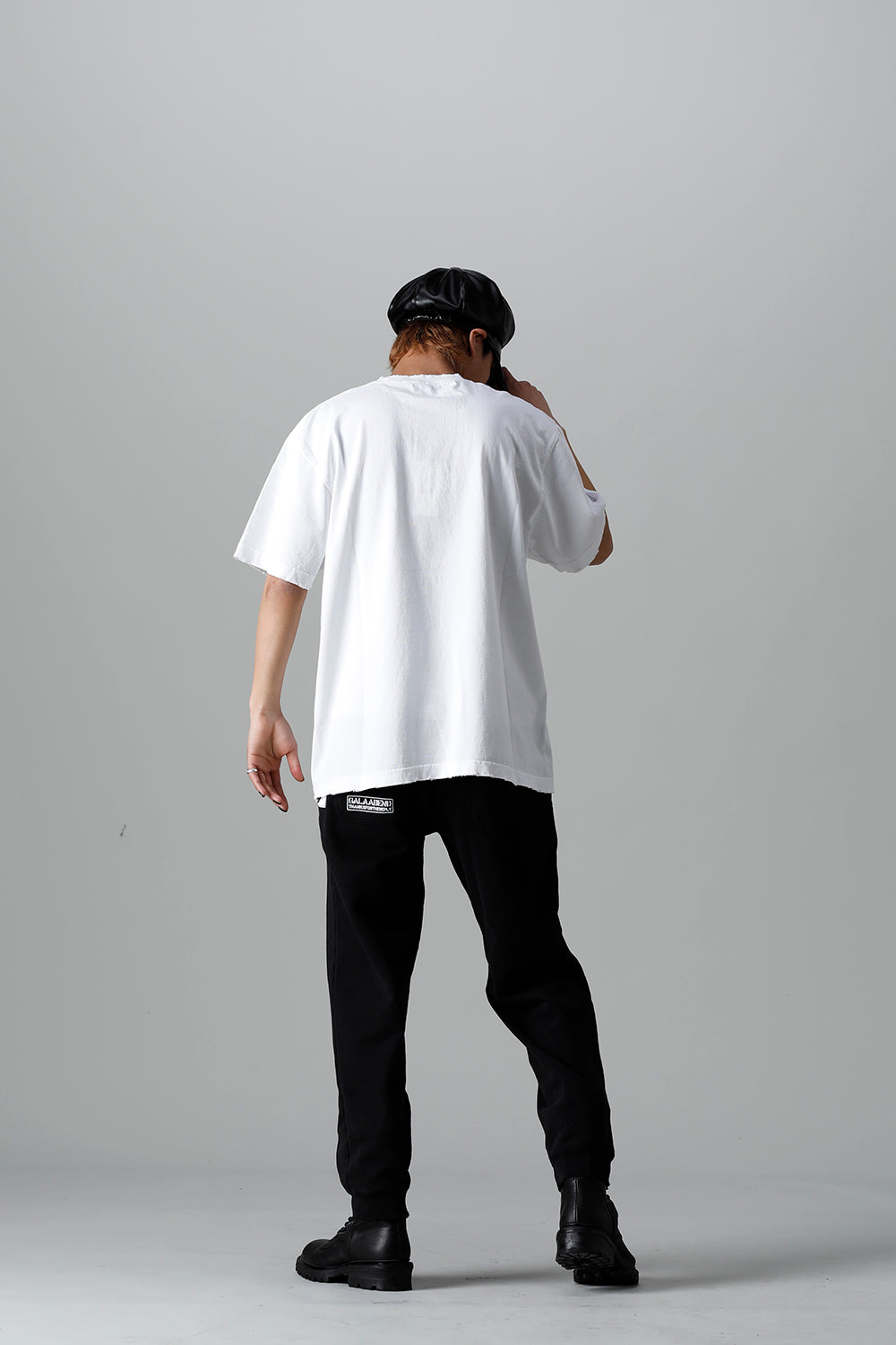 This item is made of semi-combed yarn with a soft texture and is extremely comfortable to wear. The end of the thick sheeting fabric has been damaged and crushed, and has been given a vintage finish with bio-processing.