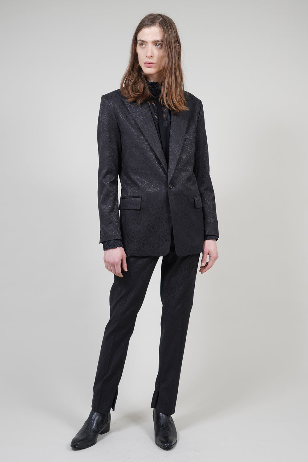 This is a lace shirt made with delicate and elegant high quality Russell cord lace with an orchid plant Dendrobium motif.