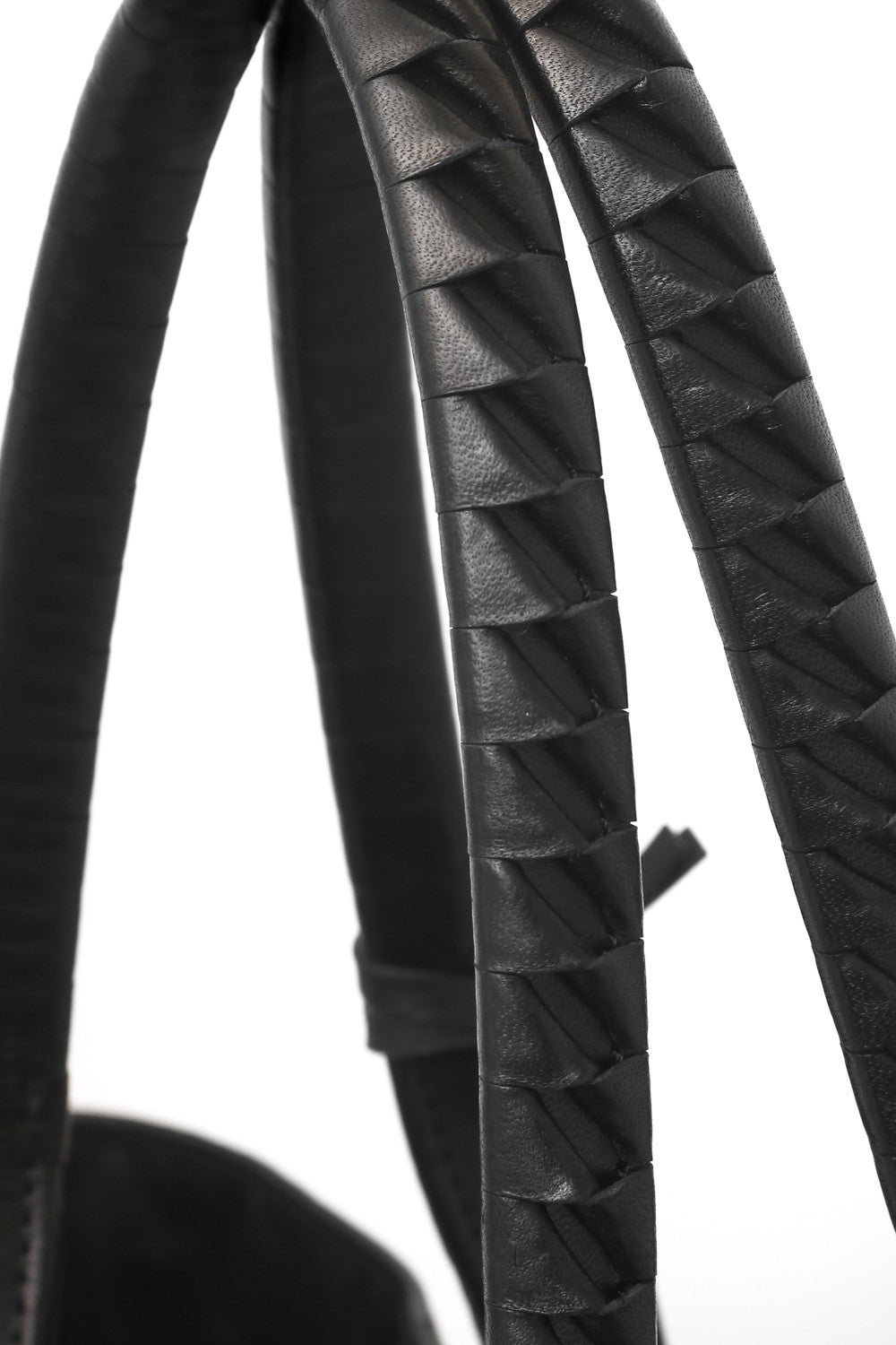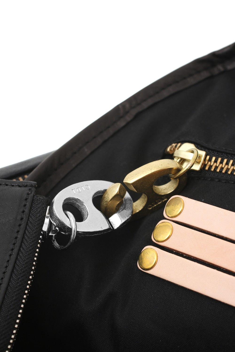The Wall Shoulder Bag is constructed from a domestically sourced cow leather. The bag features the label's signature katana handle and grasp, giving the straps structure and grip. Unlike the Veil, the side handles are pockets for this bag. The inner compartment features original hardware influenced by ship chandelry. Coin cases and key holders from can be attached. The bag can also be converted to a more compact size by connecting certain hardware. The bag allows has capacity and the front portion has a well concealed pocket.