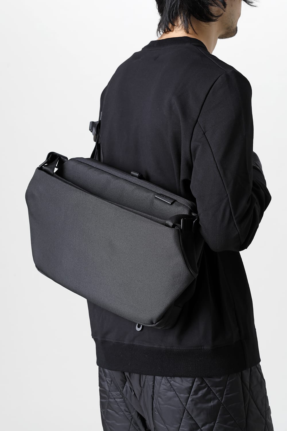 Although it has a sharp side silhouette, the design combines the capacity of a backpack and the lightness of a body bag, so it can be used for both casual and business occasions.