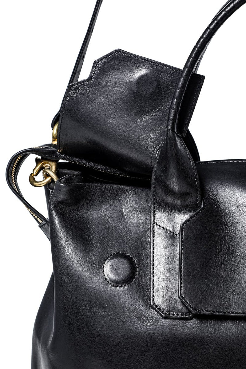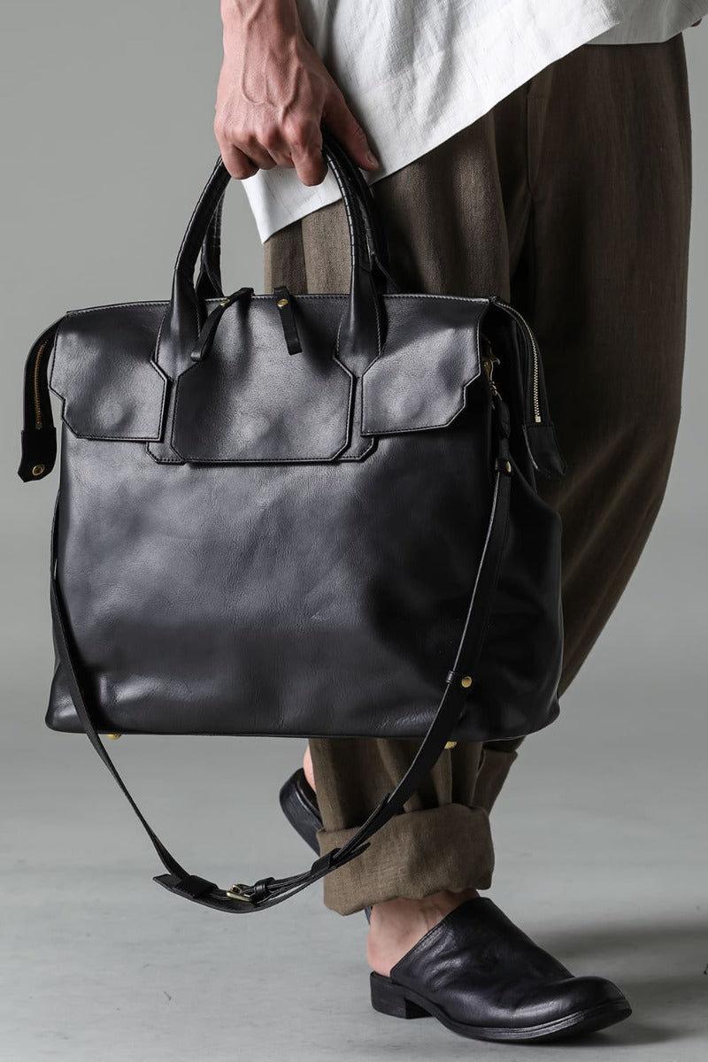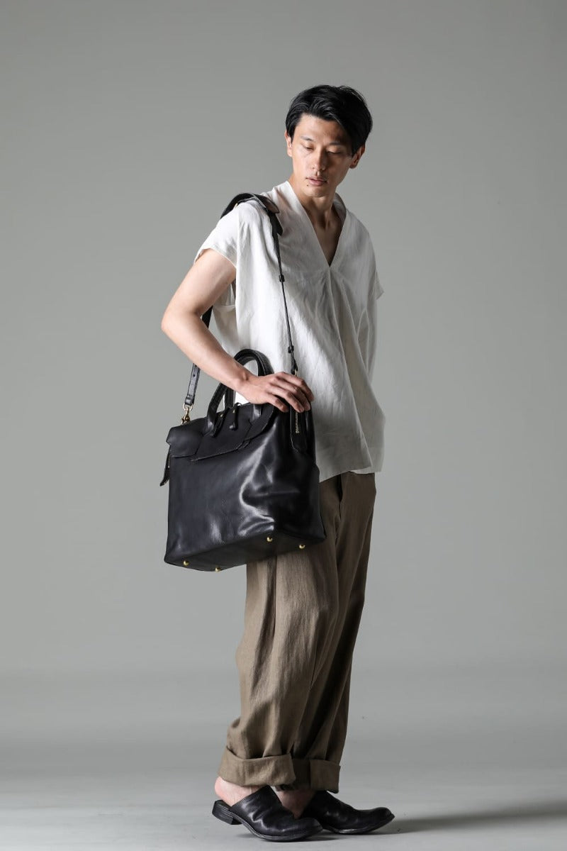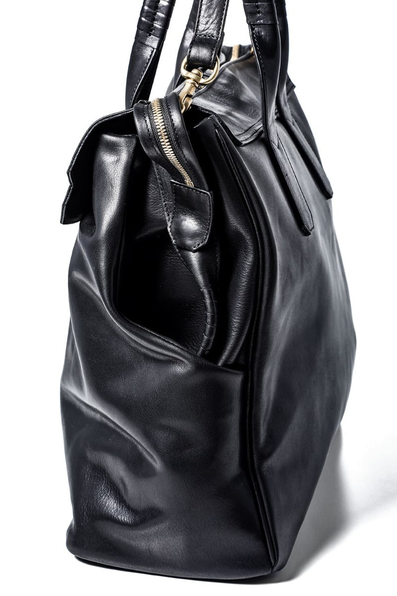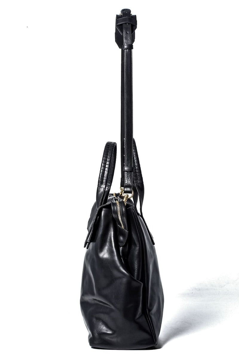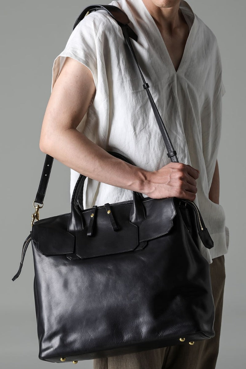 This is a new Keyhole Boston from the 22SS collection. This bag is made with the theme of this season's "COVER COLLECTION"/"Cover and supplement ". This is a" NEW CLASSIC "item with a functional fastener attached to the top, based on the flap type bag which has a classical impression compared to the bags developed so far. The flap can be opened and closed with a magnet, but it can also be opened and closed with a top zipper in two ways, so the opening and closing mechanism can be used differently depending on the scene. This bag is particular about the details of the classical bag, it has a design with a dent in the part where the element of the fastener so that when you look at the bag from the side, you cannot see the fastener. In addition, the elements can be opened and closed smoothly by using an Excella fastener. On the inside of the side pocket, there is a handle that reminds you of the Veil handle that was developed in the past by the same brand, and it is designed so that you can put your hands on it so that the bag won't move when you hang it diagonally. The leather is made from the same brand's cow mineral leather, and the lustrous oily look and fine texture are attractive.