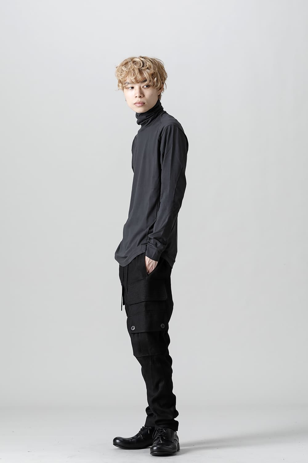 This is a high neck cut sew made of jersey fabric made by twisting 3 of the highest quality Egyptian cotton, SUVIN cotton (100 counts).
