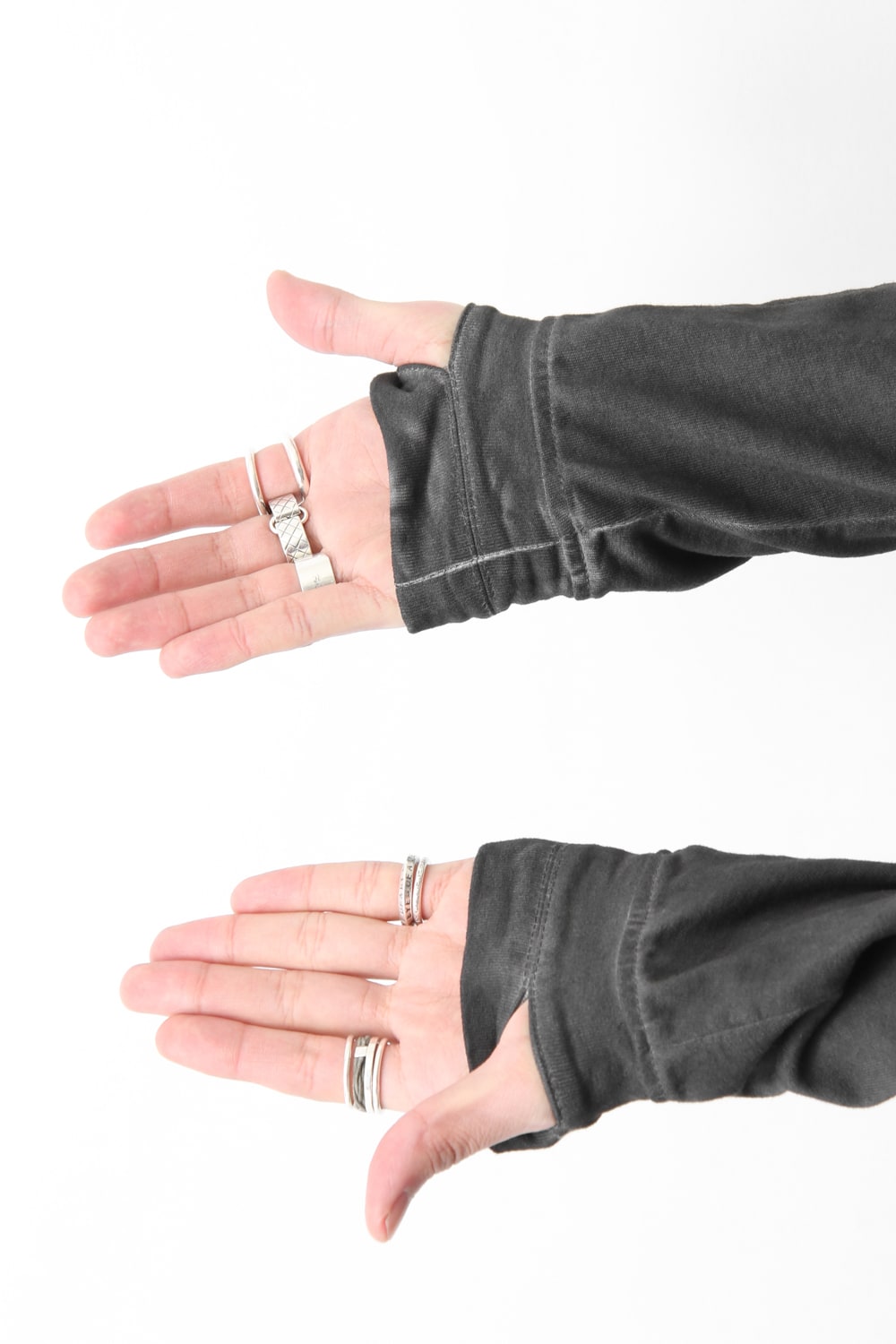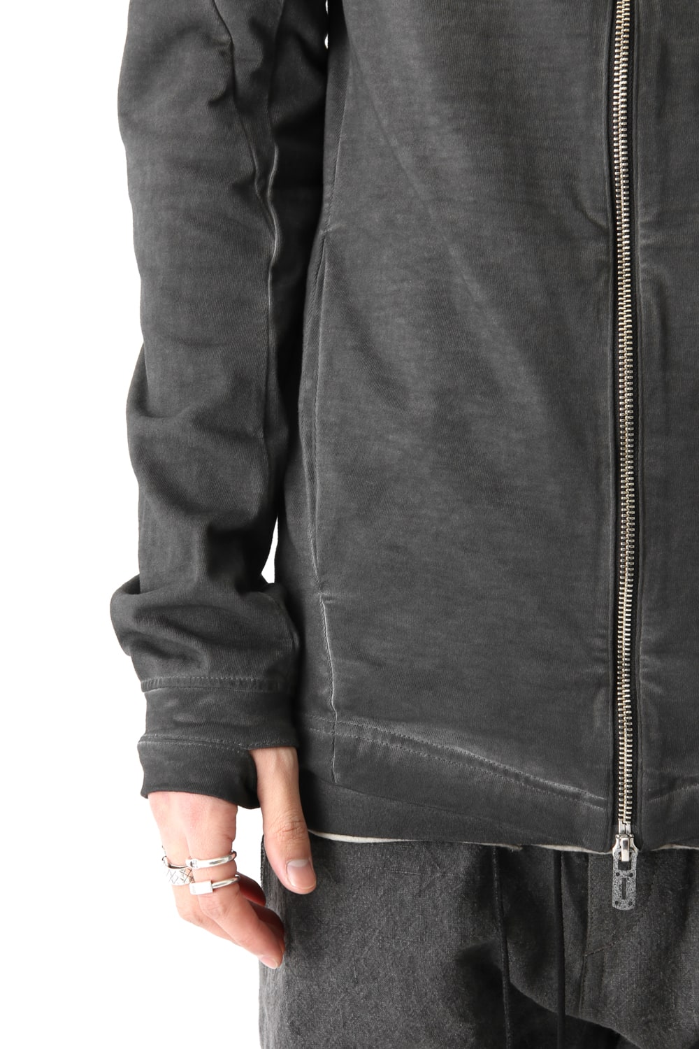 The pattern is a neck line and shoulder line joint to the arm hole, so that the neck stands well and to give a nice freedom of movement.The hem has unbalanced layered ribs. The length is a slightly long half length.