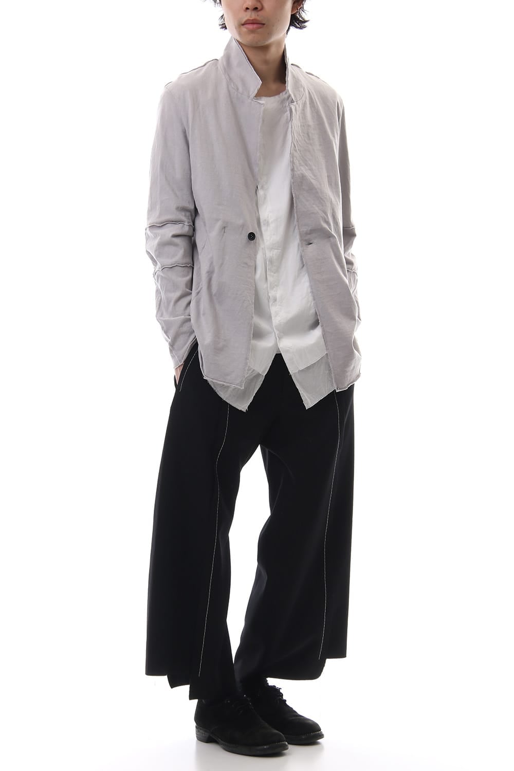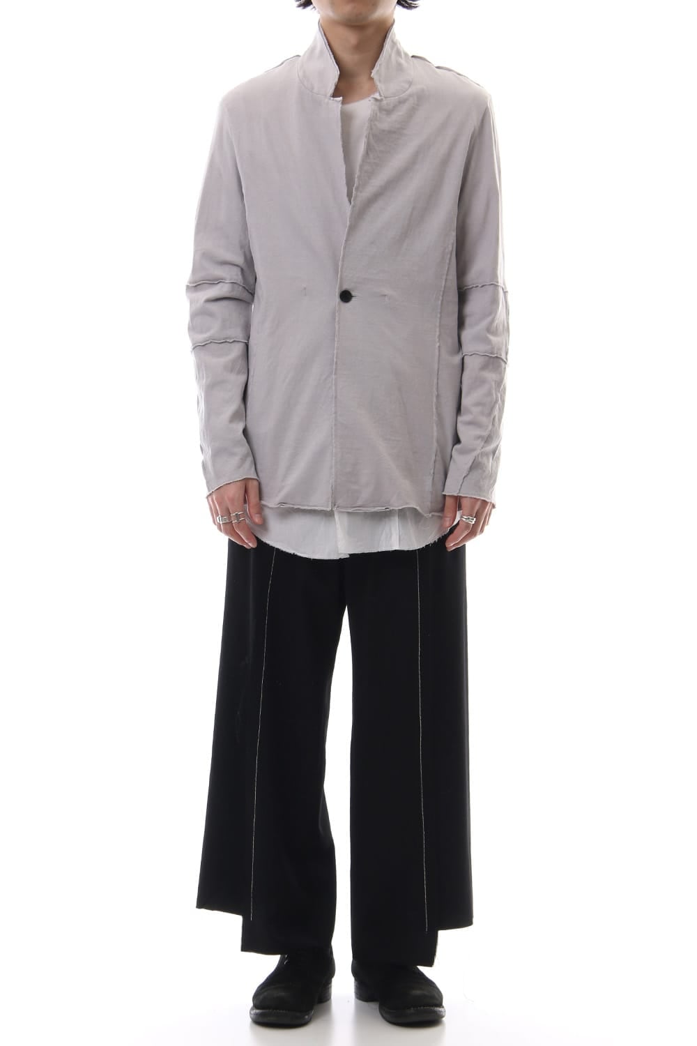 An easy jacket that is easy to wear. Slab fabric using special unevenness yarn developed with domestic spinning technology which is the highest standard. By processing it in a luxurious manner, it produces a crafty expression. The collar is a stand collar. The arms have a seam design to reduce stretch. The work is basic piece focused on making details. It can support a wide range of casual and mode styles. As it is thin, it is also comfortable to wear. The silhouette is a form you can use without getting tired. The finish has a slightly tight design.