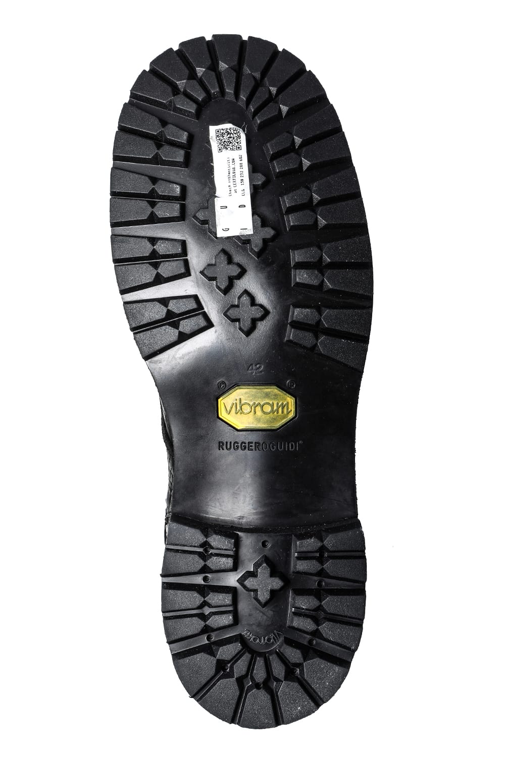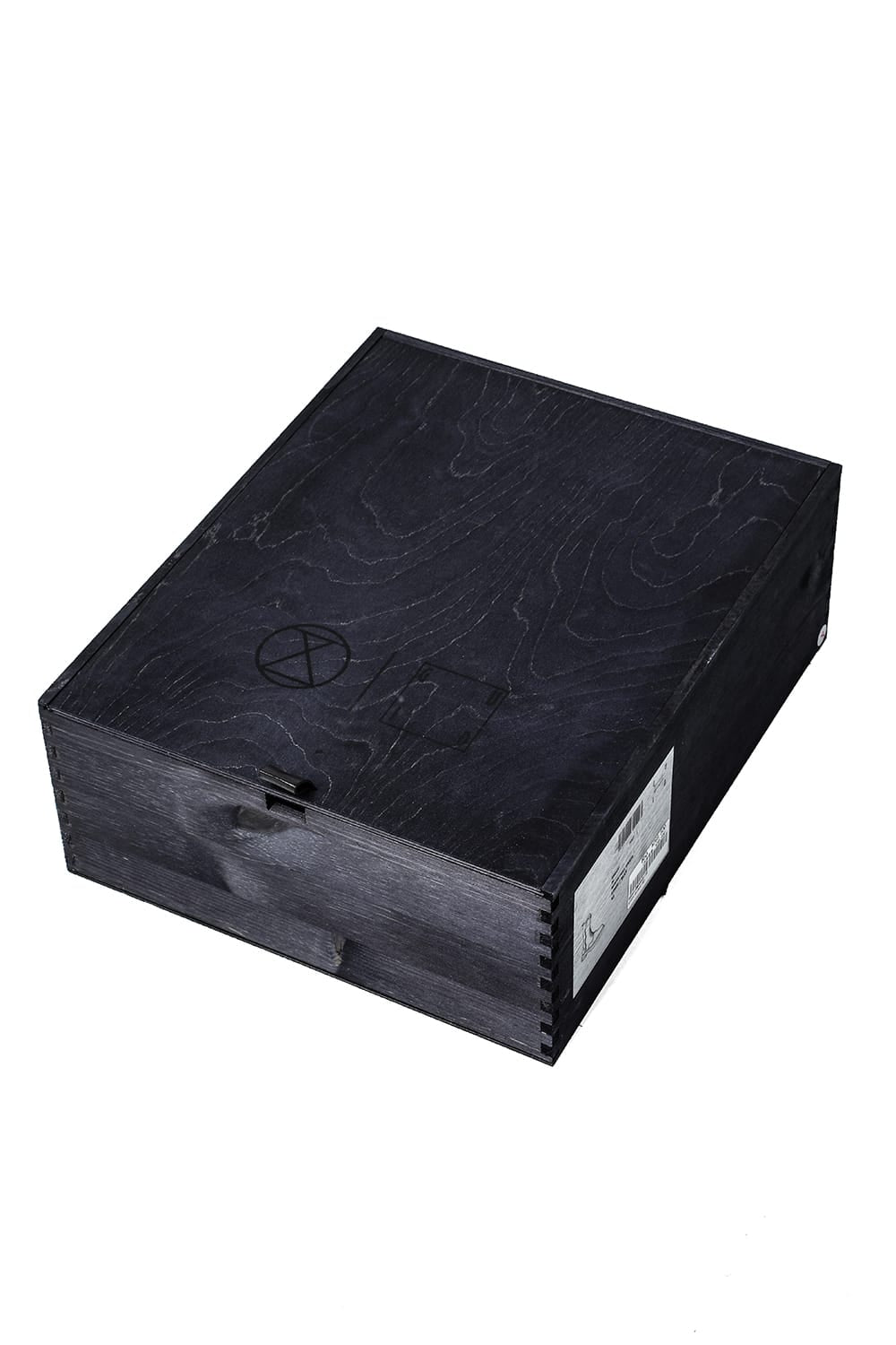 A limited edition of 150 combat boots produced in collaboration with New York's independent media, StyleZeitgeist. Based on GUIDI's lace-up boots [GR05V], the design by Eugene Rabkin, the founder of StyleZeitgeist, features an elongated shaft, 13-hole lace-up specification, and snap buttons covering flaps over zips on both sides for added convenience and functionality in putting on and taking off. The leather is vegetable-tanned bison leather, characterized by its powerful texture and the elastic, supple feel unique to GUIDI leather. The sole uses a tank sole made by Vibram. This collaboration, also designed by Eugene Rabkin, is presented in a special black wooden box.