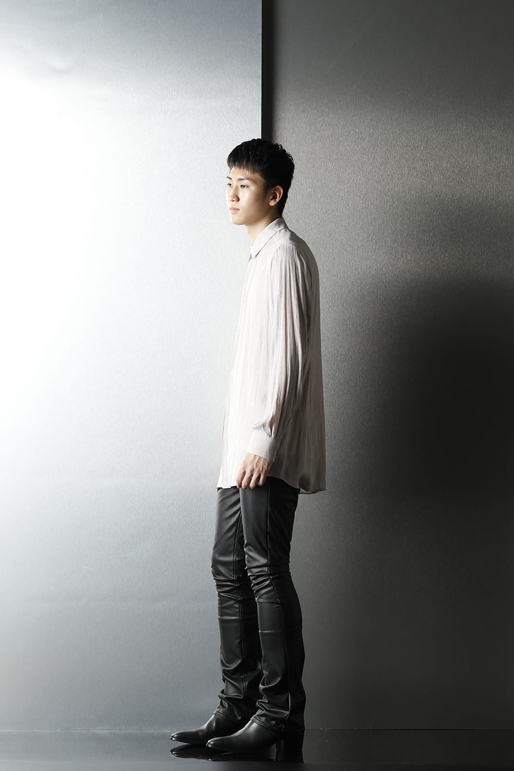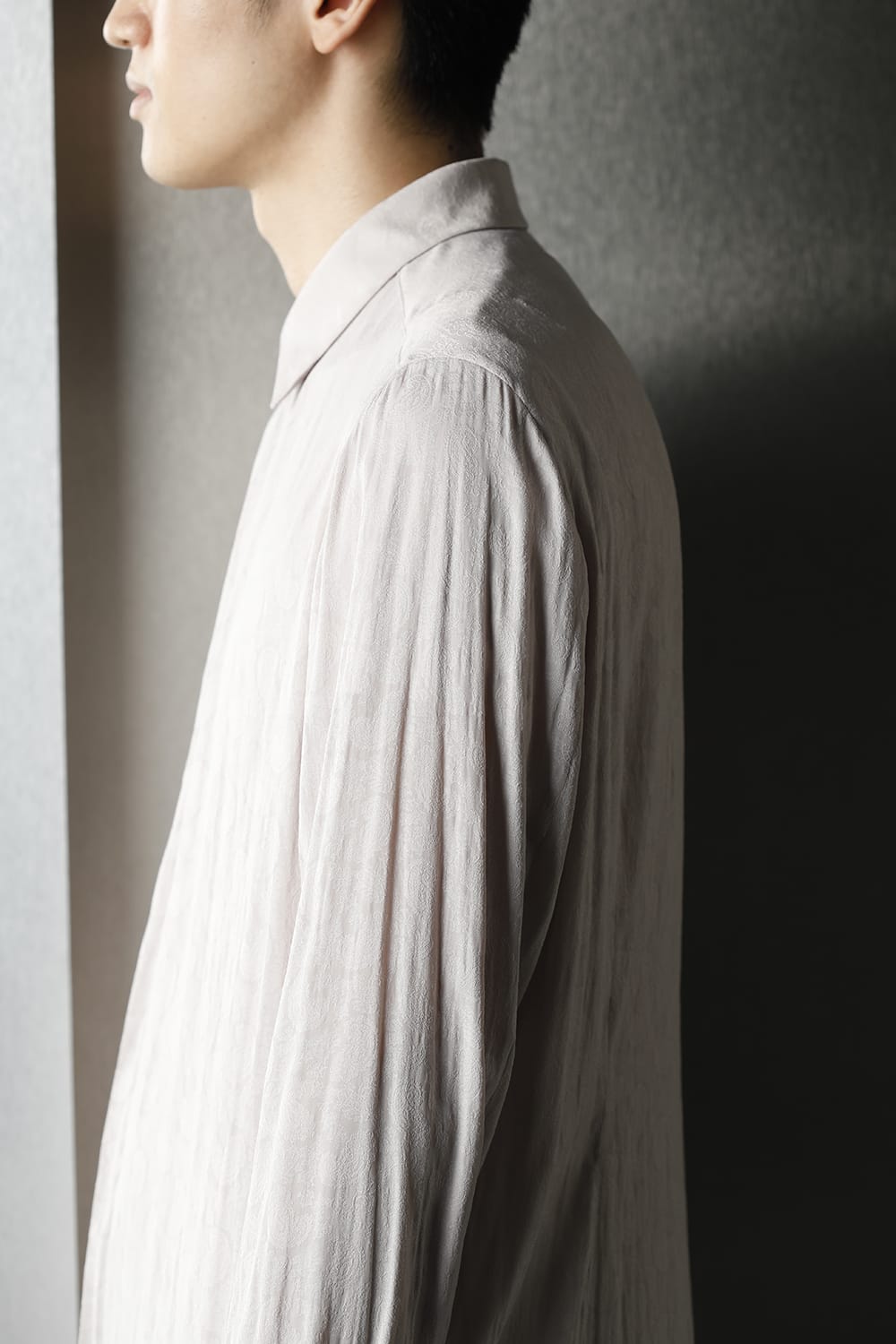 You can enjoy the natural vintage texture with the unique swelling and draping of the crepe de Chine + tumbler finish.