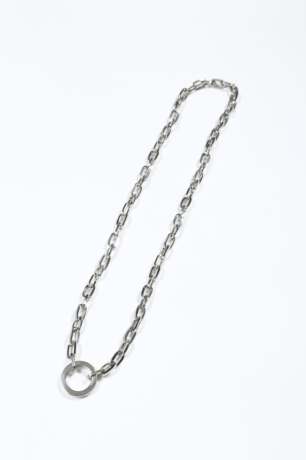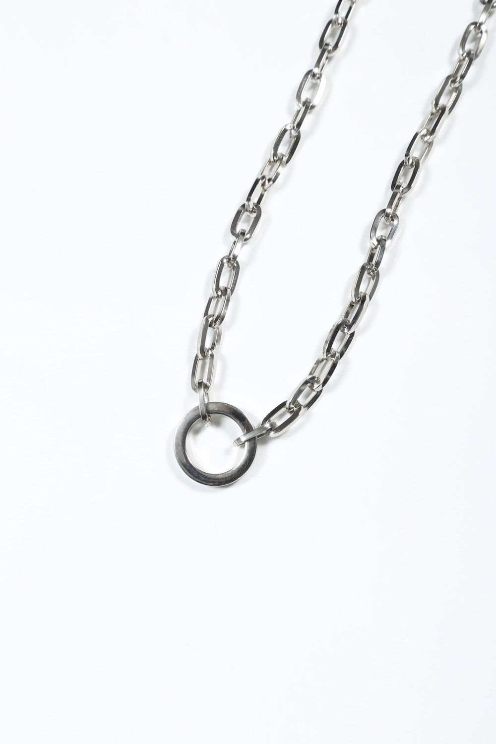 This is a slightly voluminous necklace with a ring and cable chain. It can be matched with various styles.