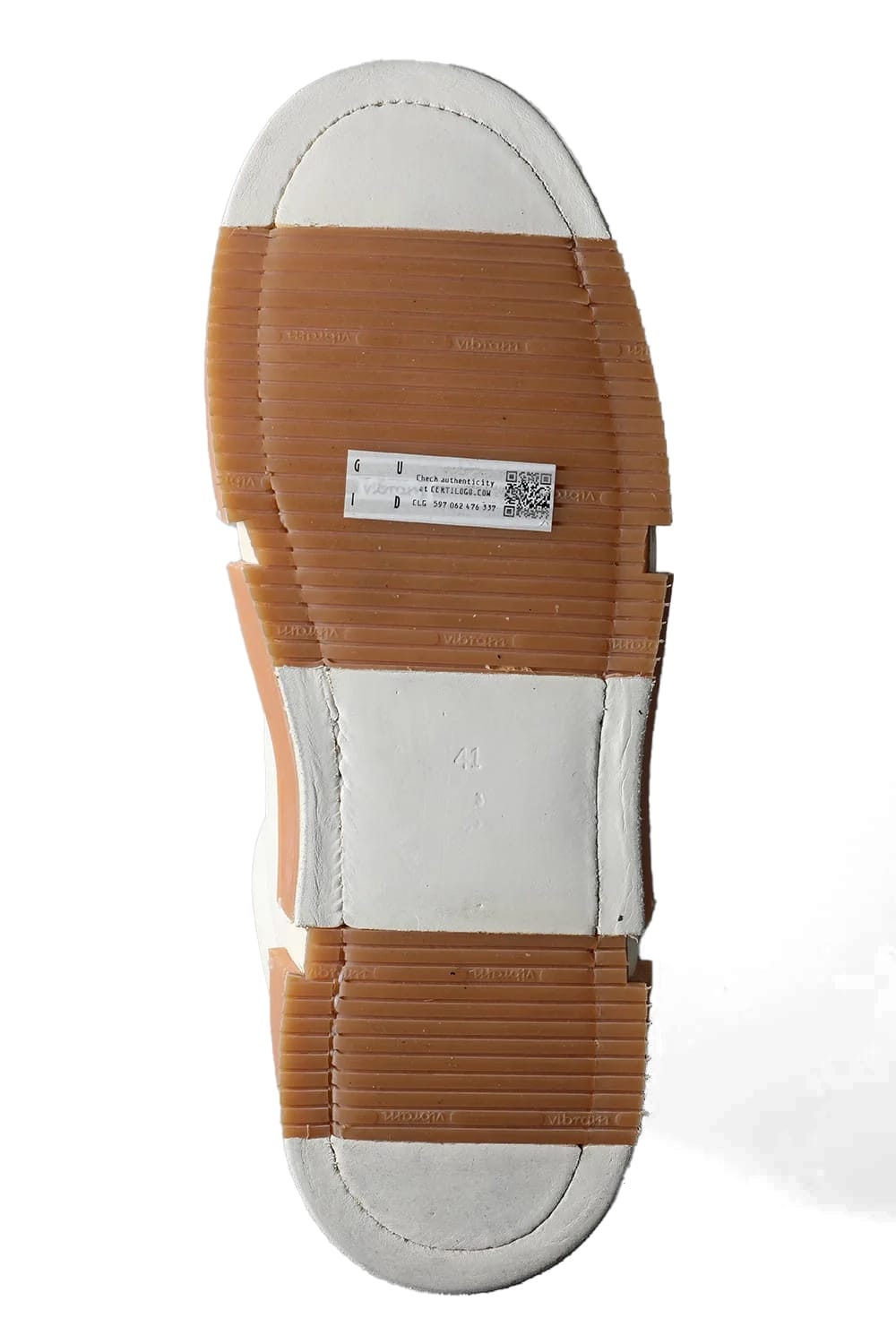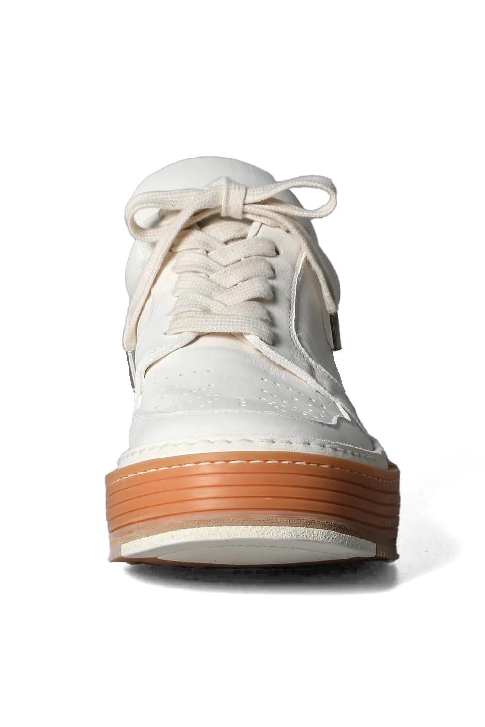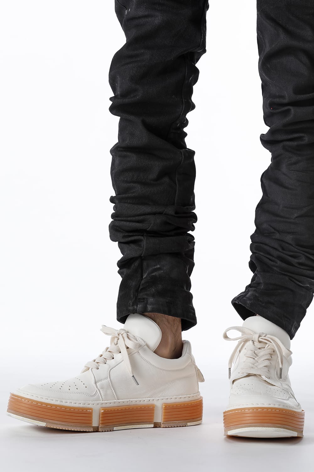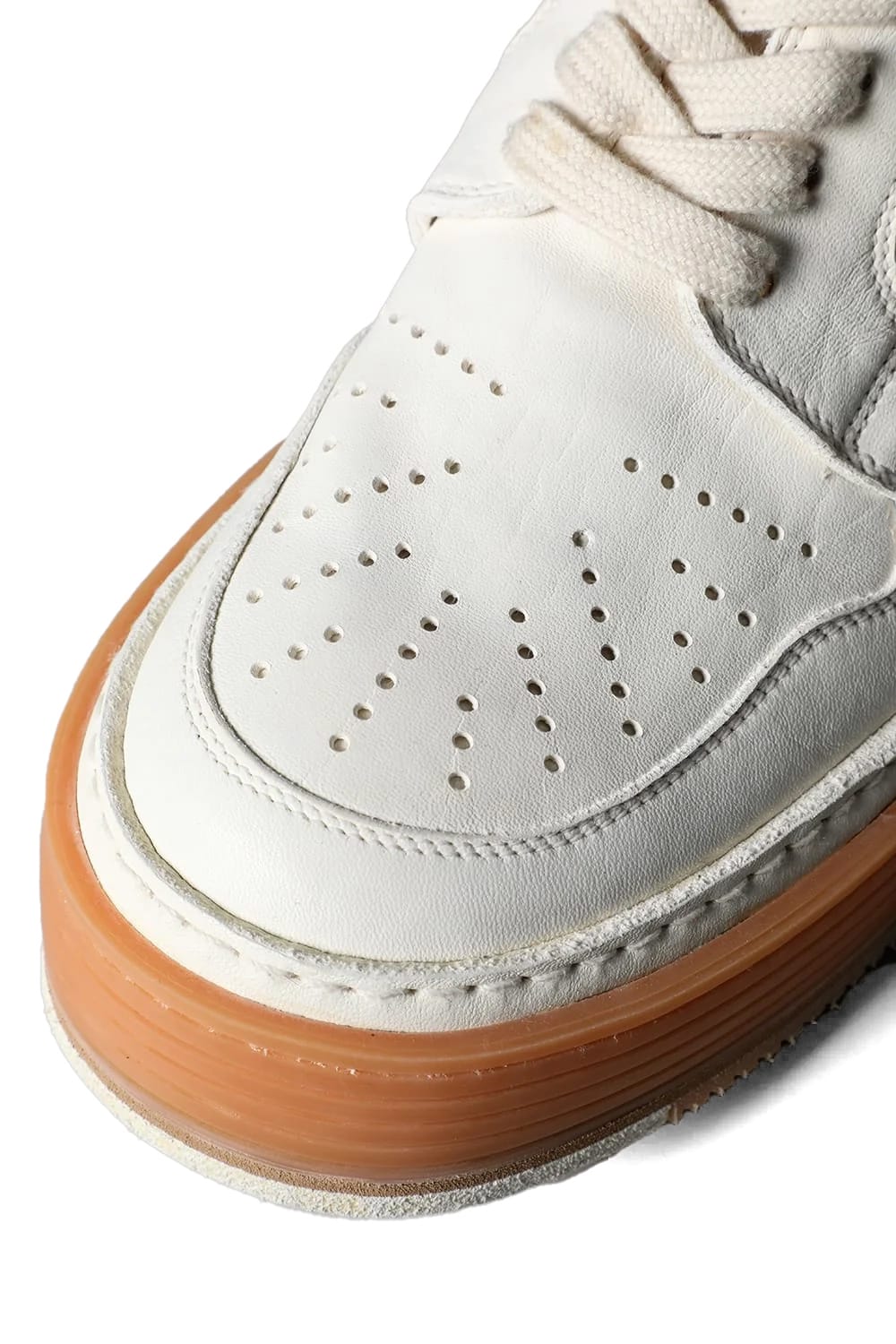 These authentic low-cut sneakers feature a round toe, perforations, and thick cotton shoelace detailing. The tongue and cuff are padded, and the insole is cushioned for improved comfort. The midsole is made of leather with rubber parts sewn in, and the soles alternate between leather and Vibram soles. A GUIDI logo plate is attached to the heel. The leather is horsehide. The shoes are made without using the tumbler-dye method (a method in which shoes are molded and then placed in a drum-like container and slowly dyed with liquid while being rotated) often used by GUIDI, so they have a taut look.