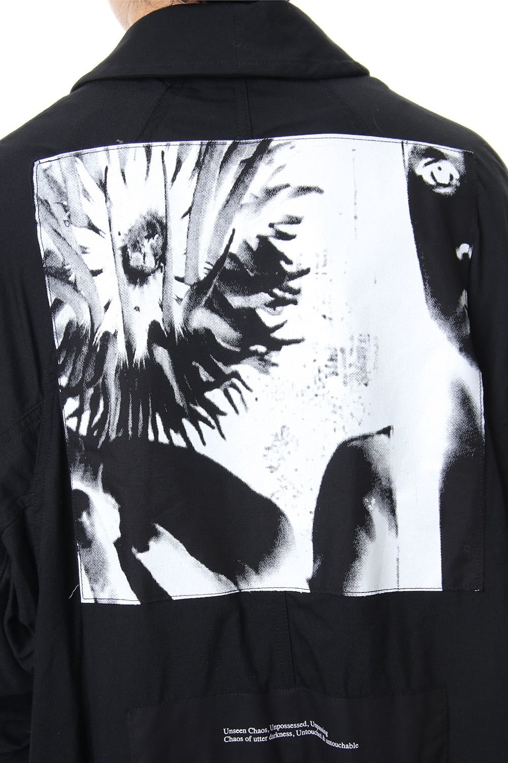 DESCRIPTION Gown jacket made with 100% nylon. The front is a 2B tailoring. The back has a fabric print patchwork.
