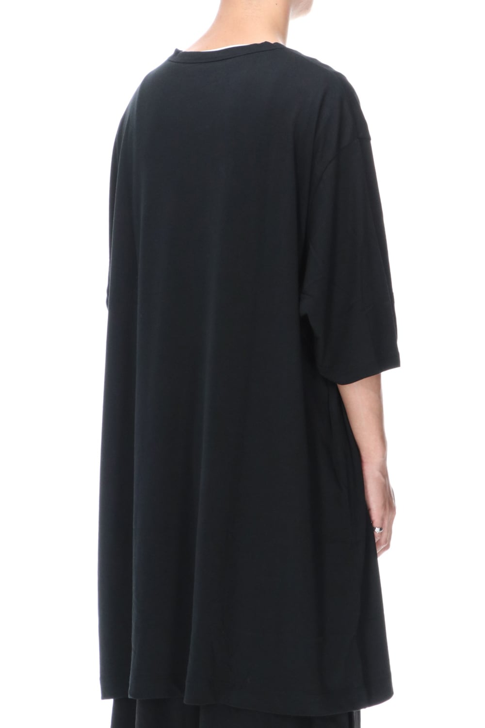 This is a short sleeve cut sew with a big silhouette that uses plenty of fabric. The cut on the hem makes it easy to move and the fabric naturally sways.