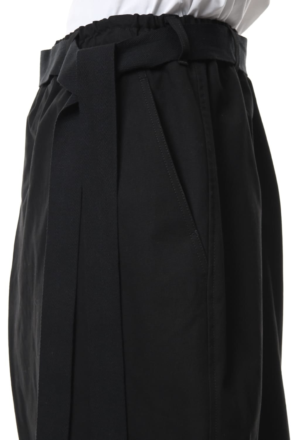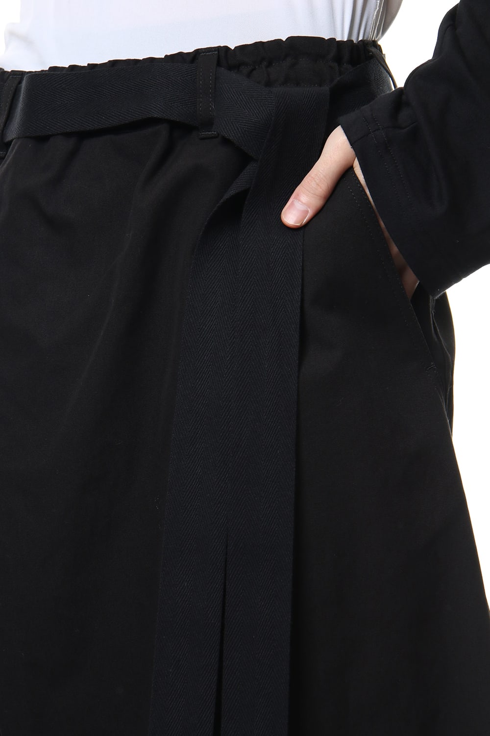 The the left and right pants are voluminous to give this wrap pants its signature look.