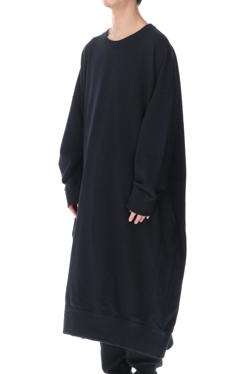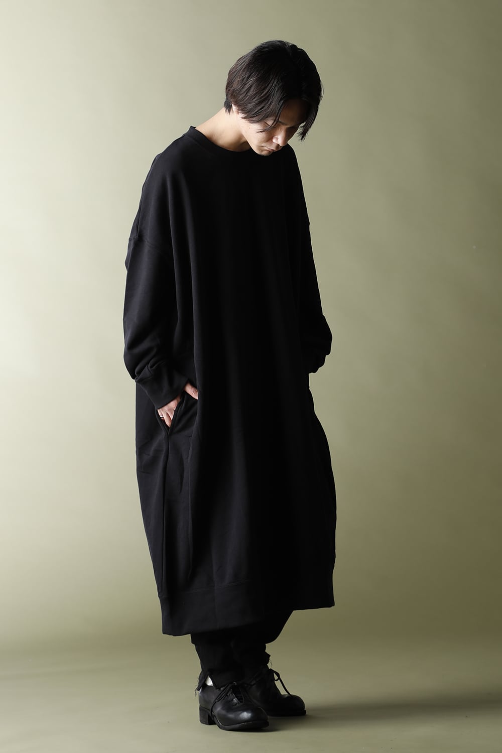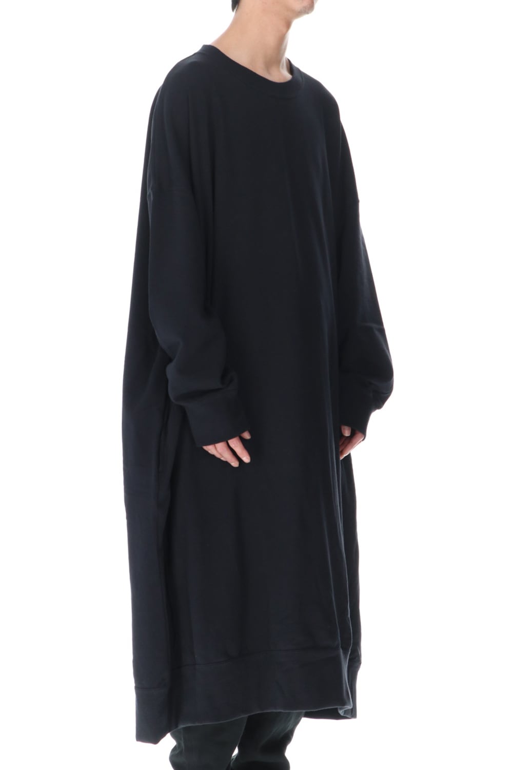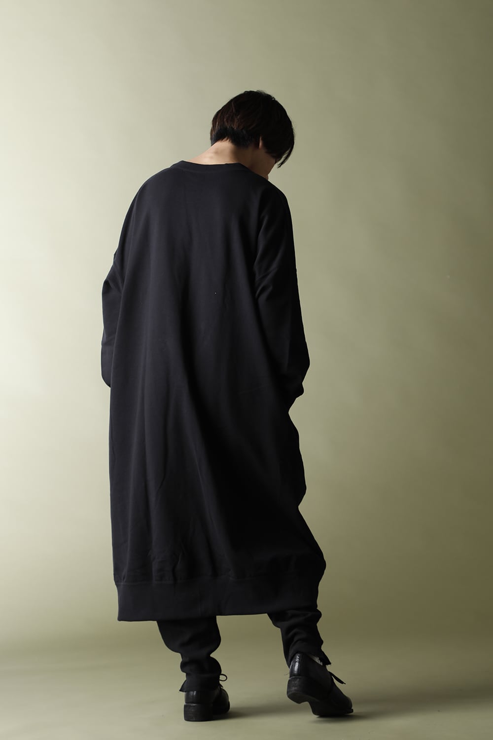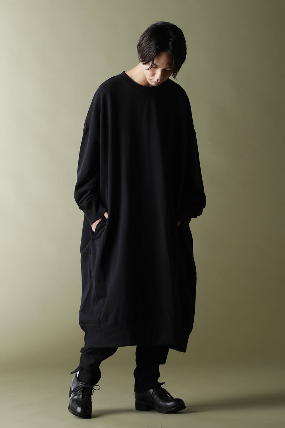 This is a long length knee-length pullover shirt made of soft cotton sweat fabric.
