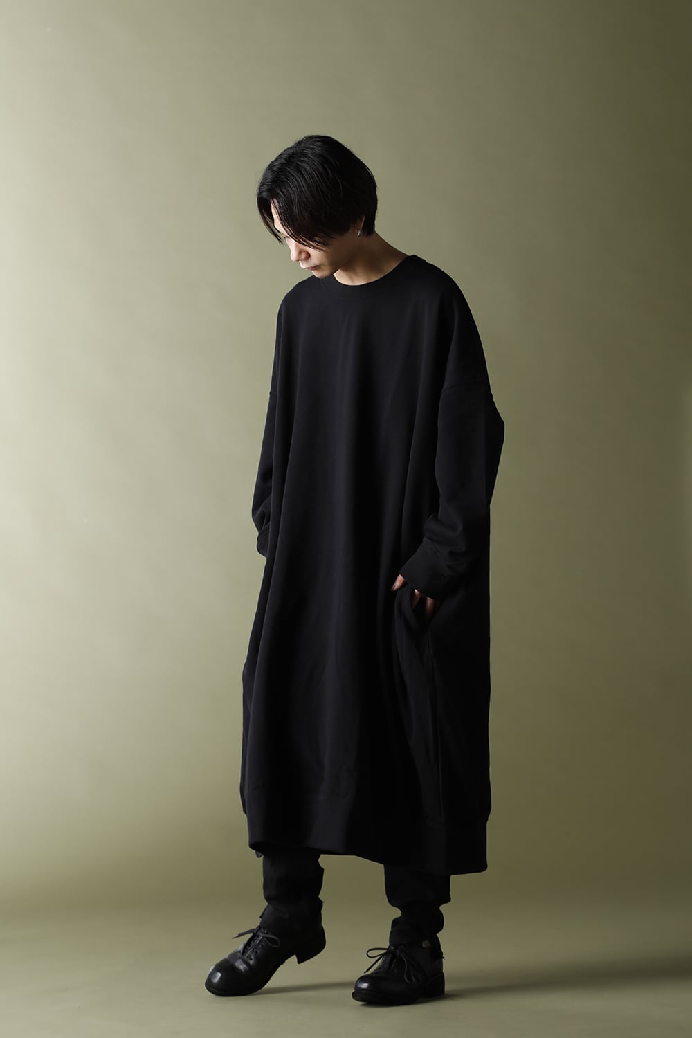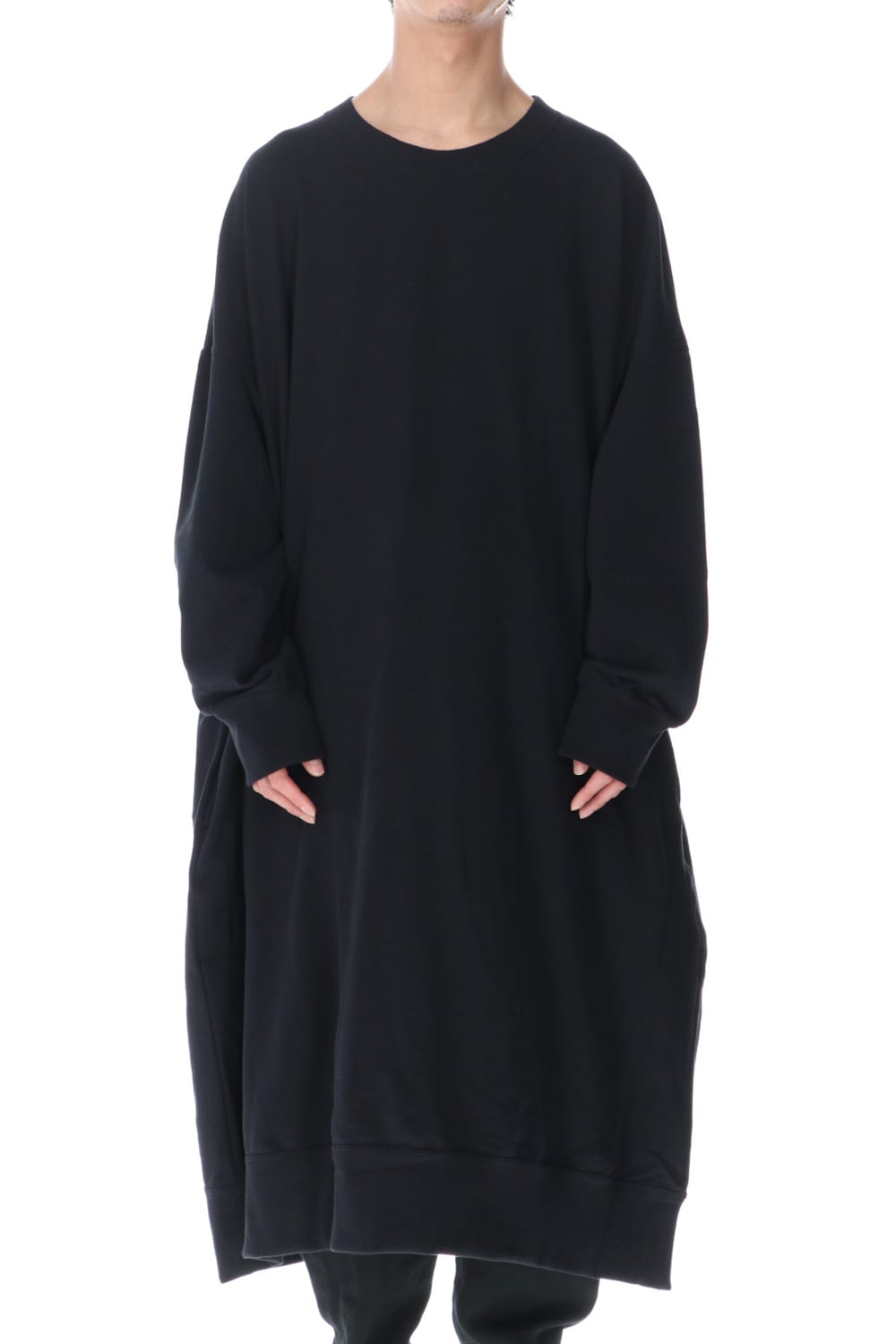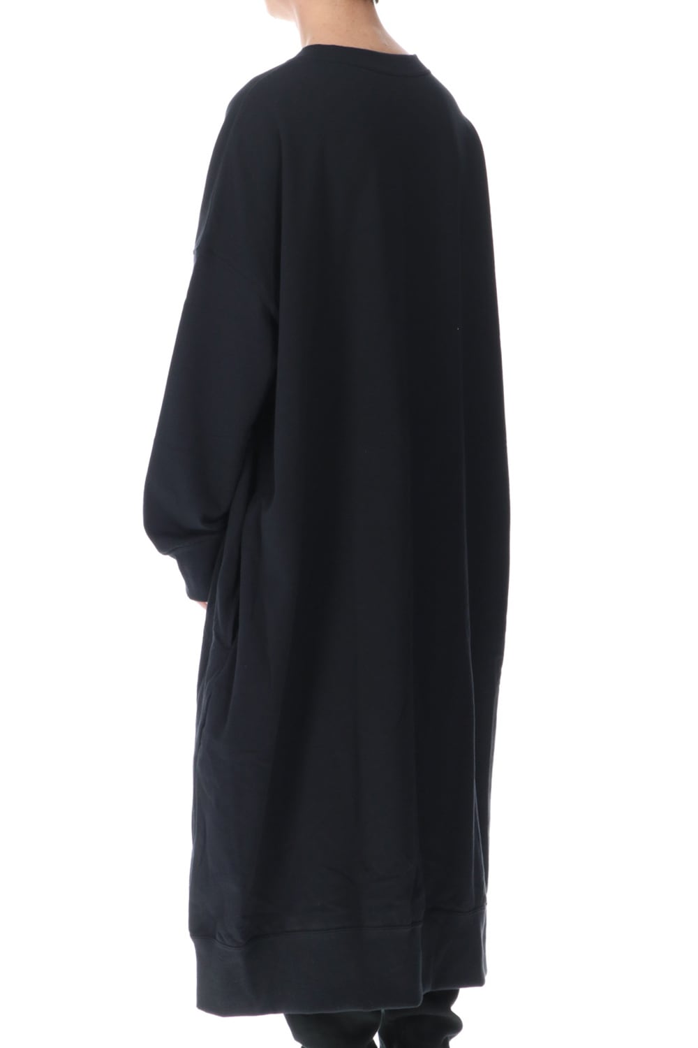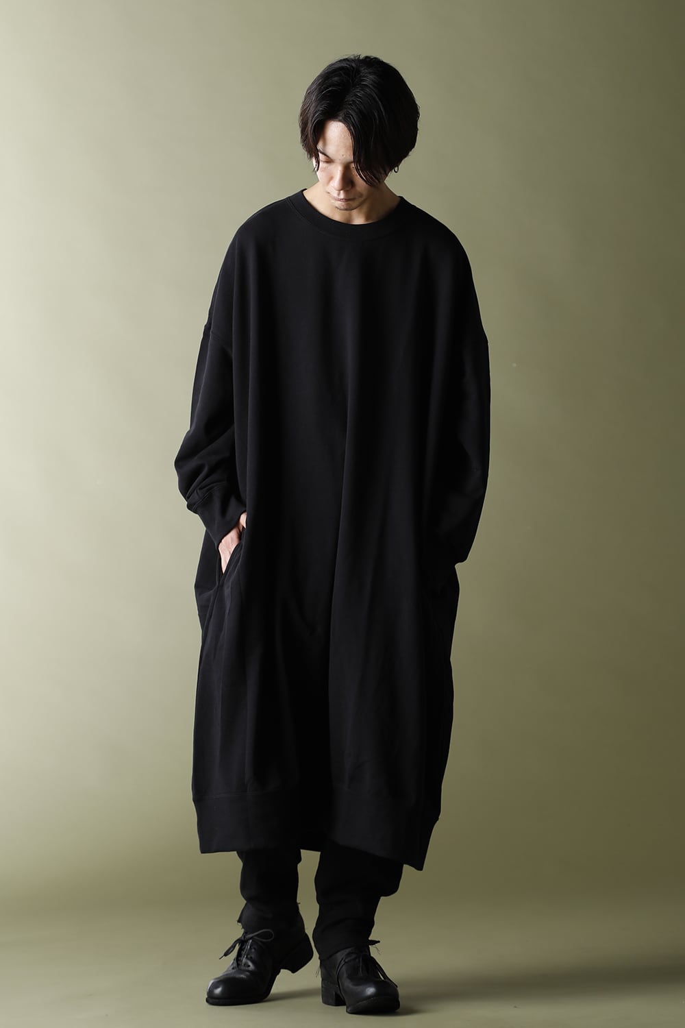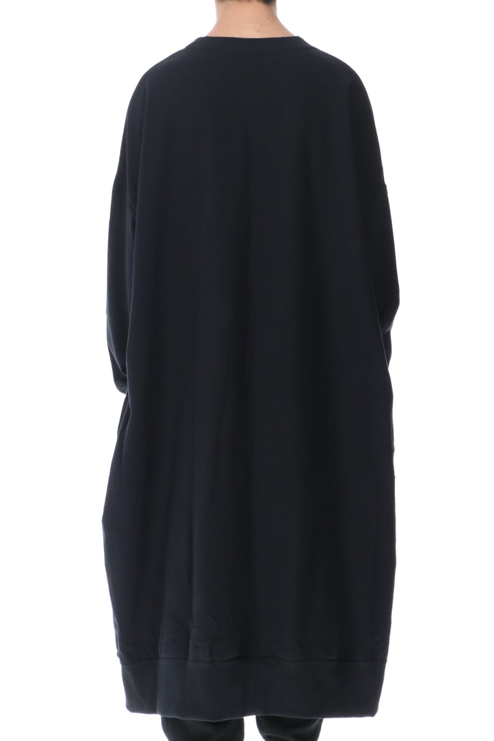 This is a long length knee-length pullover shirt made of soft cotton sweat fabric.