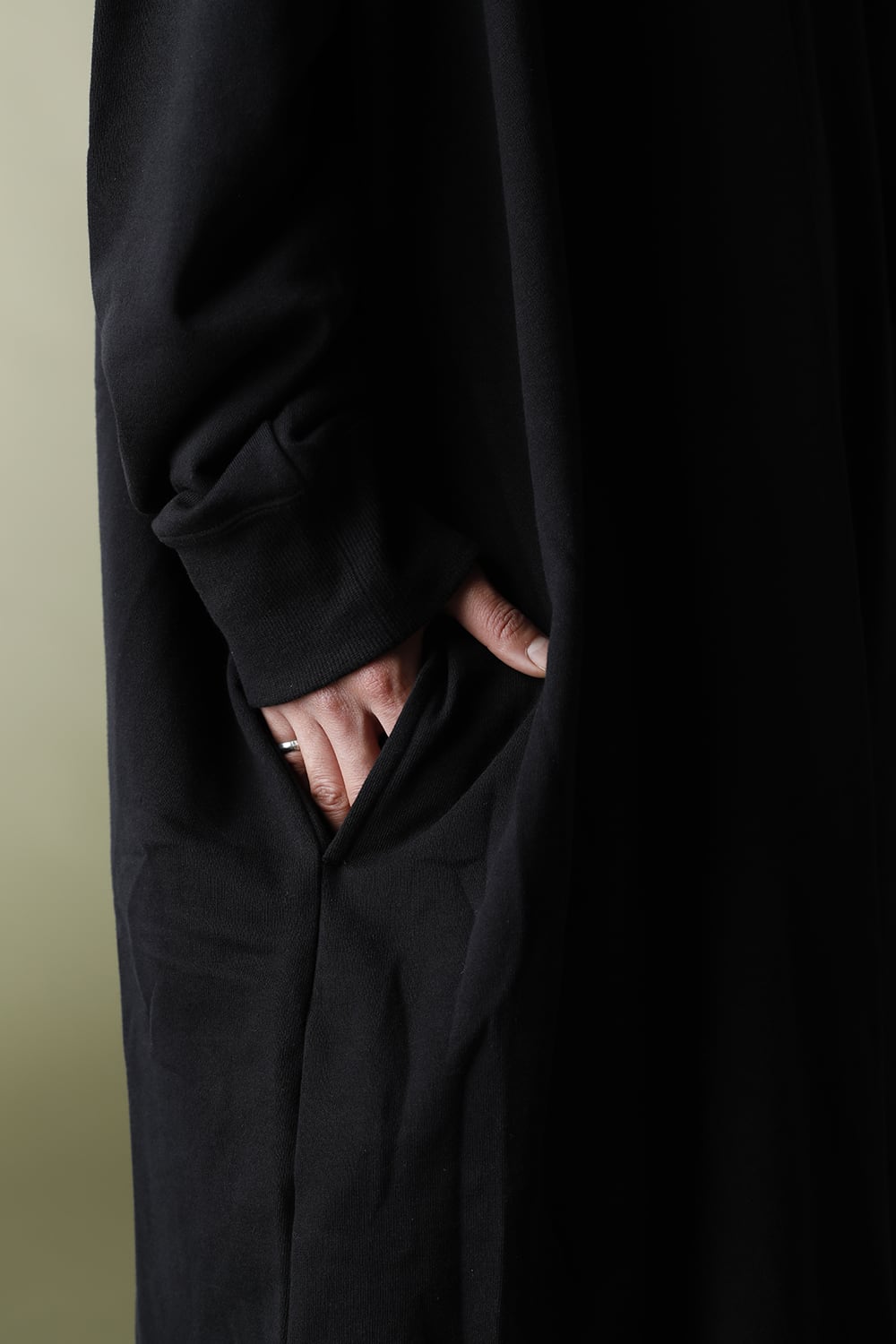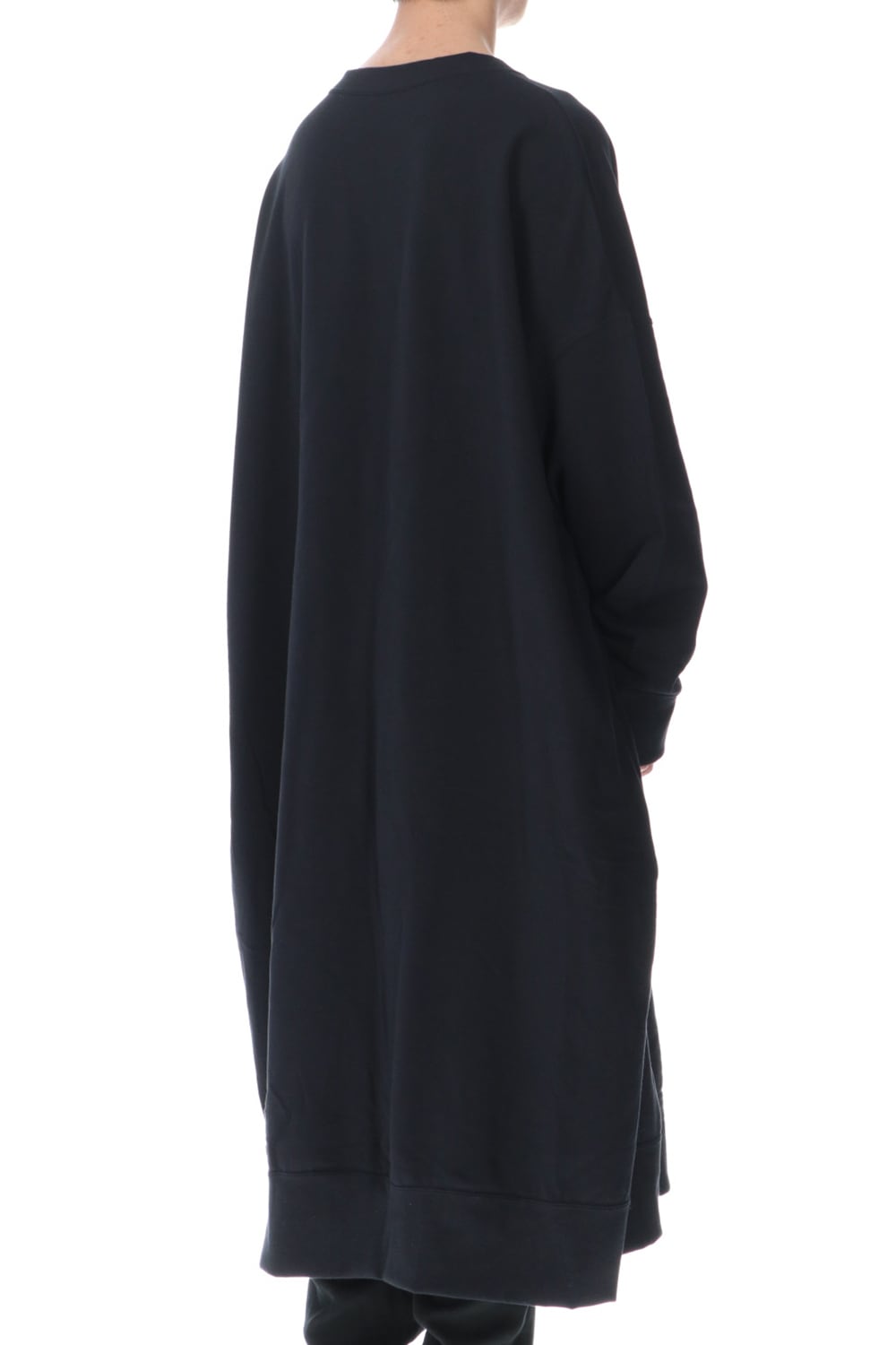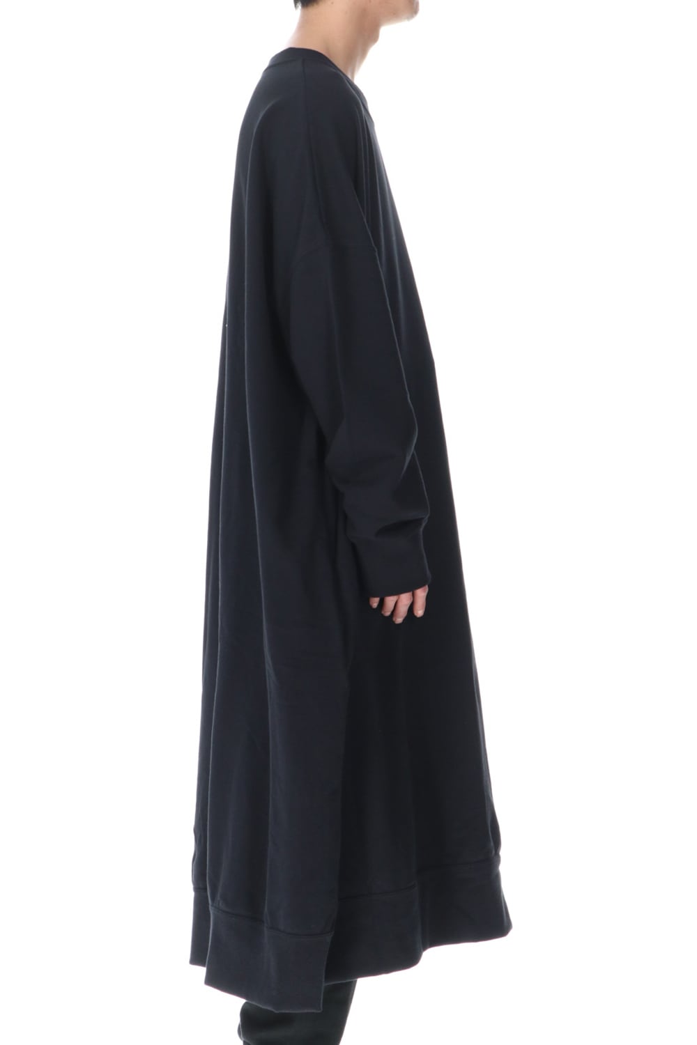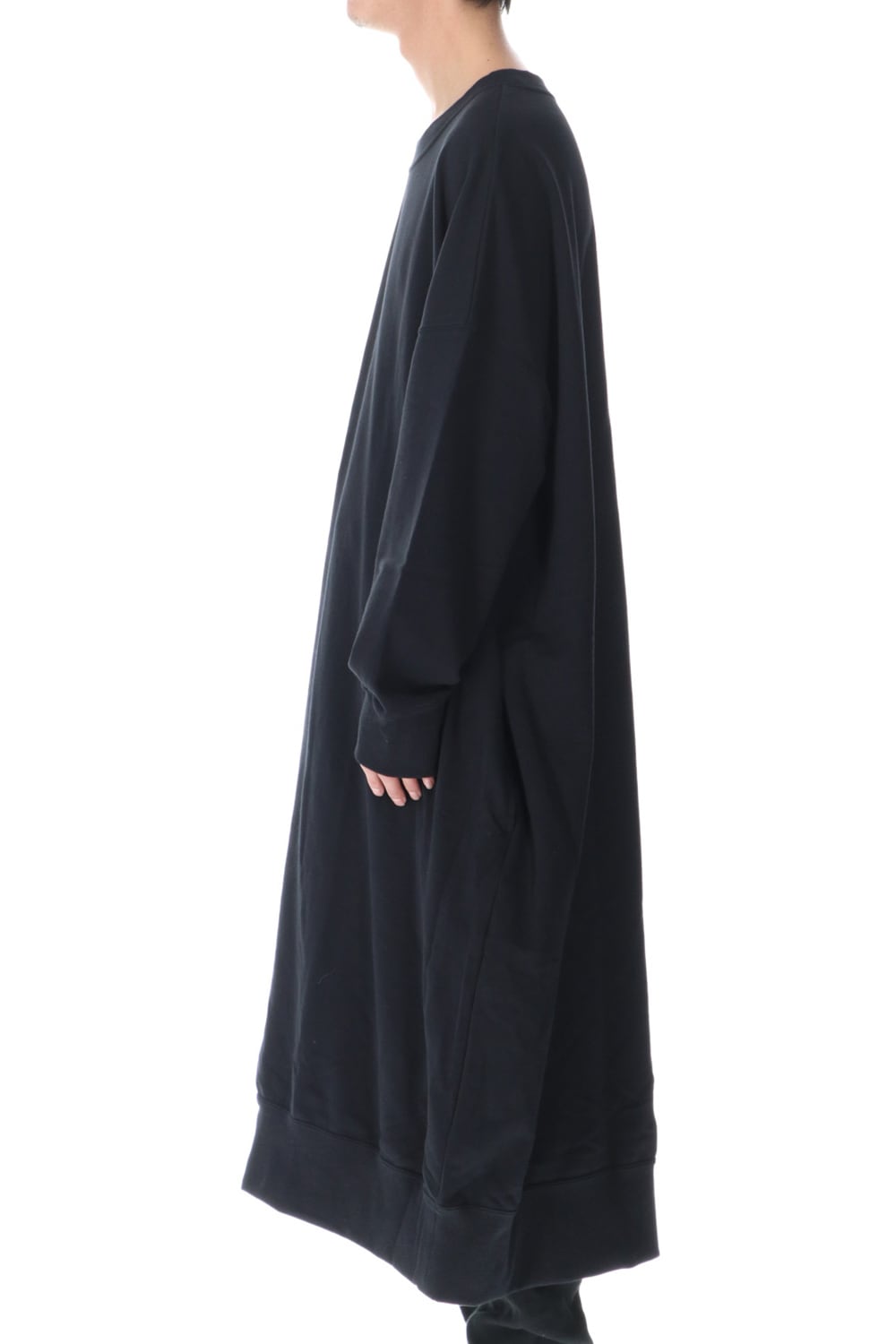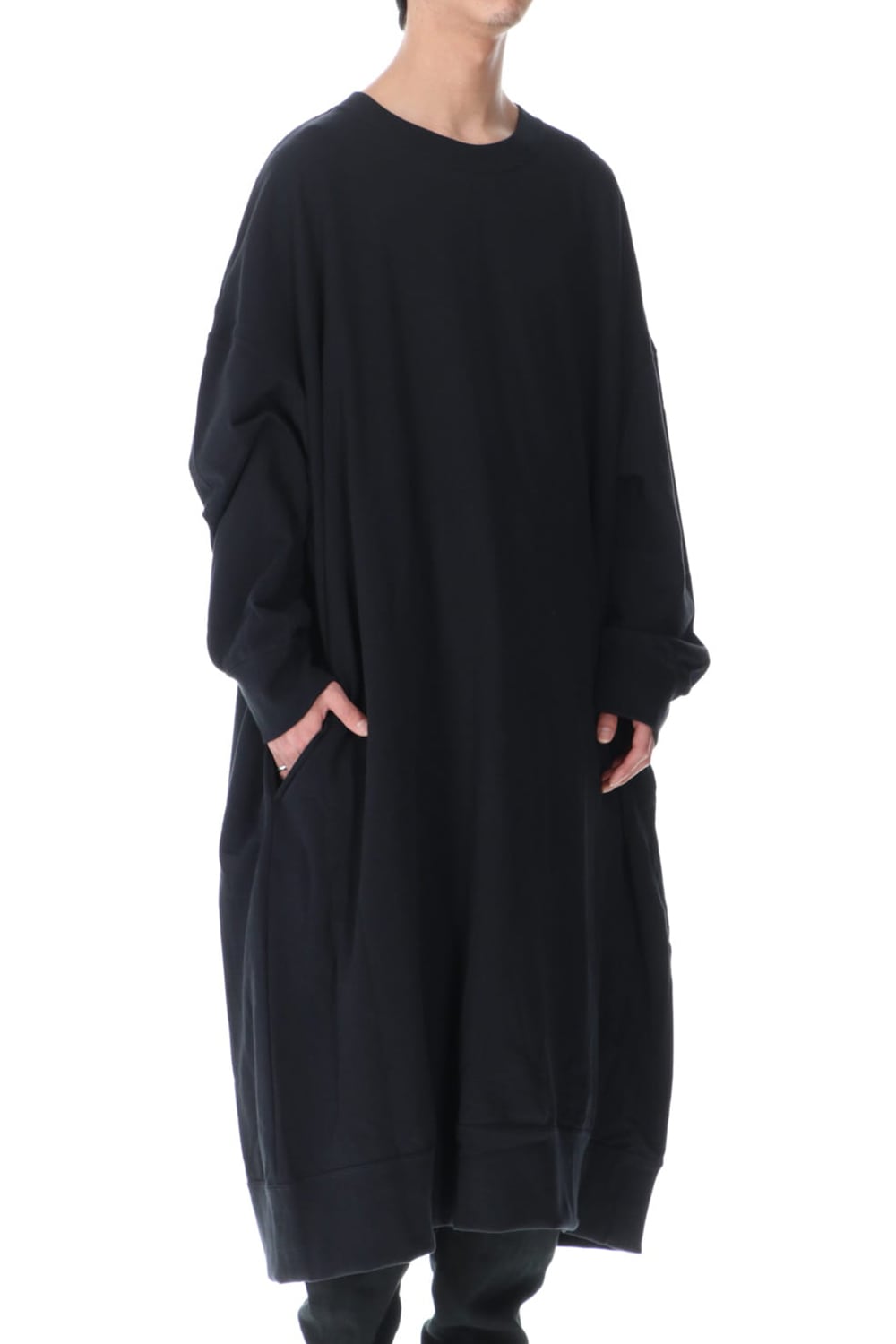 This is a long length knee-length pullover shirt made of soft cotton sweat fabric.
