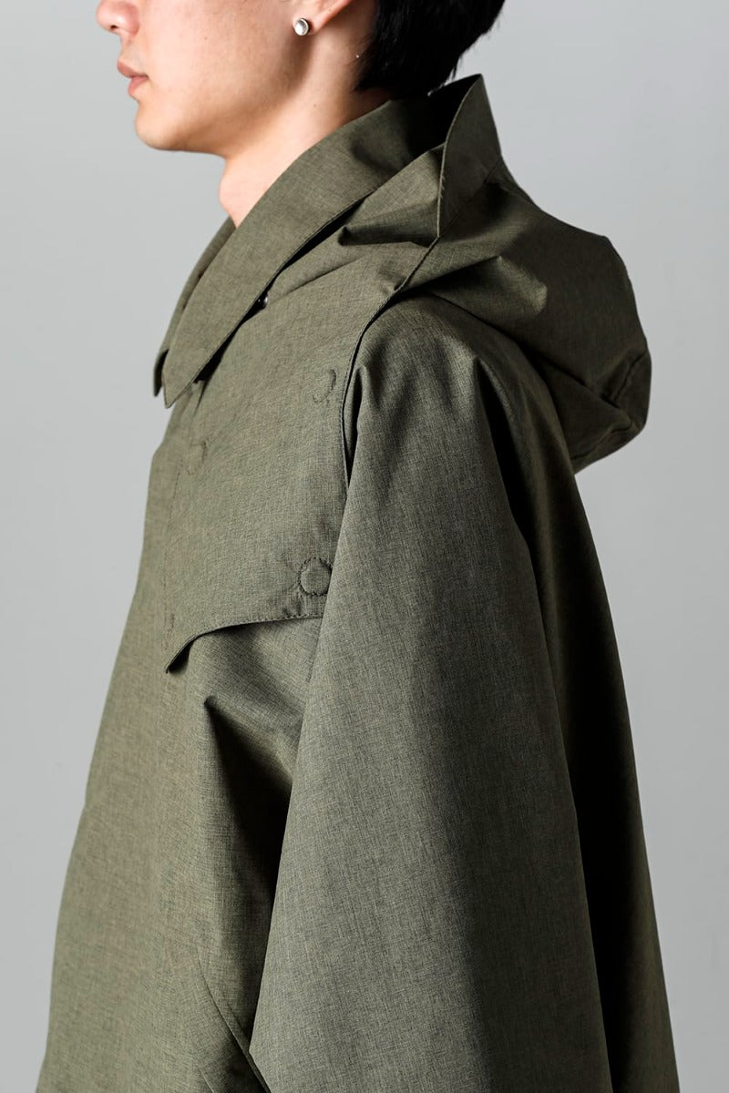 When the hood is removed, the jacket changes into a jacket with coach jacket-like details.