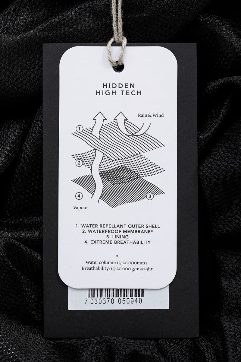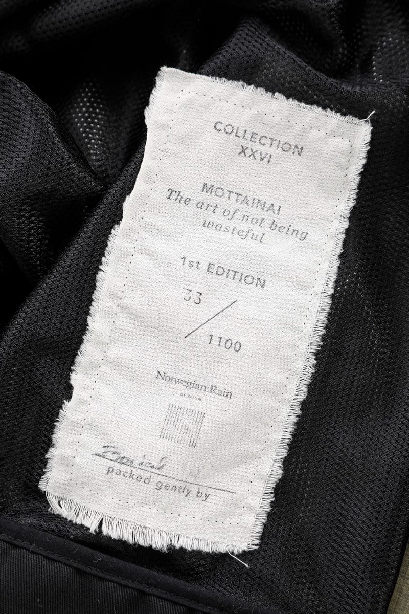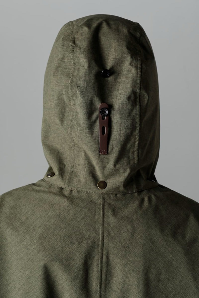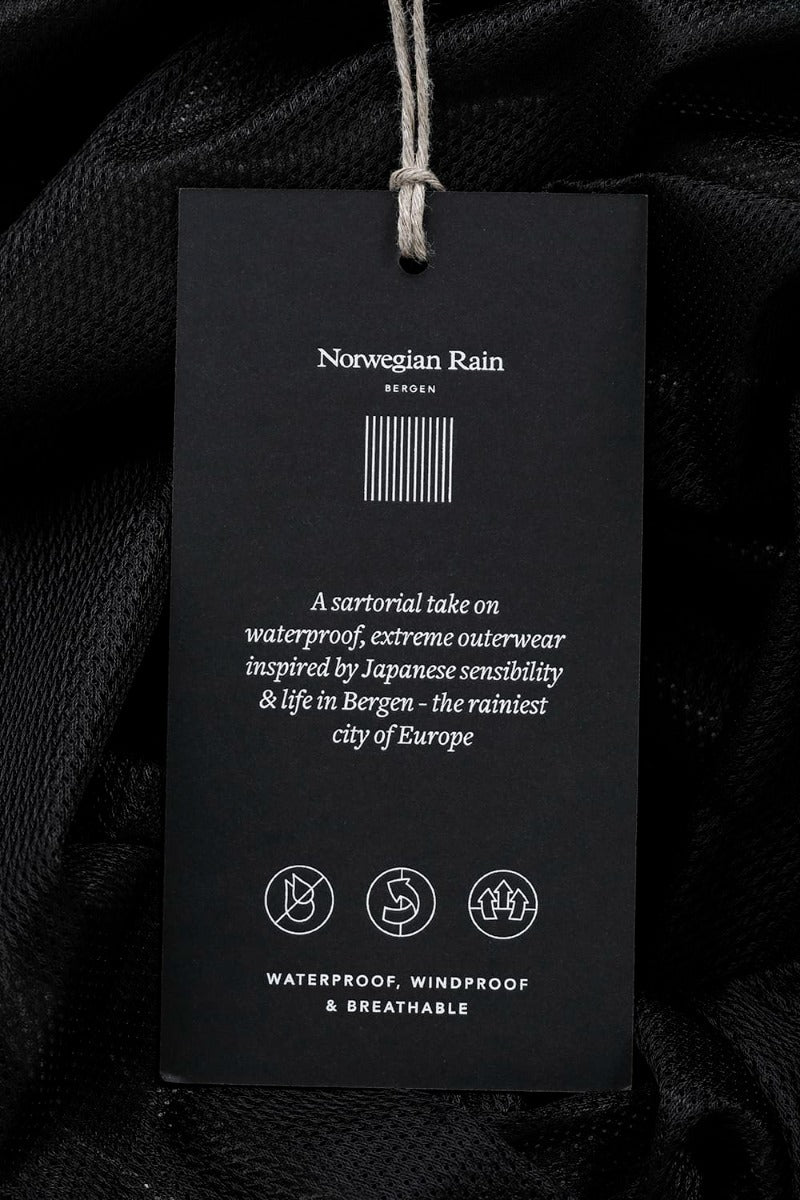 The front is single wing tailored with a unique detail called "Water Tunnel" on the right front where the meeting is placed on the inside to prevent rain from penetrating.