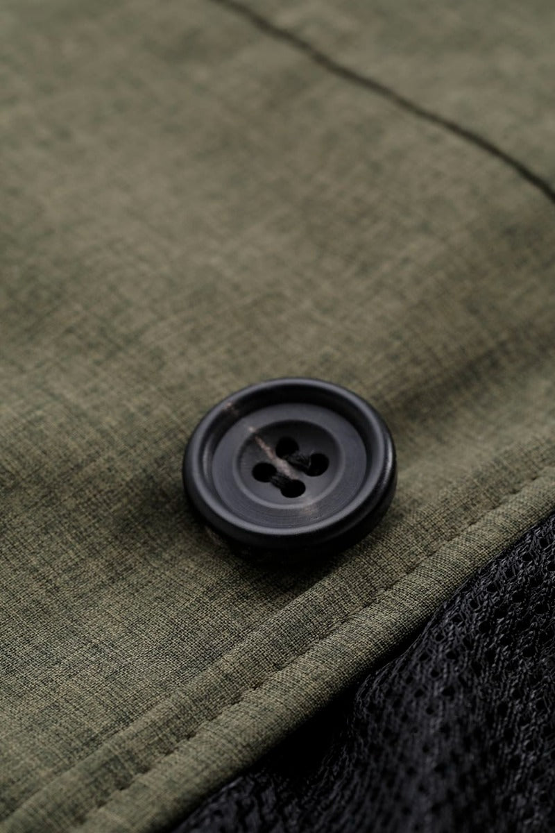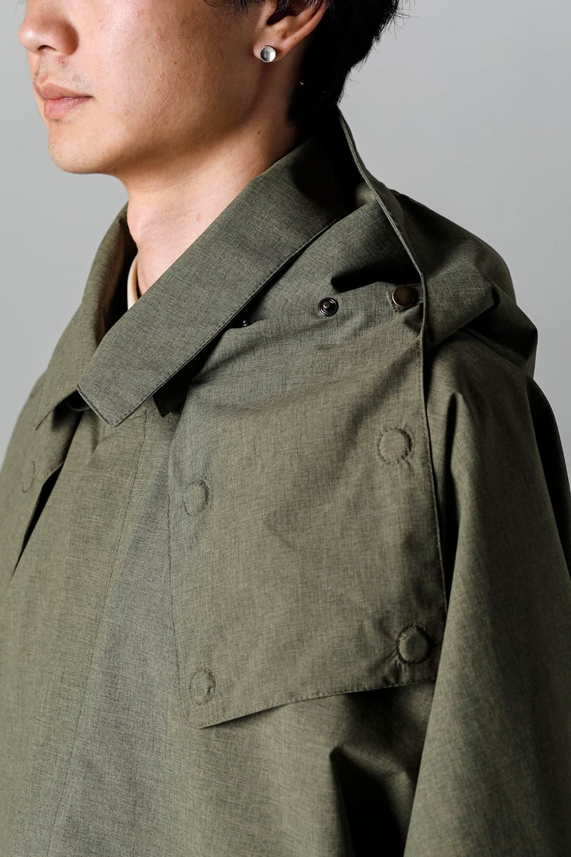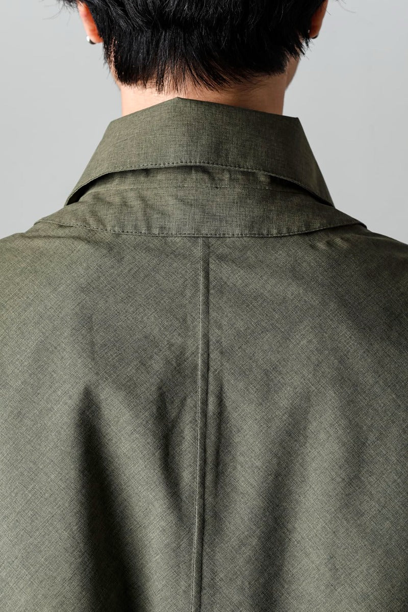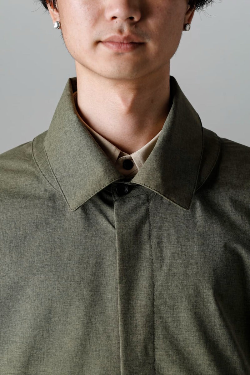 The front is single wing tailored with a unique detail called "Water Tunnel" on the right front where the meeting is placed on the inside to prevent rain from penetrating.