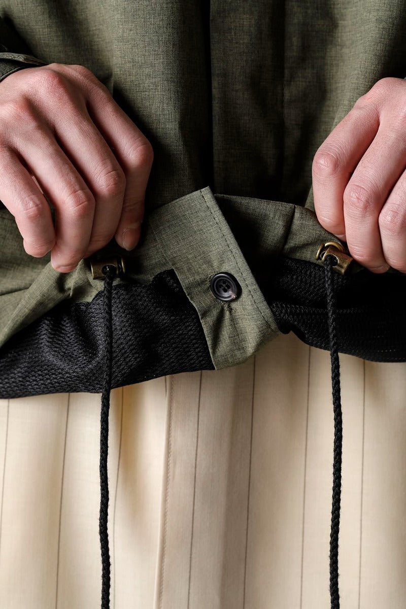 The drawcord attached to the hem can also be tightened to change the jacket into a bomber silhouette.