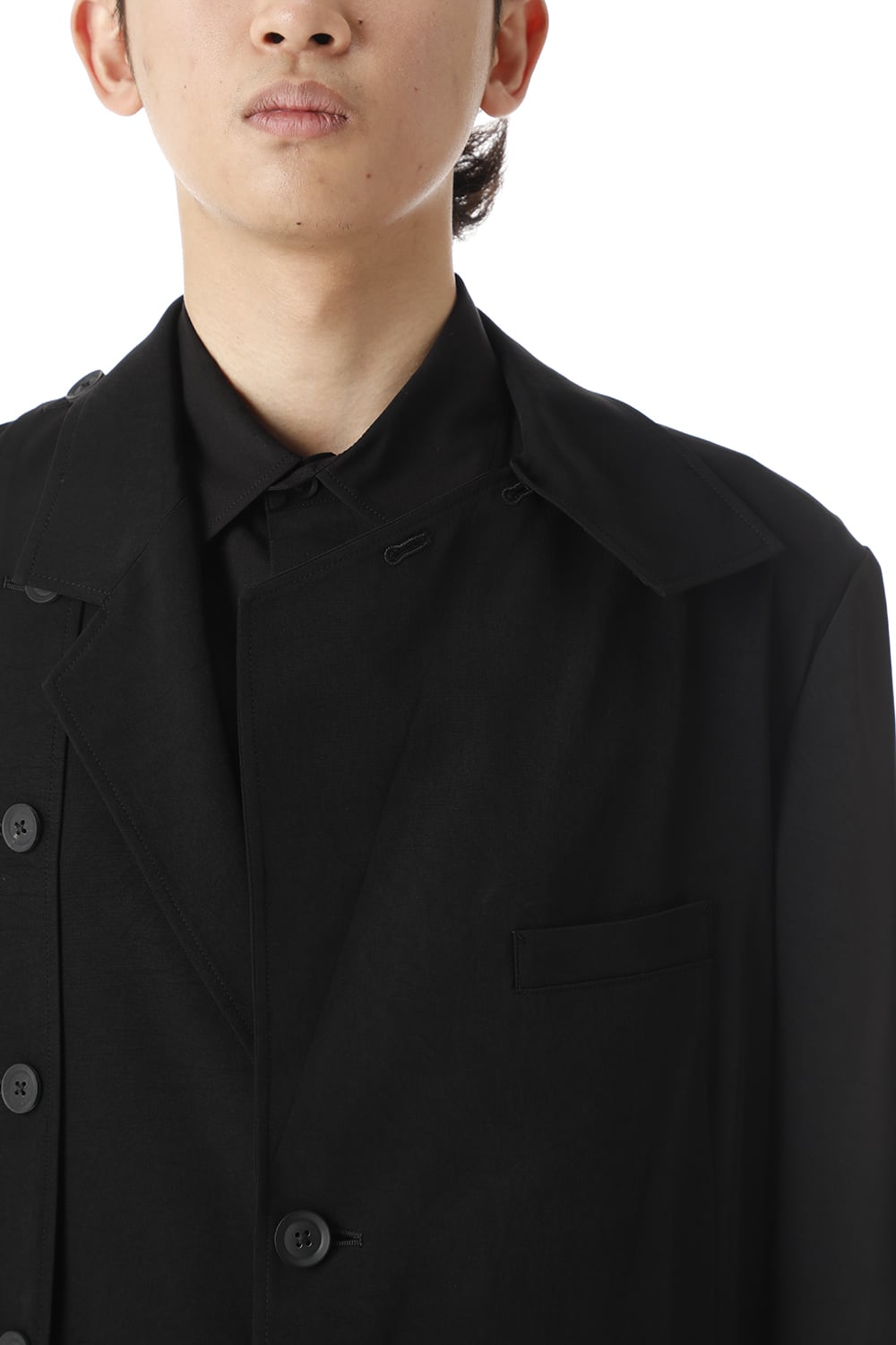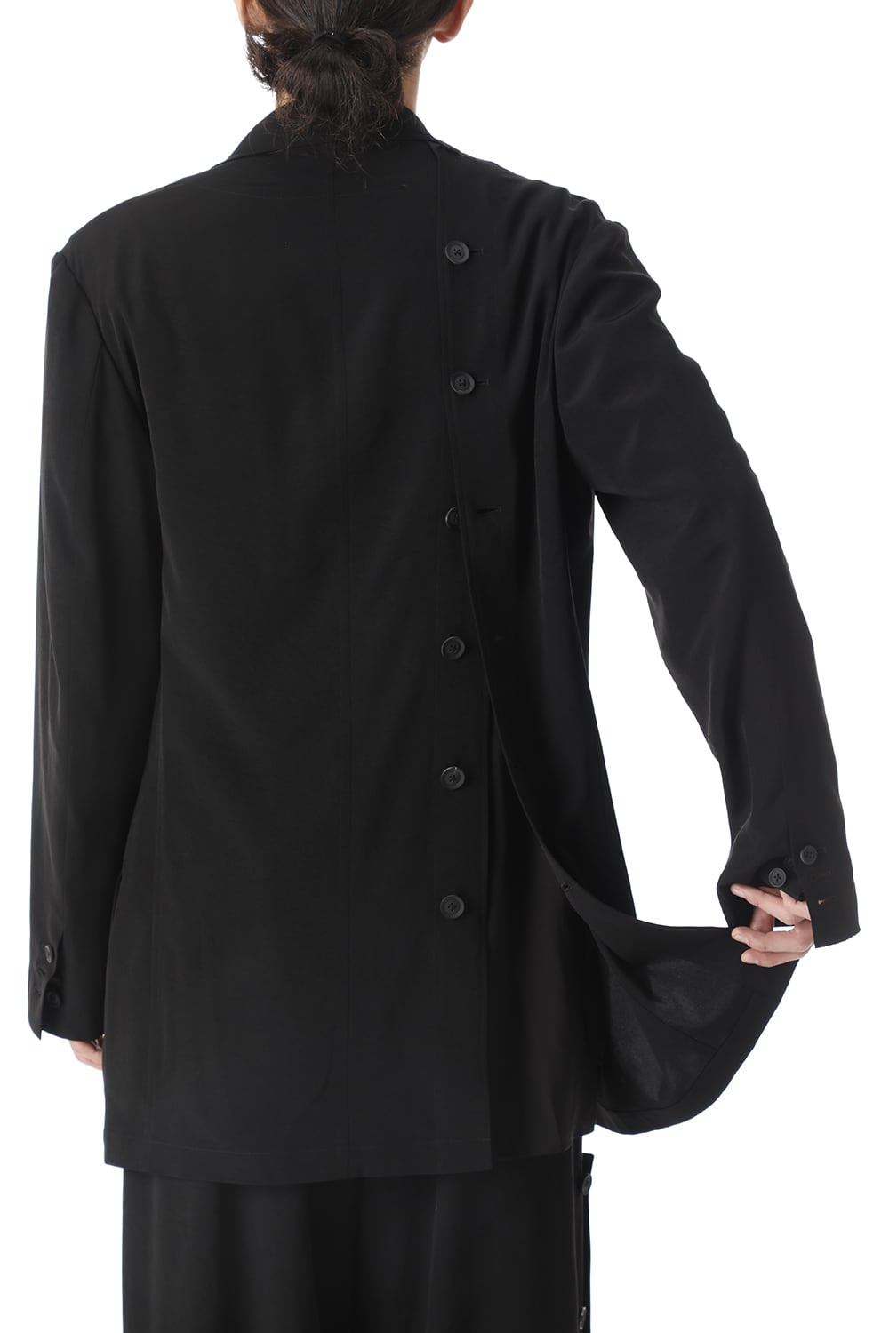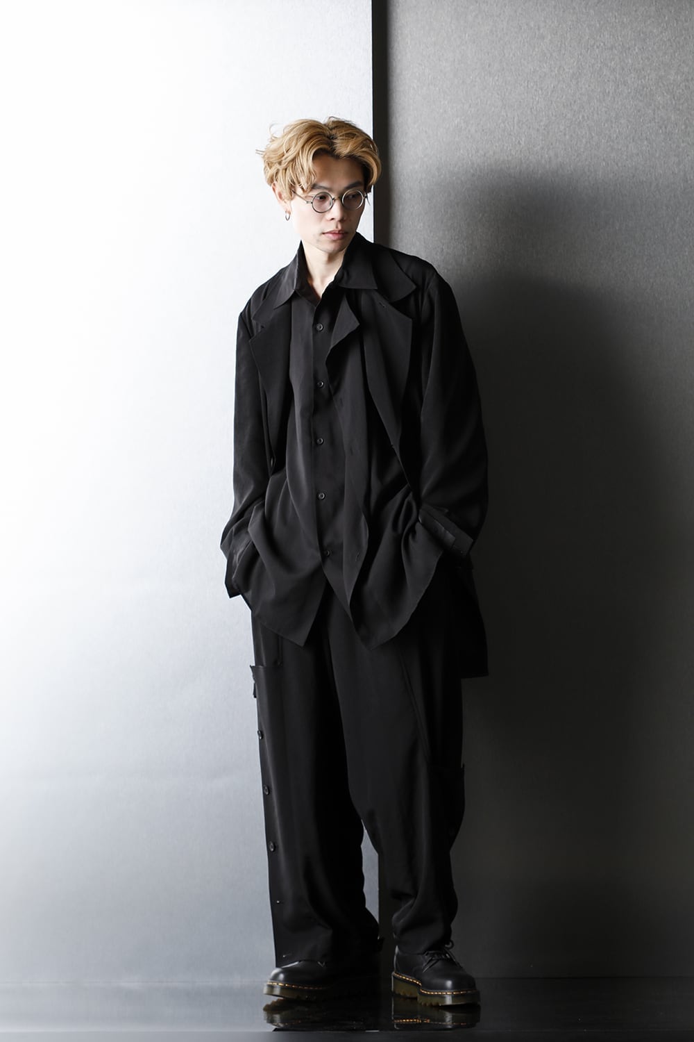 This is a lapel jacket made of a tuxedo with a mild luster and a draped look.