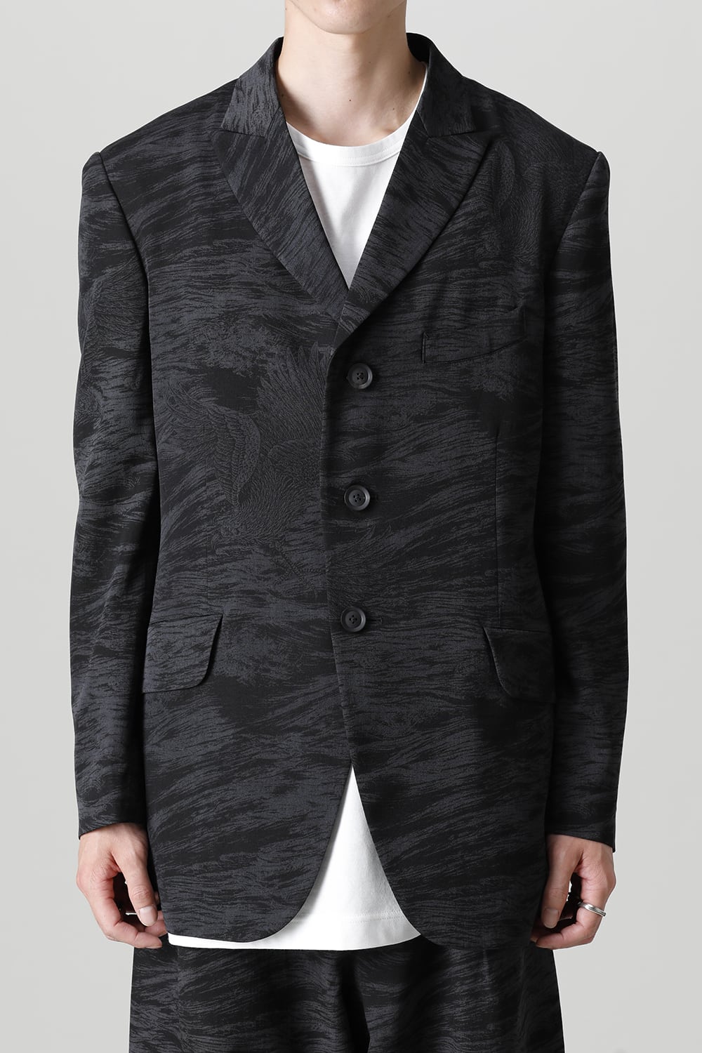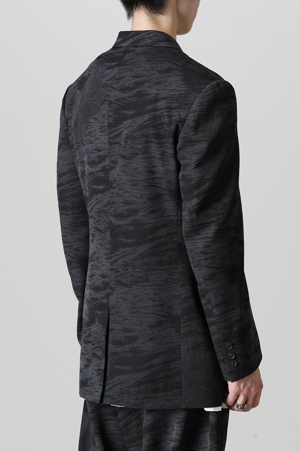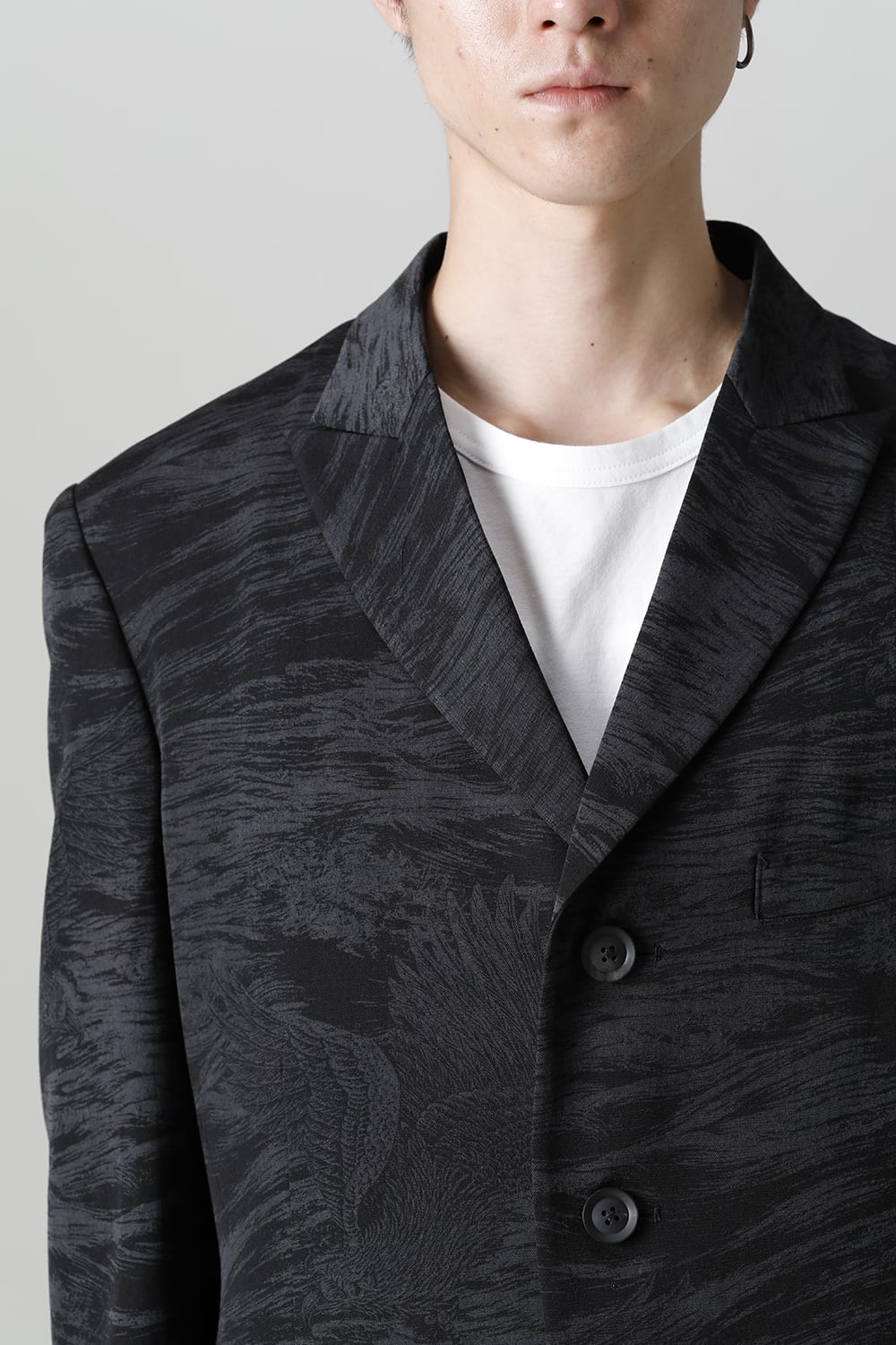 This is a picturesque modern Japanese peak lapel jacket with a hawk motif and waves all over.
